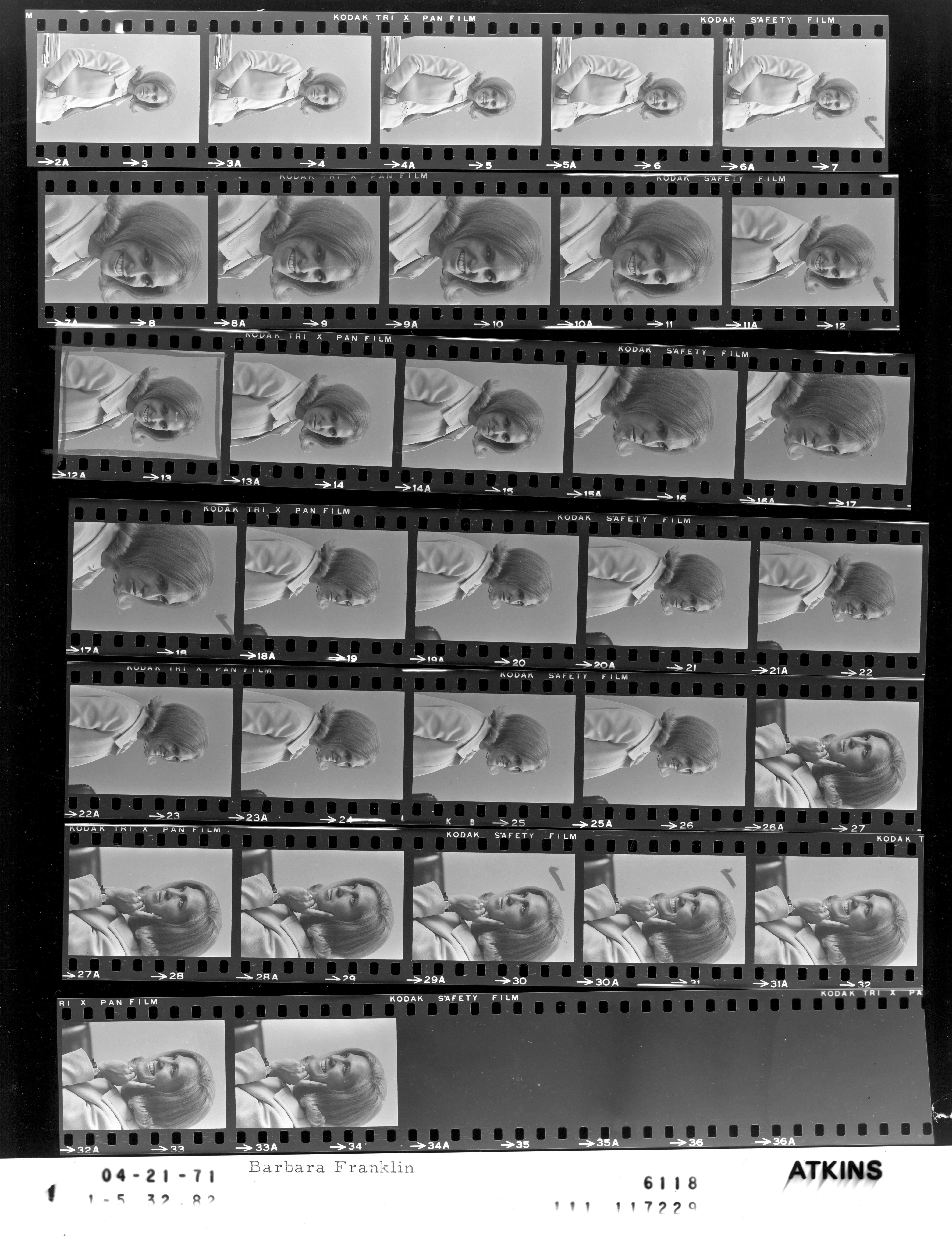 - Frame(s): WHPO-6118-02A-33A, Close-up portrait of Barbara Franklin. 4/21/1971, Washington, D.C. unknown. Barbara Franklin.