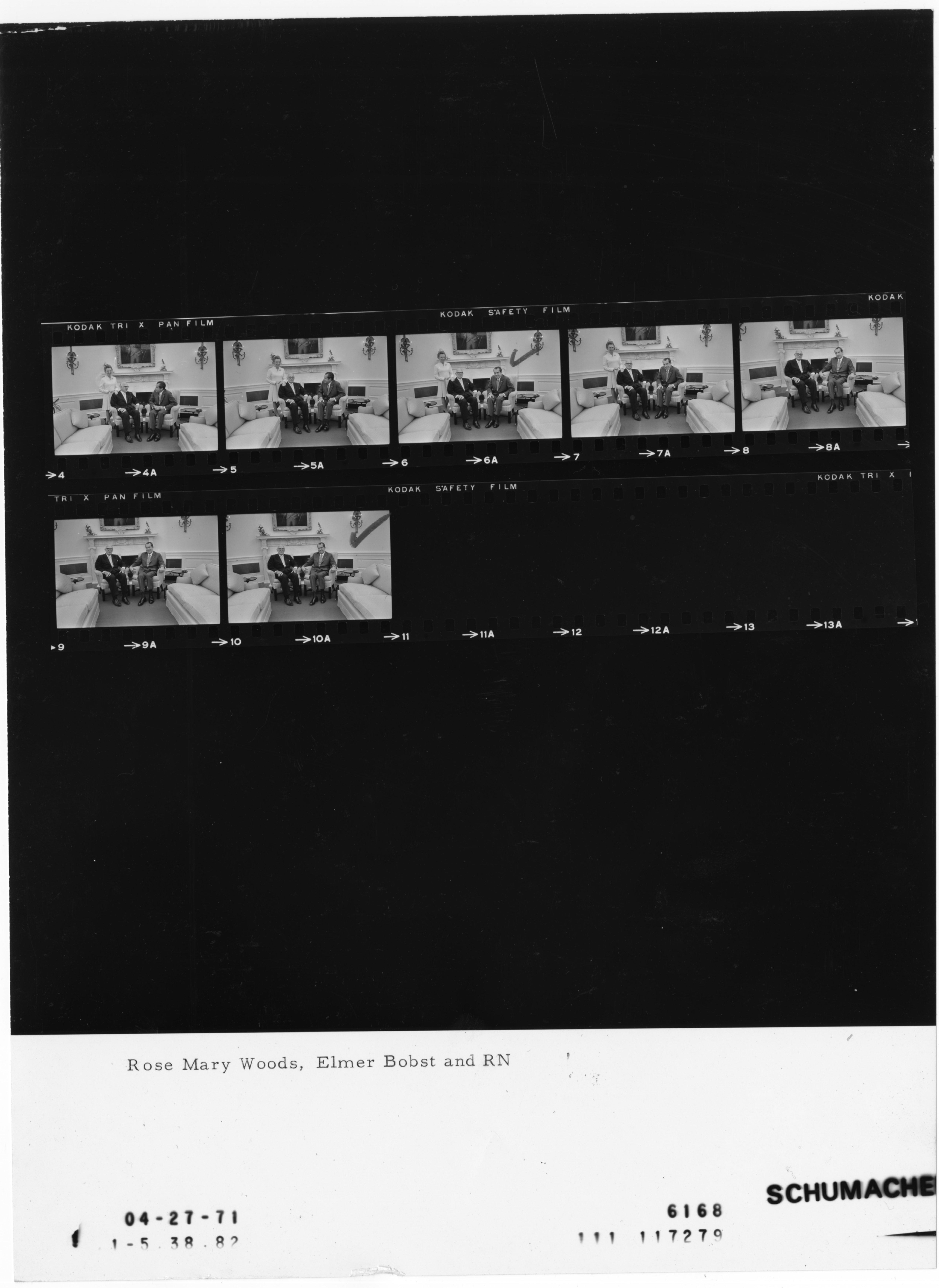 - Frame(s): WHPO-6168-04-10, President Nixon seated in the Oval Office with Elmer Bobst while Rose Mary Woods stands nearby. 4/27/1971, Washington, D.C. White House, Oval Office. President Nixon, Elmer Bobst, Rose Mary Woods.