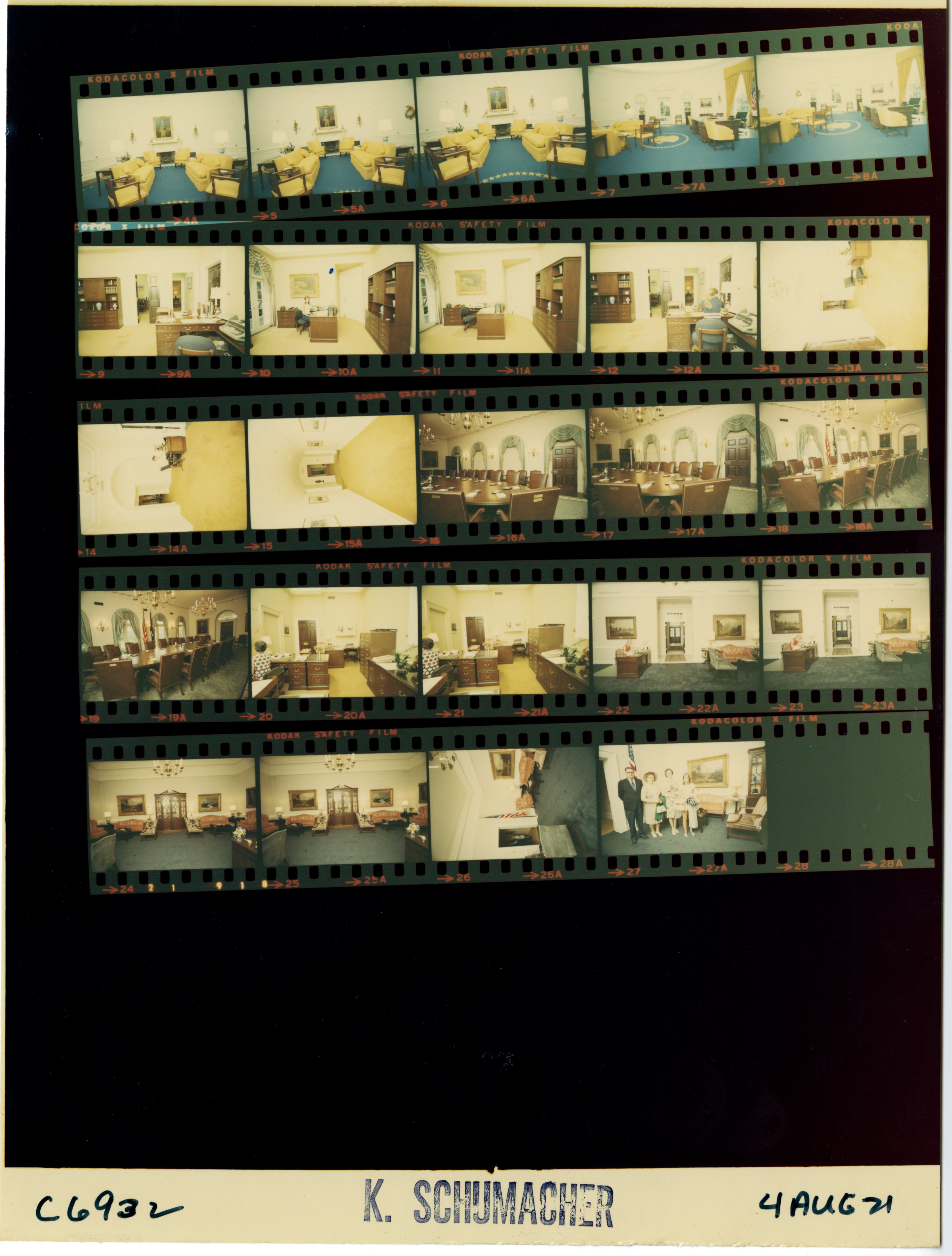 - Frame(s): WHPO-6932-04-26, White House interior rooms and their furniture. Couches, desks, bookshelves, the Cabinet room and its conference table. 8/4/1971, Washington, D.C. rooms, White House. unidentified persons.