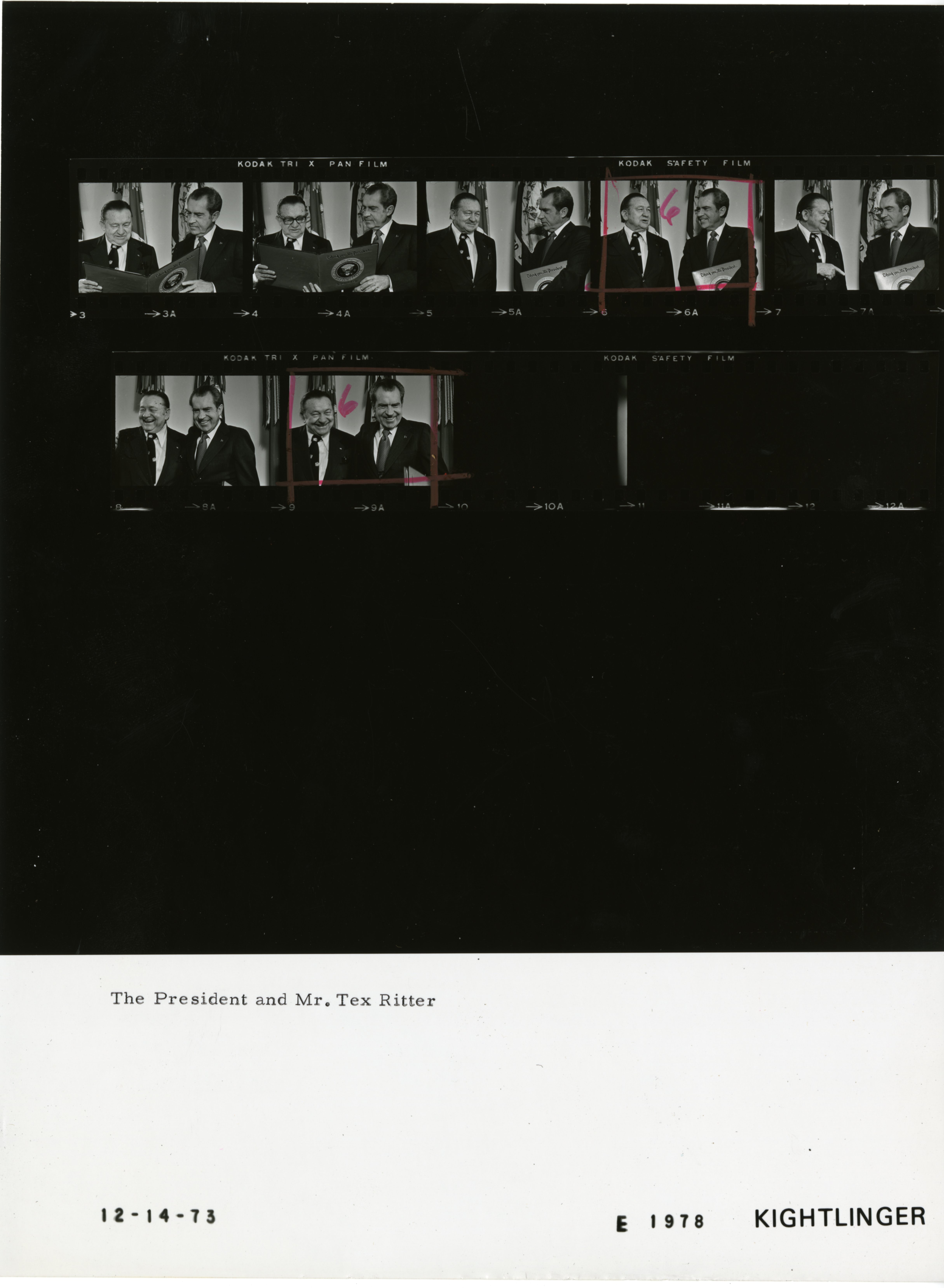- Frame(s): WHPO-E1978-03A-09A, President Nixon standing in the Oval Office receiving a "Thank You, Mr. President" Country Western music record album gift from musician Tex Ritter. 12/14/1973, Washington, D.C. White House, Oval Office. Tex Ritter, President Nixon.