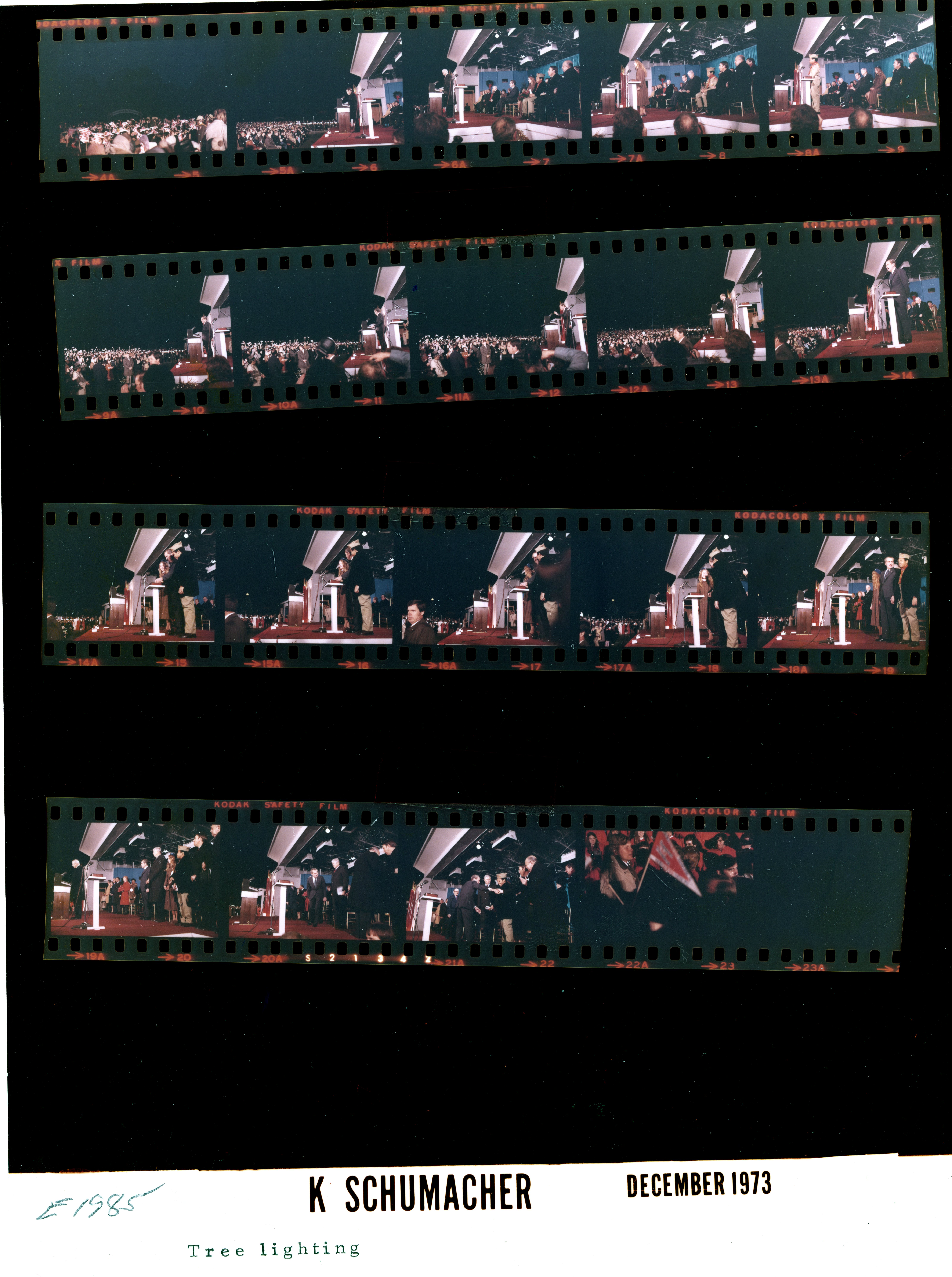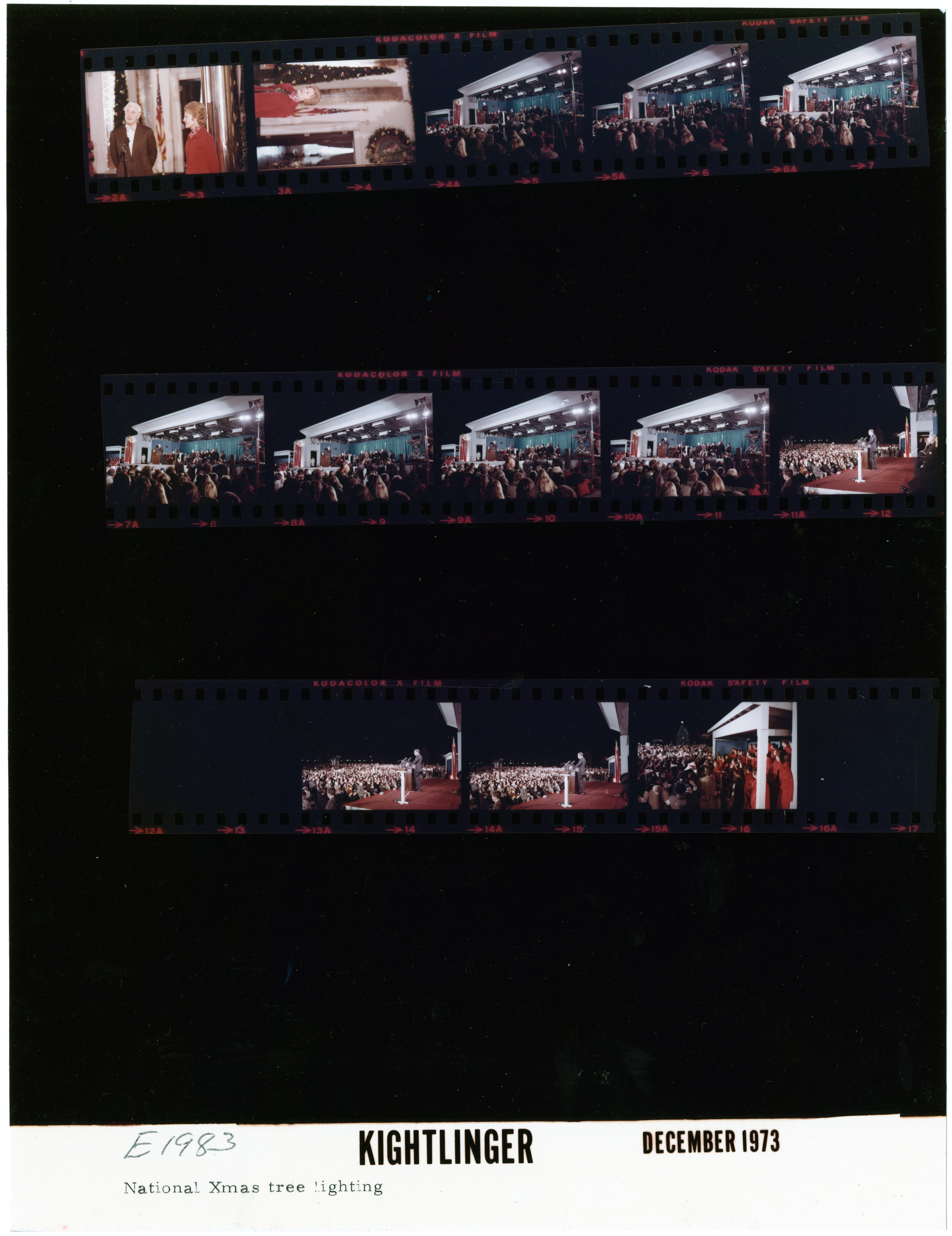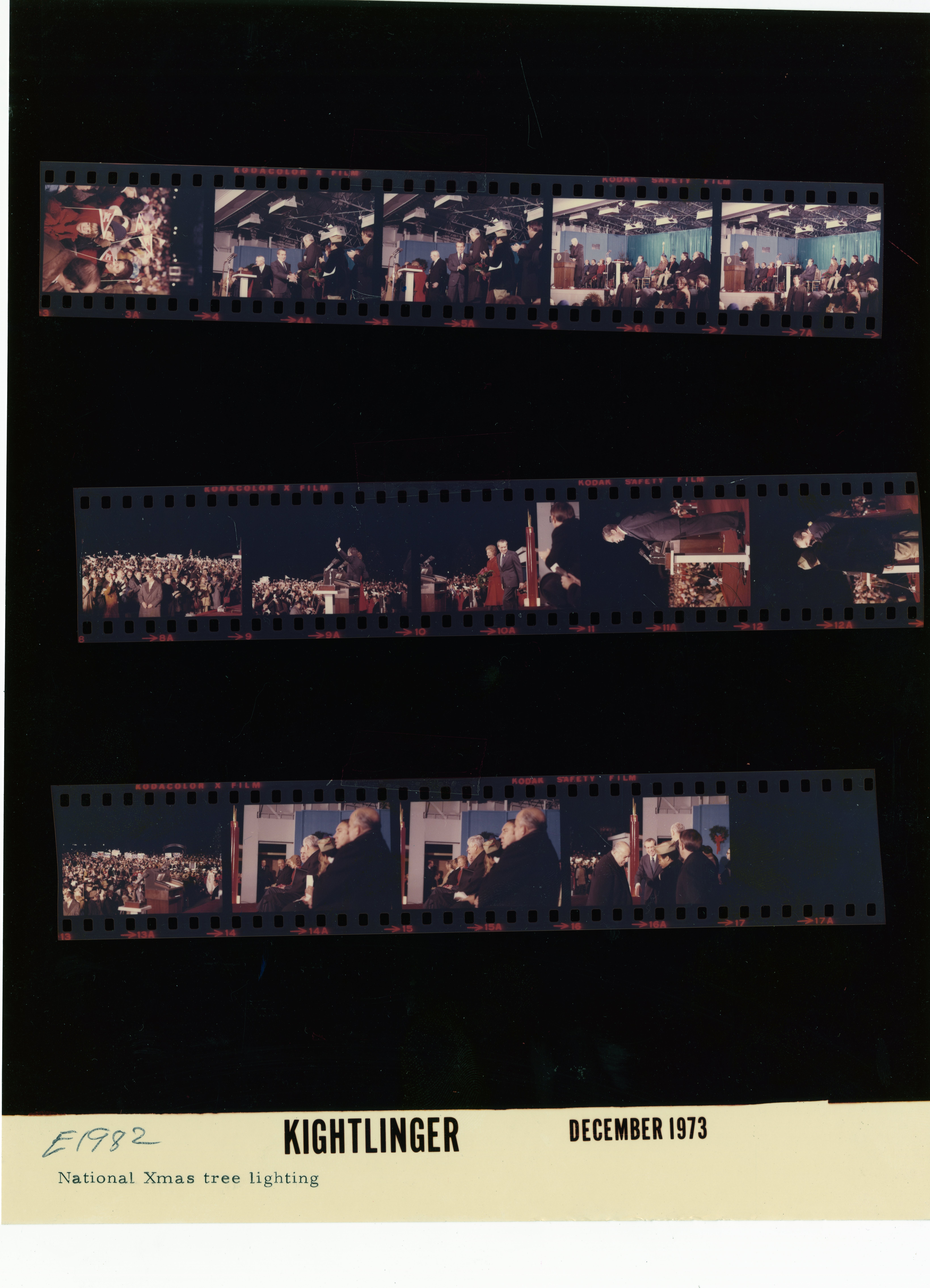 - Frame(s): WHPO-E1983-, President Nixon addresses guests attending the National Community Christmas Tree Lighting Ceremony. 12/14/1973, Washington, D.C. Ellipse. President Nixon and attending guests.
