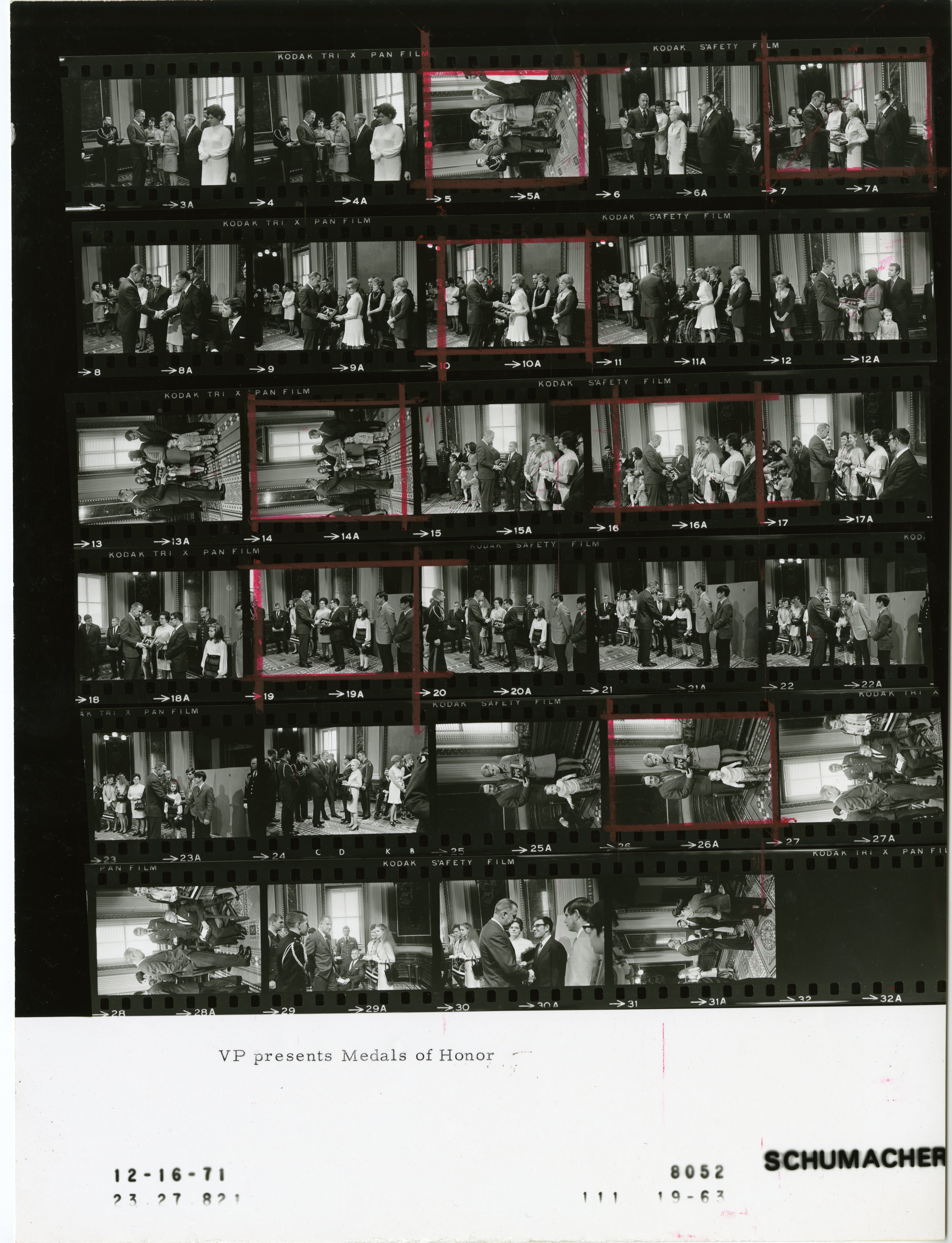 • Frame(s): WHPO-8052-, Vice President Agnew presenting Medals of Honor to recipients and families. 12/16/1971, Washington, D.C. unknown. Spiro Agnew, unidentified Medal of Honor recipient's families.