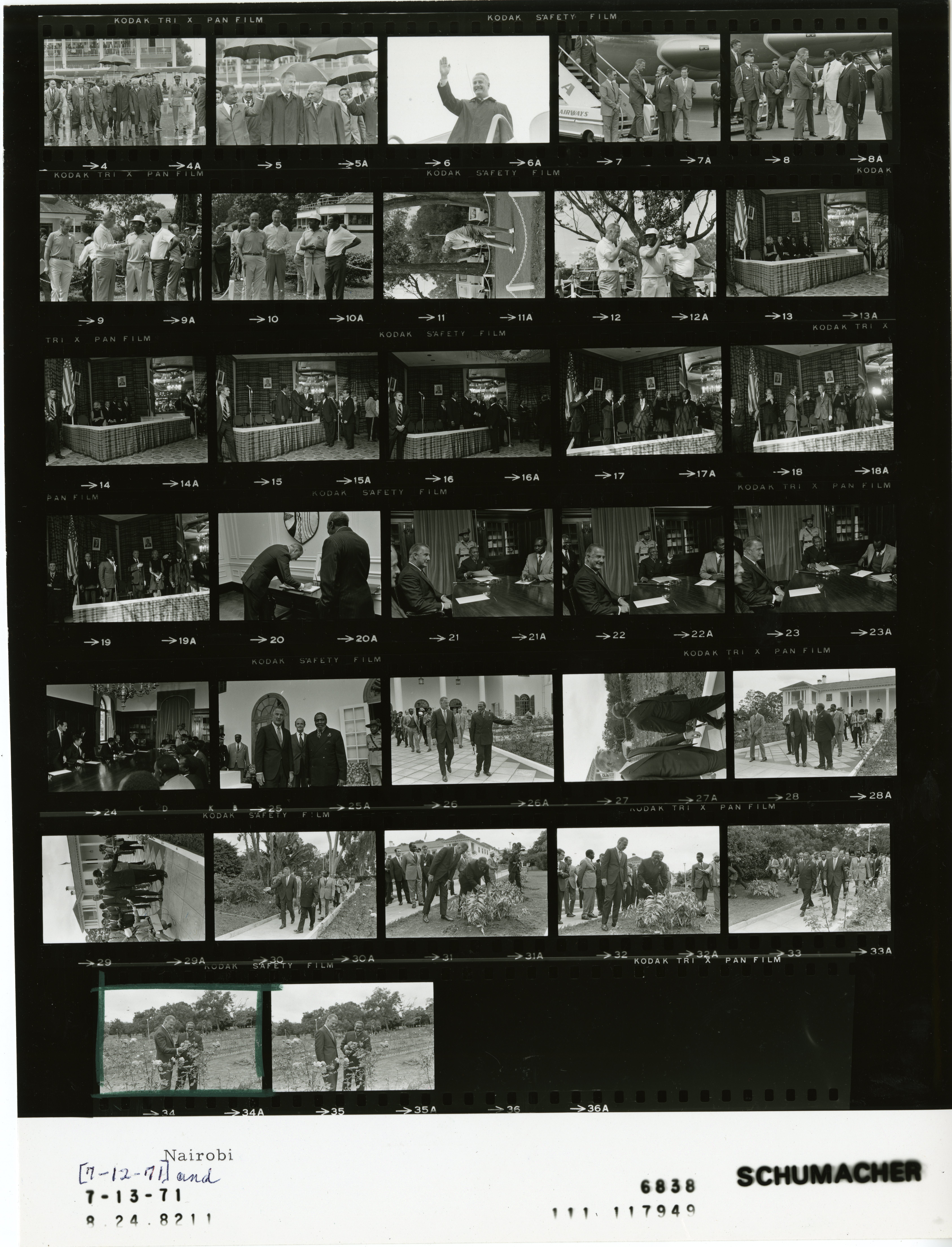 • Frame(s): WHPO-6841-03-04, Vice President Agnew being greeted upon arrival. 7/12/1971, Kenya Nairobi Airport. Spiro Agnew, unidentified officials.