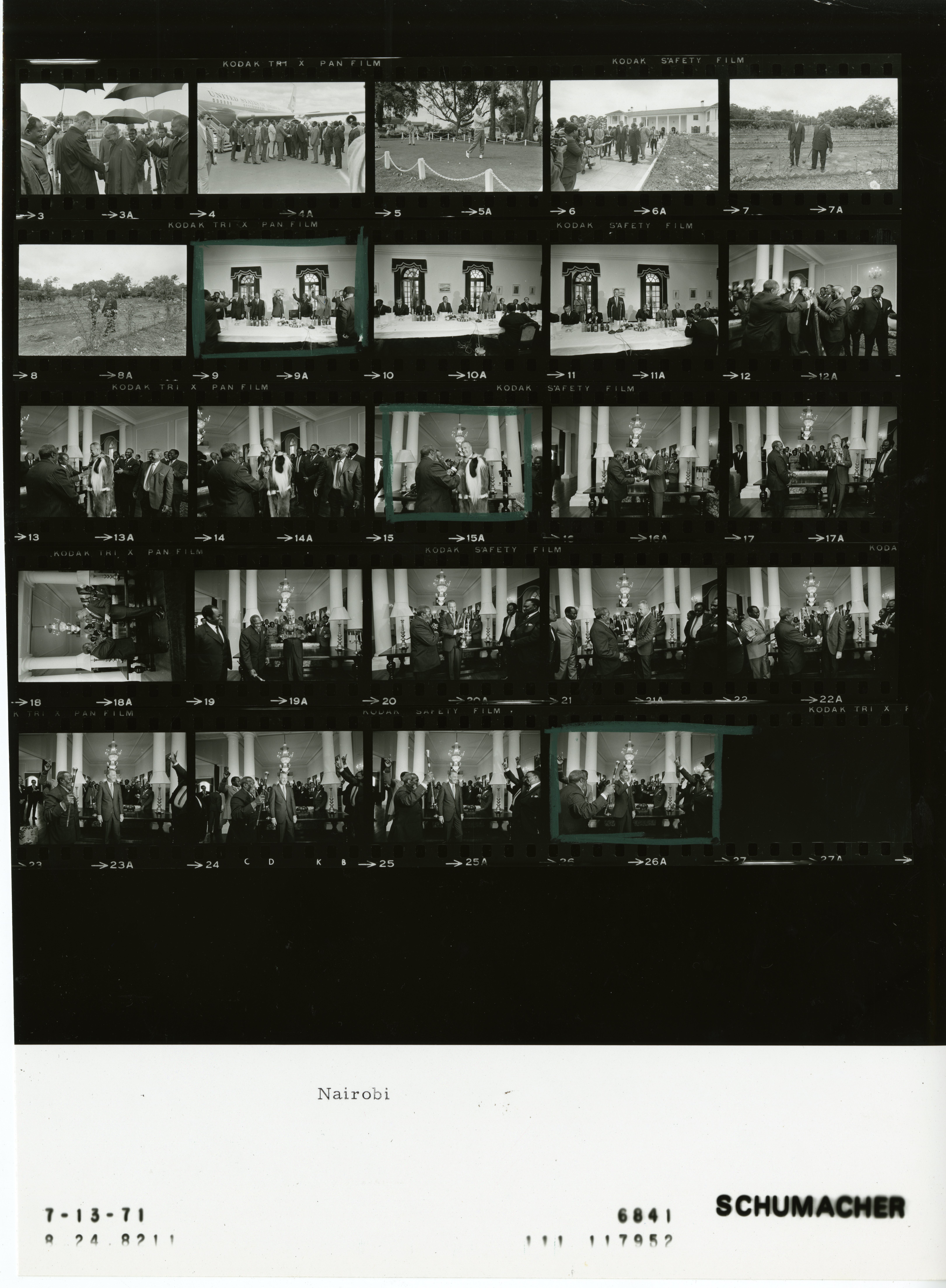 • Frame(s): WHPO-6838-04-19, Vice President Agnew at various locations in Nairobi, Kenya. Reception for Agnew at a hotel. 7/12/1971, Nairobi, Kenya airport, golf range, Inter-Continental Hotel. Spiro Agnew, unidentified officials.