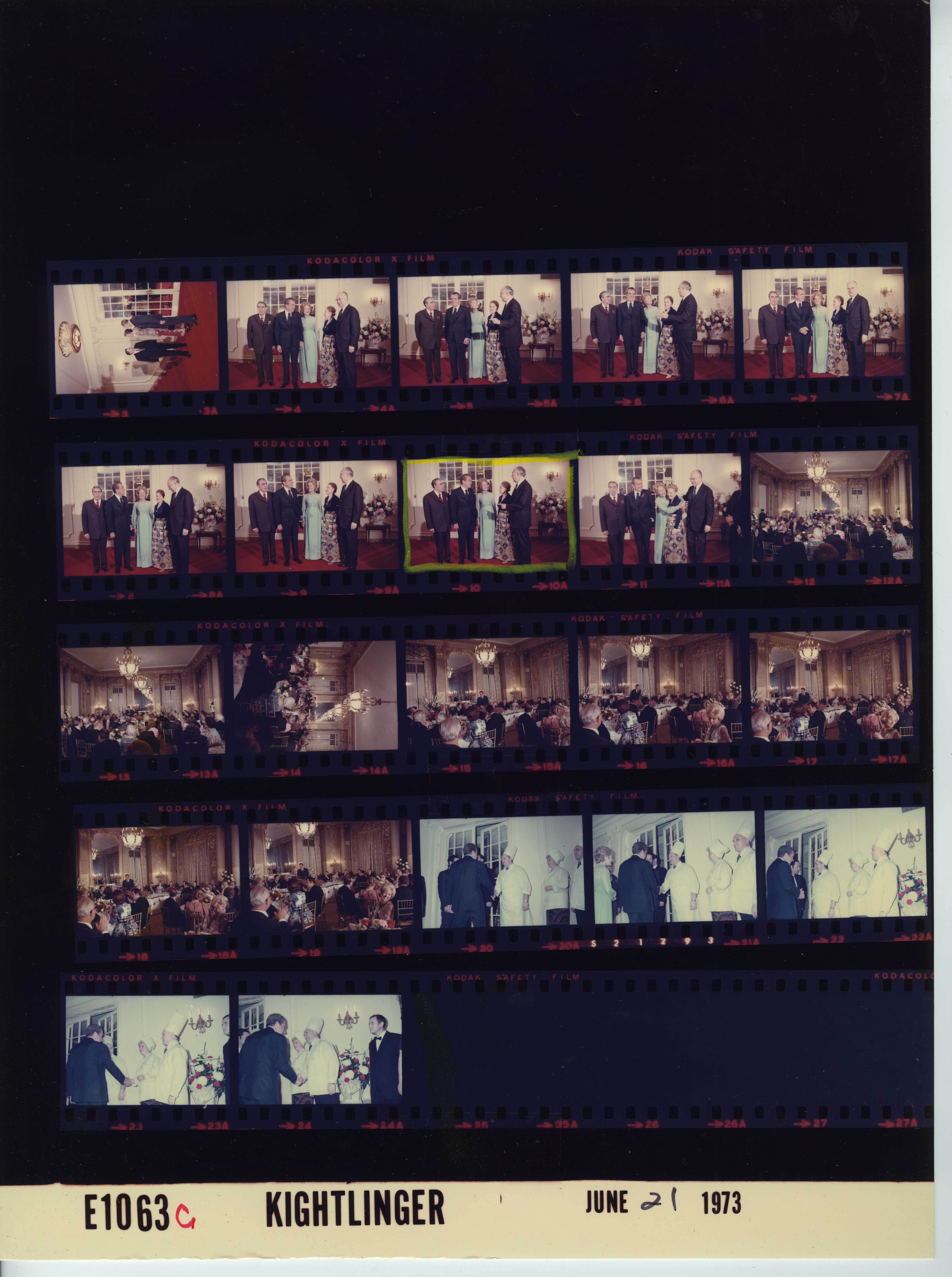 - Frame(s): WHPO-E1062-02A-13A, 15A-23A, President Nixon, Pat Nixon, and Vice President Agnew attend a reciprocal State Dinner hosted by Leonid Brezhnev and visiting Soviet Officials at the Russian Embassy. 6/21/1973, Washington, D. C. Russian Embassy, The Golden Room. President Nixon, Pat Nixon, Spiro Agnew, Leonid Brezhnev, interpreter Viktor M. Sukhodrev.