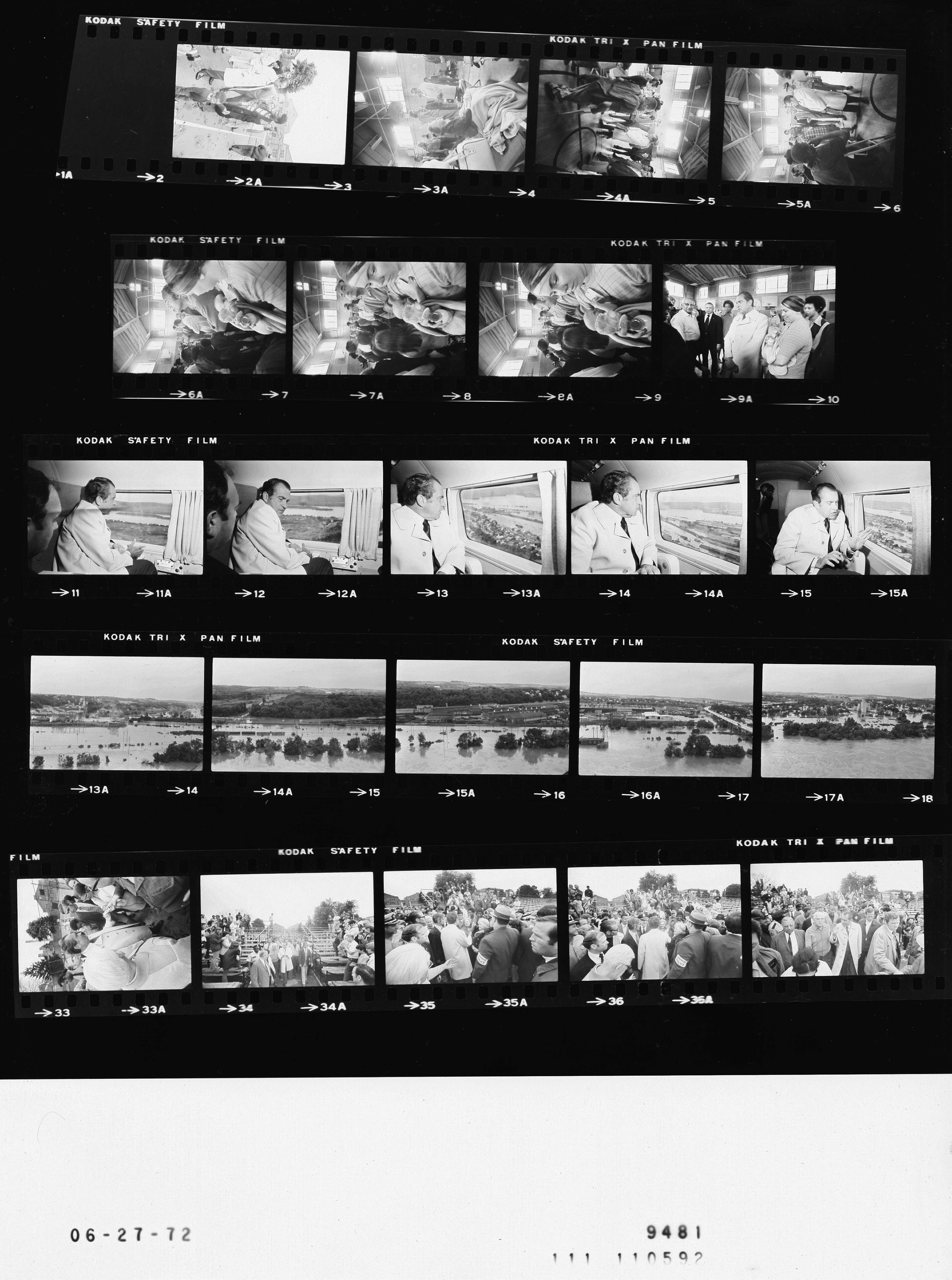 - Frame(s): WHPO-9484-4A-29A No negatives - contact sheet only., President Nixon surveying the flood damage from a helicopter and talking with flood victims. 6/24/1972, Harrisburg, Pennsylvania William Penn High School, air. President Nixon, flood victims, officials.
