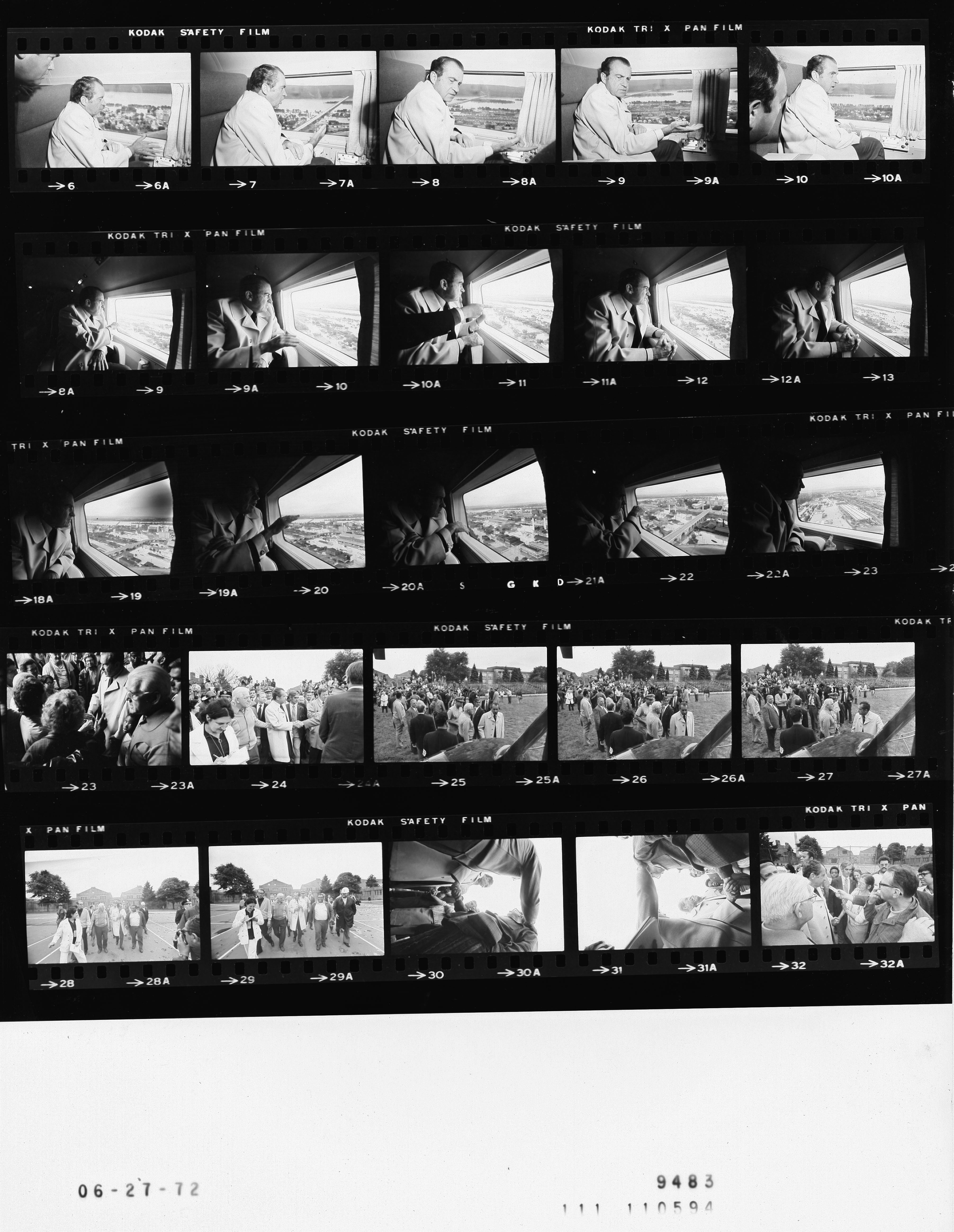 - Frame(s): WHPO-9486-8A-27A No negatives - contact sheet only., President Nixon surveying the flood damage from a helicopter and talking with flood victims. 6/24/1972, Harrisburg, Pennsylvania William Penn High School, air. President Nixon, flood victims, officials.