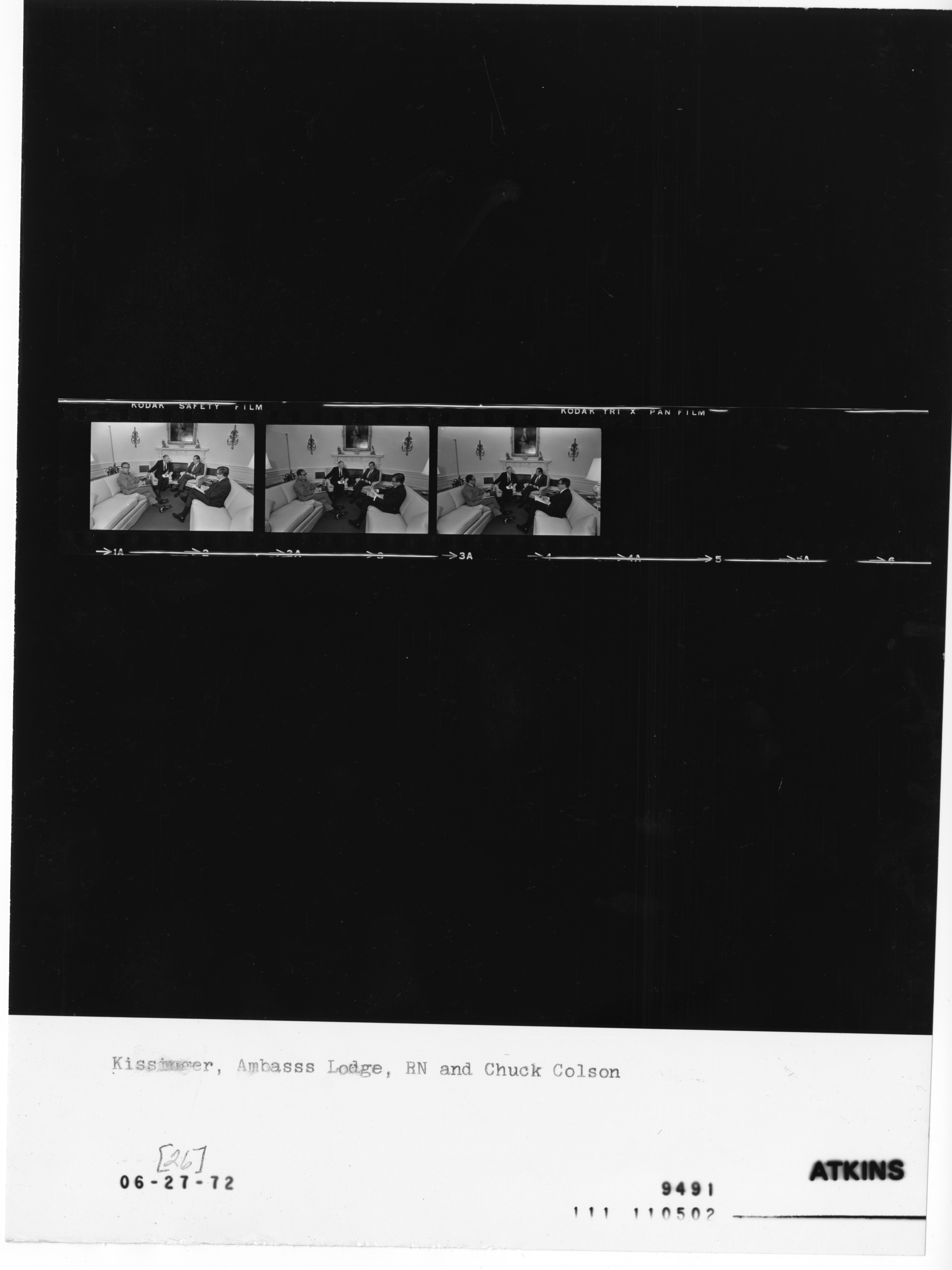 - Frame(s): WHPO-9491-, President Nixon seated informally with Henry Kissinger, Henry Cabot Lodge, and Charles Colson. 6/26/1972, Washington, D.C. White House, Oval Office. President Nixon, Kissinger, Henry Cabot Lodge, Charles W. Colson.