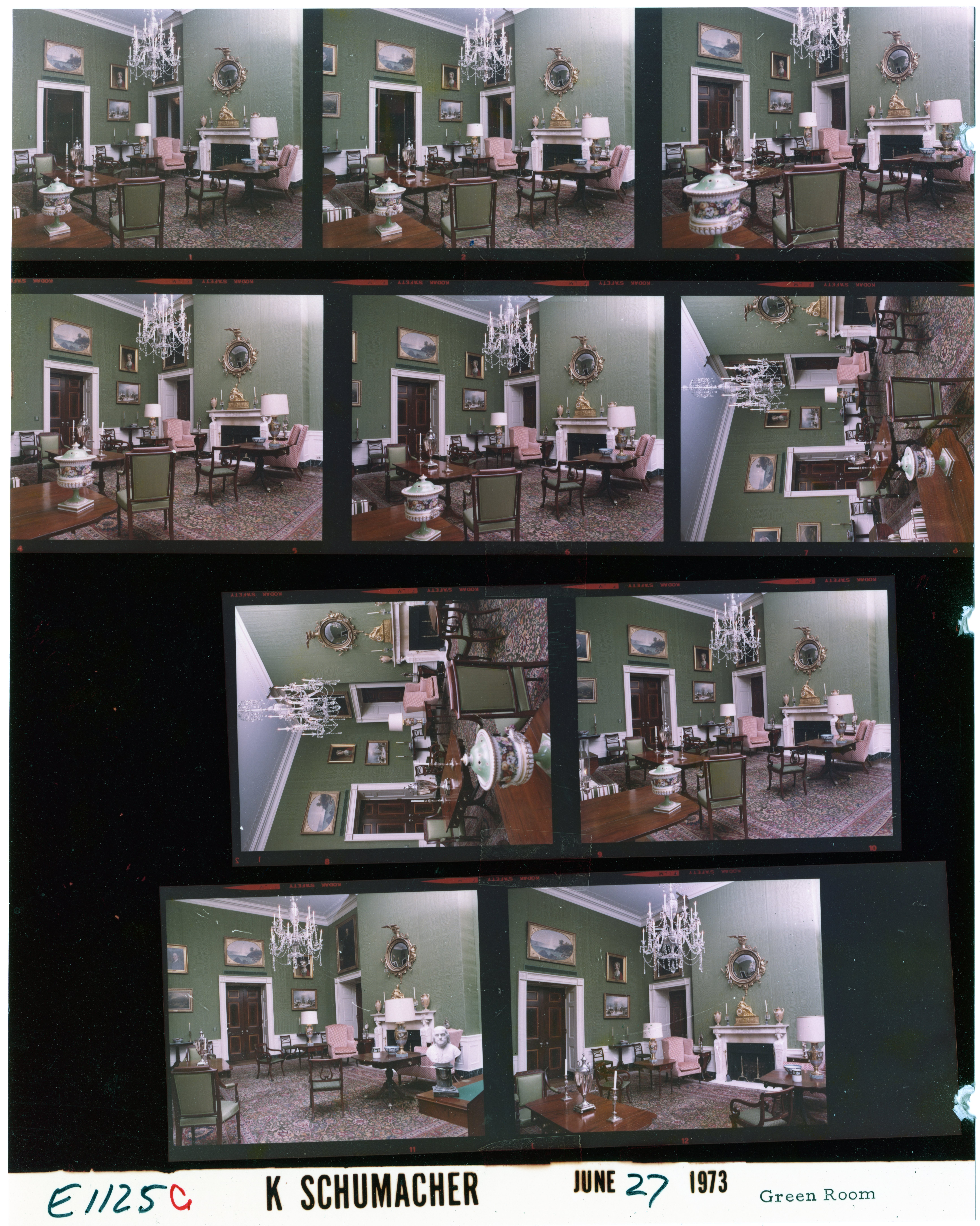 - Frame(s): WHPO-E1125-01-10, A White House Green room interior. 6/27/1973, Washington, D.C. White House, Green Room.