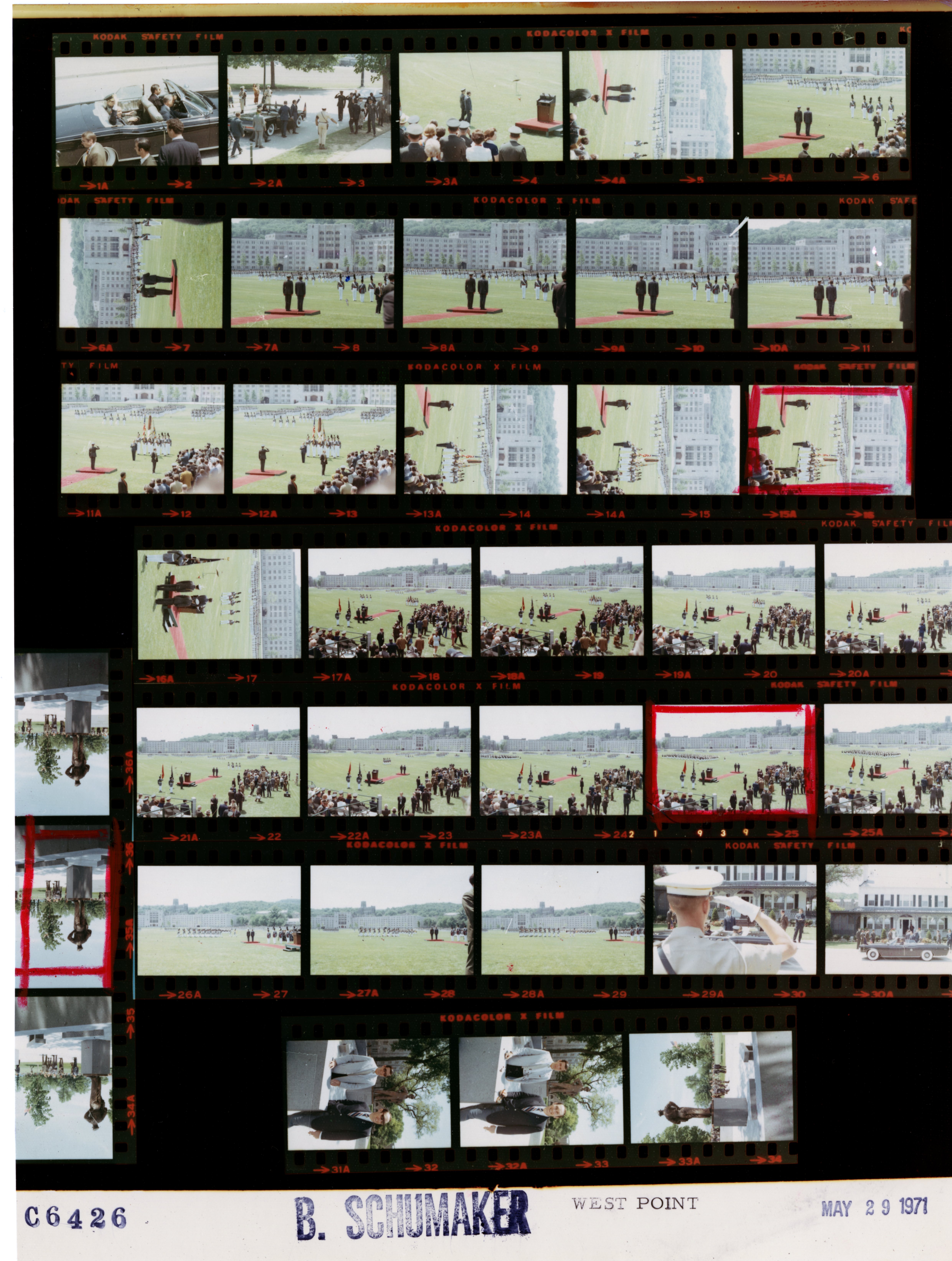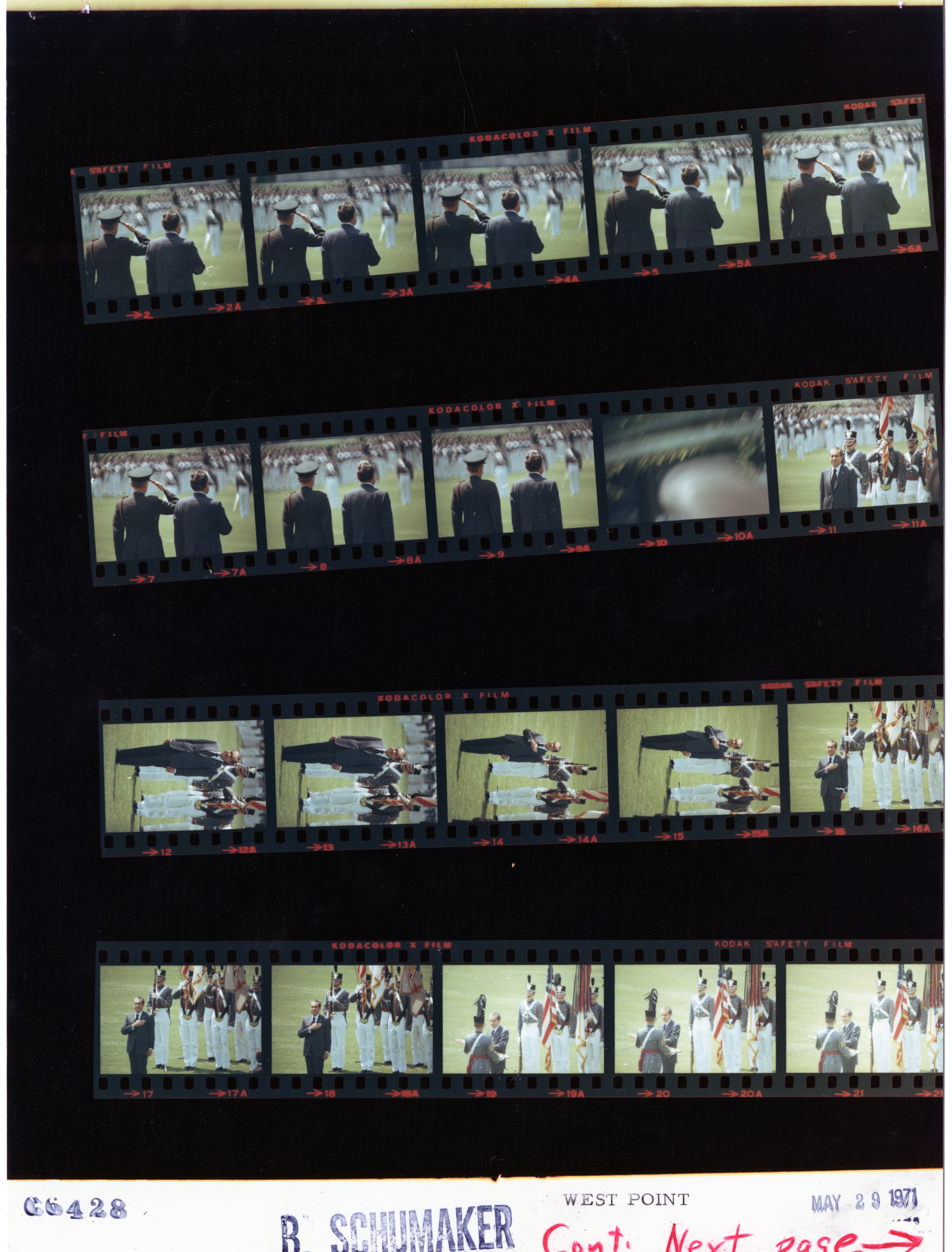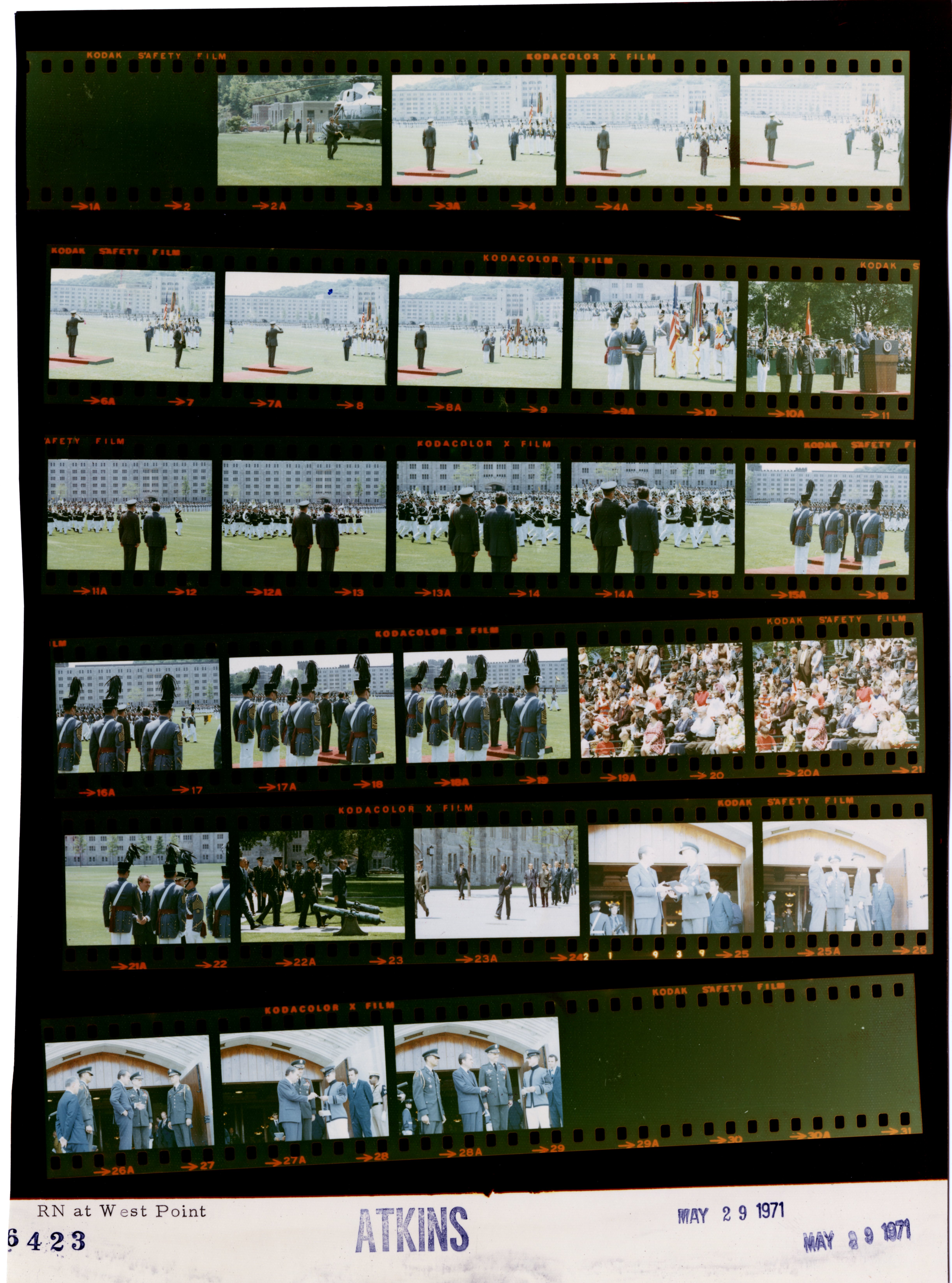- Frame(s): WHPO-6426-01A-30A, President Nixon attending a reviewing ceremony at West Point military academy with Superintendent Major General William Knowlton. 5/29/1971, West Point, New York Parade Field. President Nixon, Gen. William Knowlton, military personnel, guests, aides.
