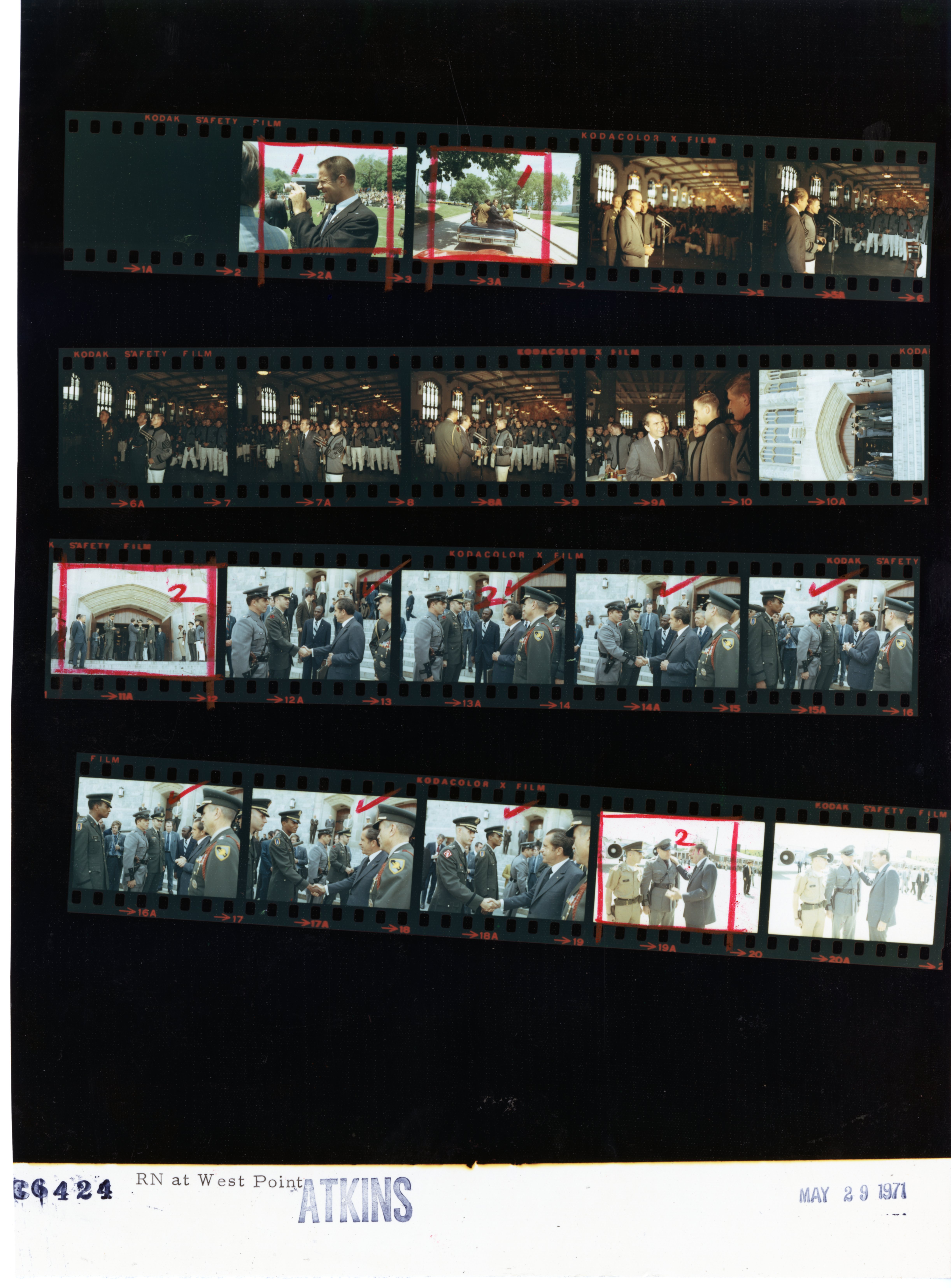 - Frame(s): WHPO-6429-12A-18A, President Nixon visits West Point Military Academy. 5/29/1971, West Point, New York Parade Field. President Nixon, Gen. William Knowlton, cadets, crowd, aides.