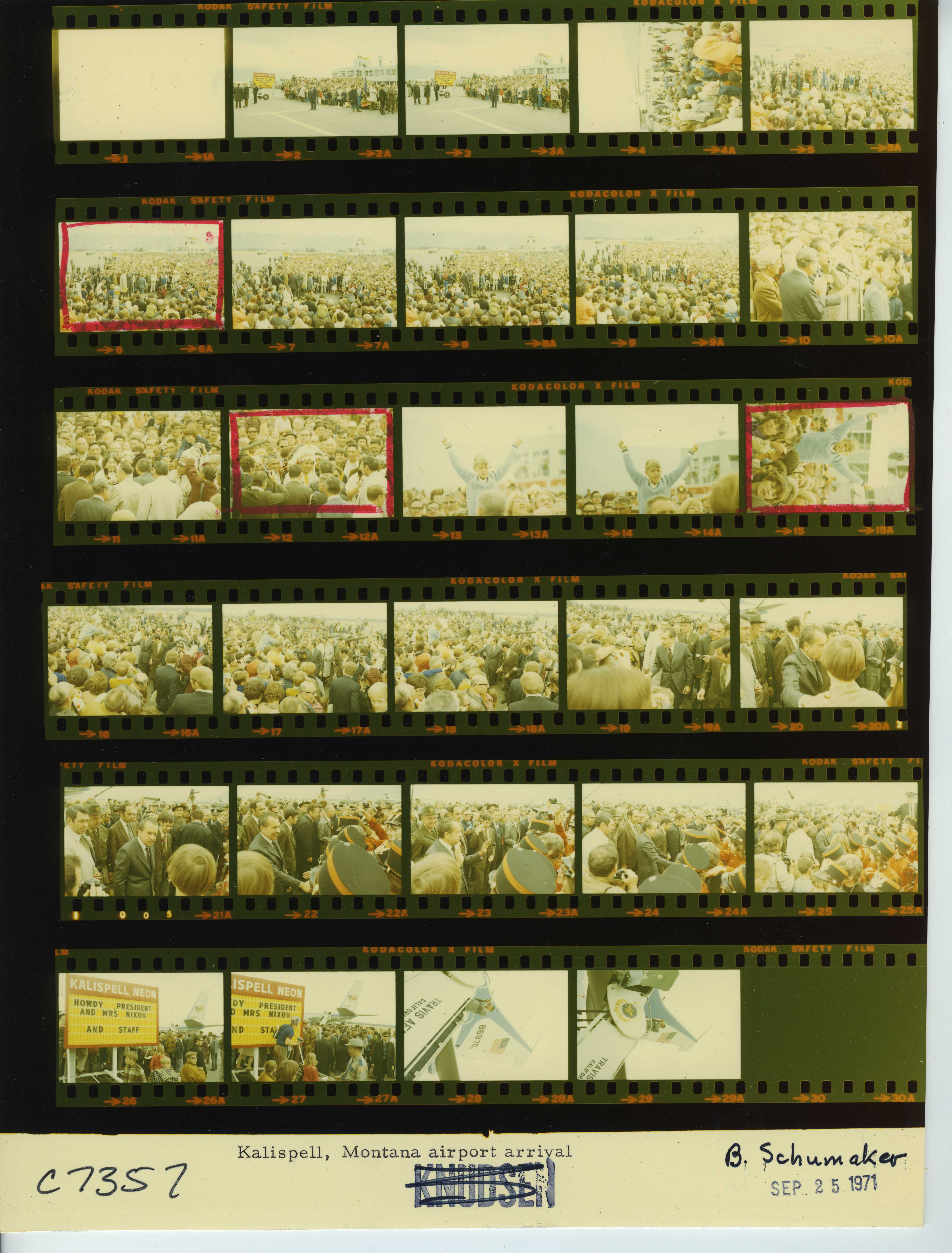 - Frame(s): WHPO-7357-11-25, President Nixon greeting the crowd upon arrival at Kalispell, Montana. 9/25/1971, Kalispell, Montana Glacier Park International Airport. President Nixon, Mike Mansfield, officials, crowd.