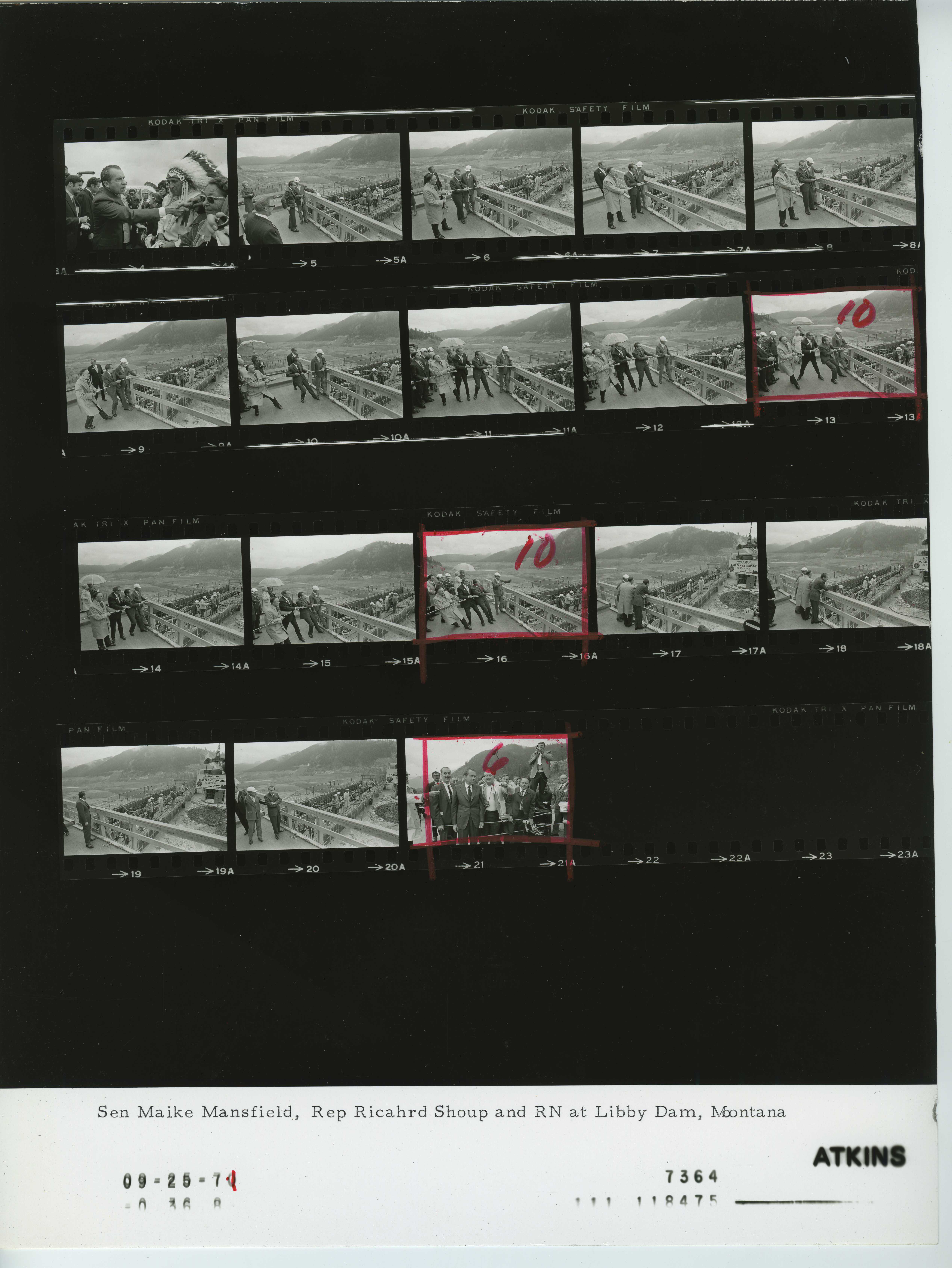 - Frame(s): WHPO-7364-17-21, President Nixon, Congressman Richard Shoup, Senator Mike Mansfield, and Stanley Stearns, the Libby Dam Project Manager touring the Libby Dam construction site in Montana. 9/25/1971, Libby Dam, Montana construction site. President Nixon, Senate Majority Leader Mike Mansfield, Richard Shoup, Stanley Stearns, Mrs. Mansfield, Gen. Kenneth Sawyer, Col. Howard Sargent, officials.