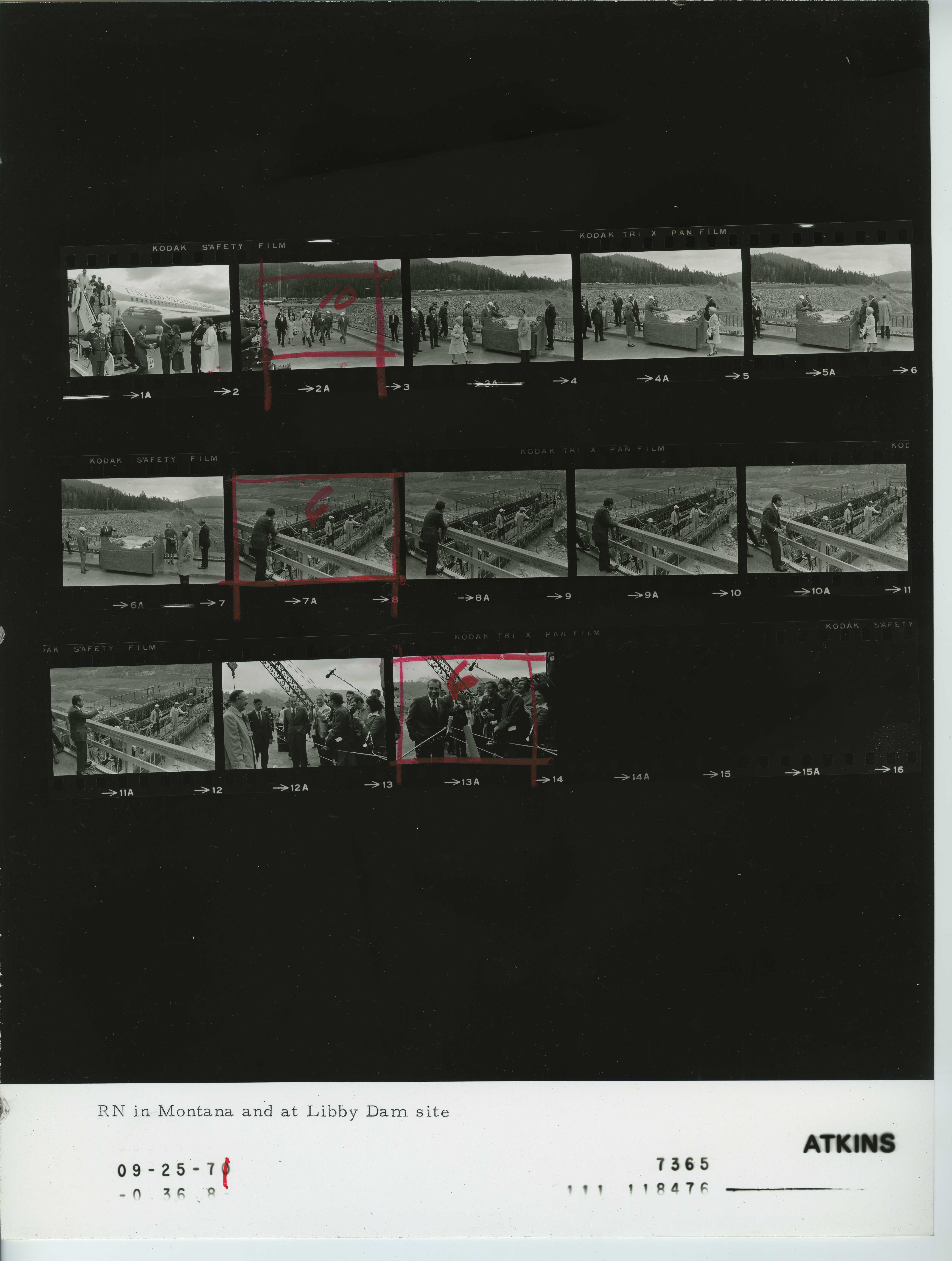 - Frame(s): WHPO-7365-02A-13A, President Nixon, Pat Nixon, Mike Mansfield, Richard Shoup, Stanley Stearns and officials touring the Libby Dam construction site. 9/25/1971, Libby Dam, Montana construction site. President Nixon, Pat Nixon, Mike Mansfield, Richard Shoup, Stanley Stearns, Mrs. Mansfield, Gen. Kenneth Sawyer, Col. Howard Sargent, Phillip Cole, officials, reporters.