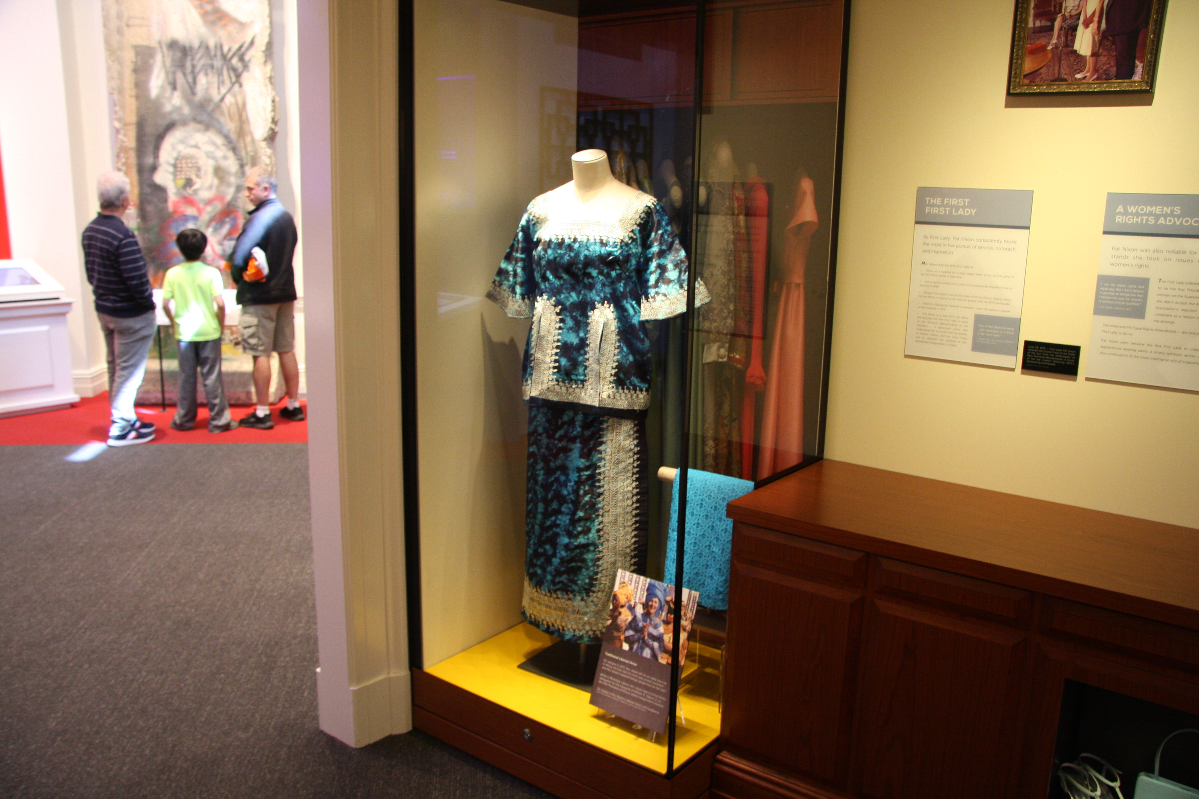 On display is Mrs. Nixon’s Liberian dress and headpiece.