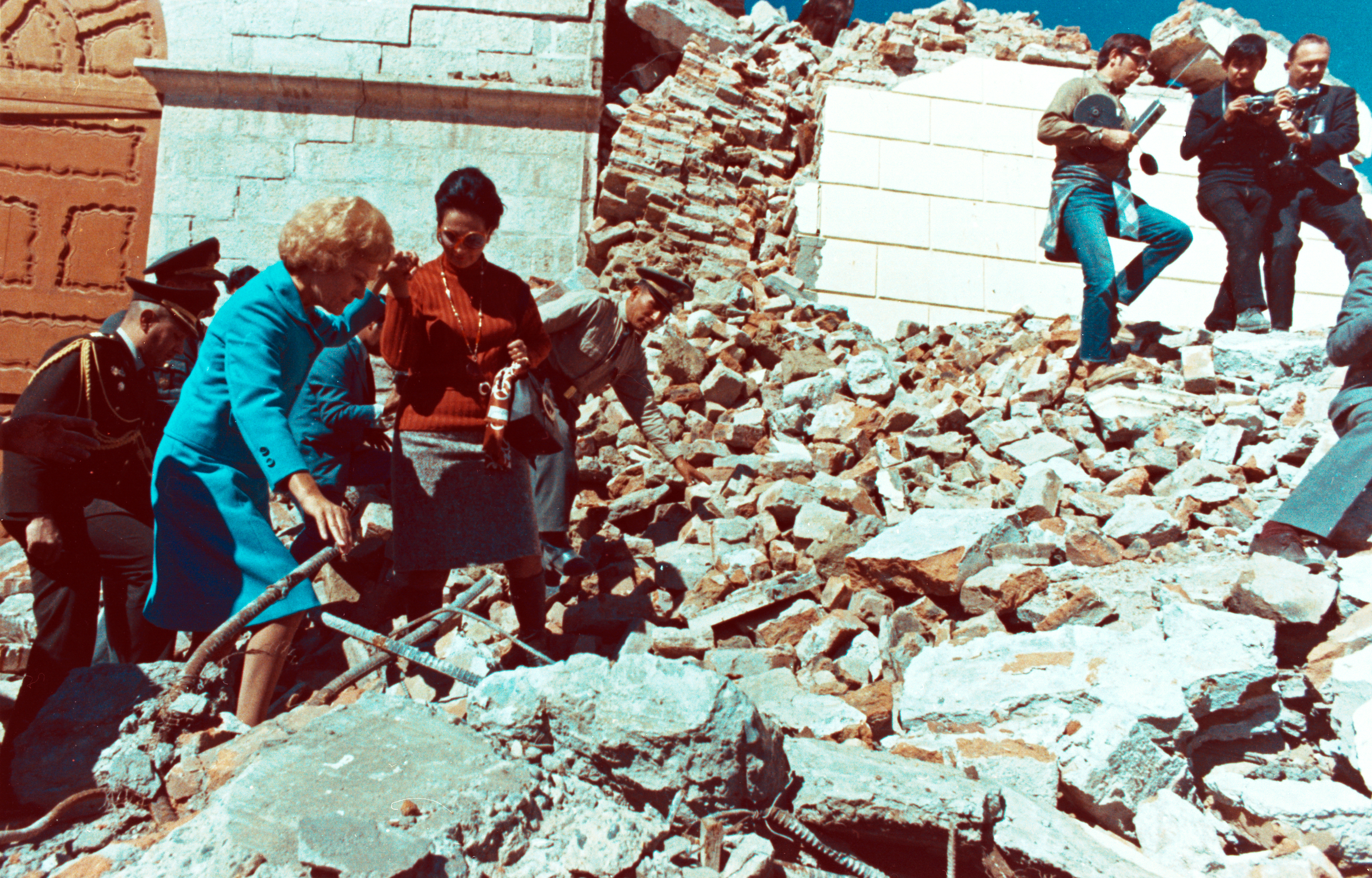 Pat Nixon embarked upon many goodwill tours to represent her husband in various parts of the world. One of her most memorable efforts took place in June of 1970 when she flew to earthquake stricken Peru. While flying on Air Force One, another jet flew in nine tons of relief supplies gathered by volunteers. Peru’s First Lady Consuelo Velasco met Mrs. Nixon in Lima. After supplies were transferred to a cargo plane, both first ladies flew to the Huascaran Mountain to deliver the supplies where the earthquake struck. The President of Peru, Juan Velasco set aside political differences for her courage and awarded Mrs. Nixon the Grand Order of the Sun, one of the America’s oldest established civilian awards since 1821.