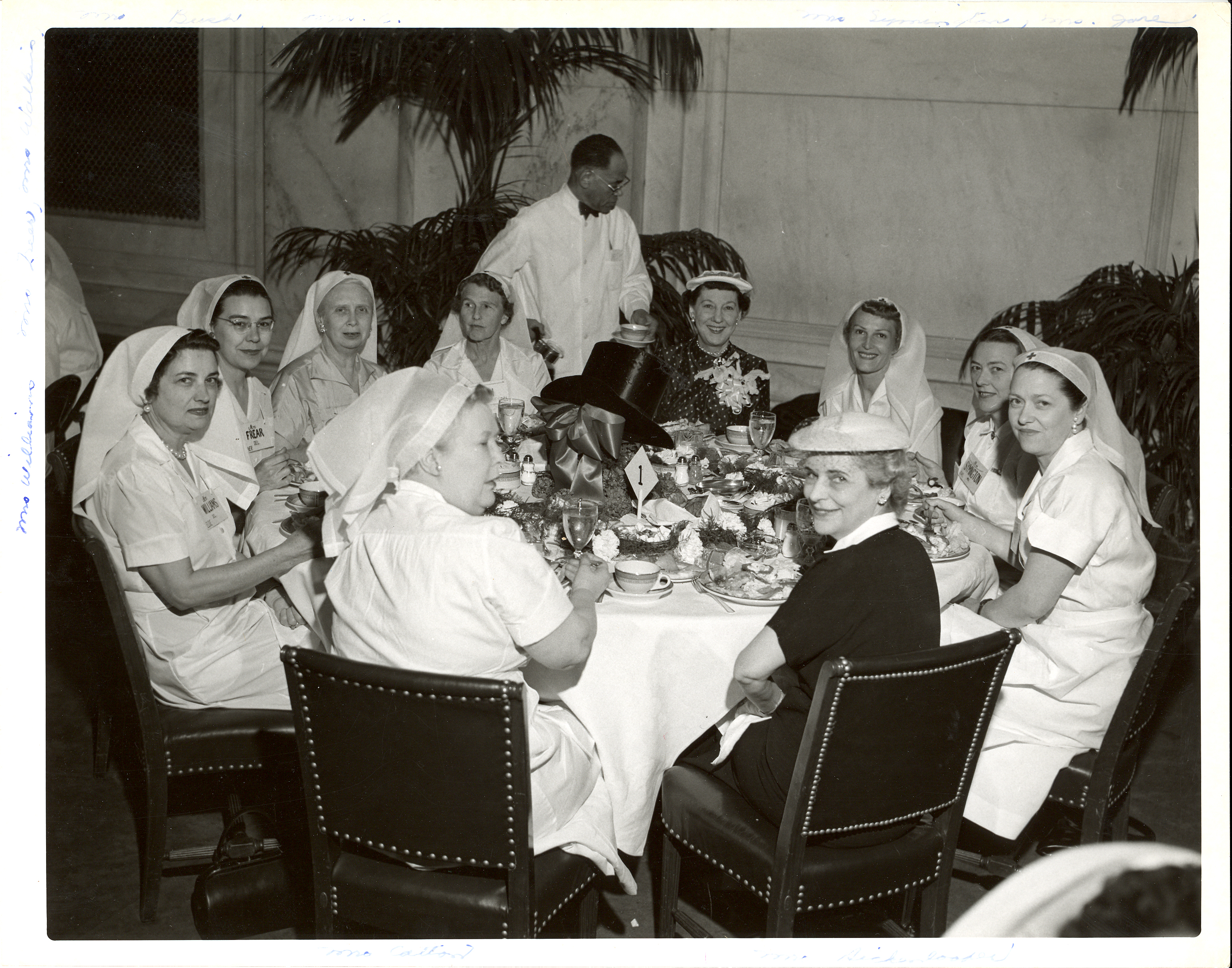 The photo above shows Mrs. Nixon seated next to Mamie Eisenhower at a Senate Ladies Luncheon given in honor of the First Lady, April 24, 1956.