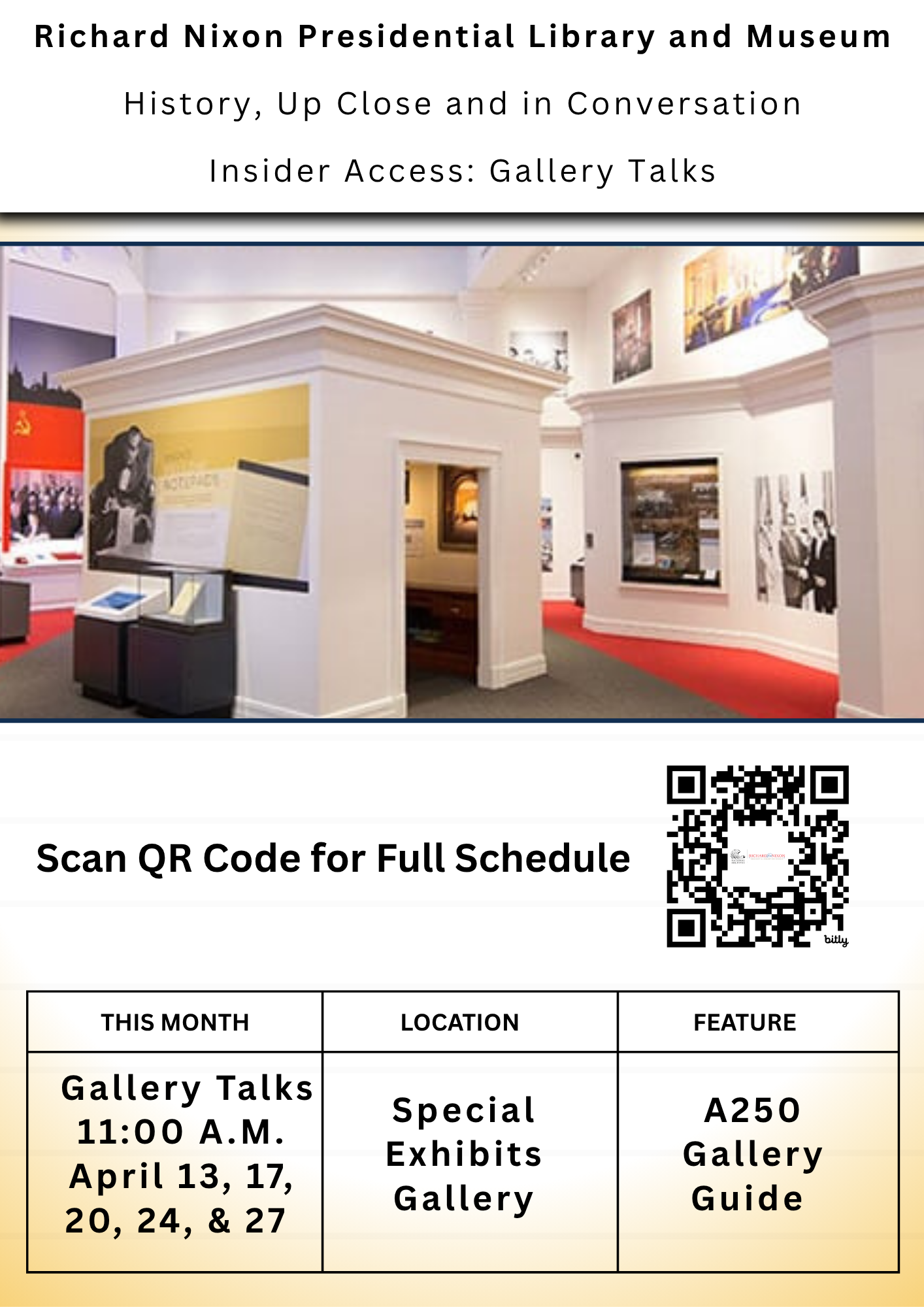 For accessibility support or specific needs, please contact our public programs team at 714.983.9296 or rachel.fisher@nara.gov before your visit.