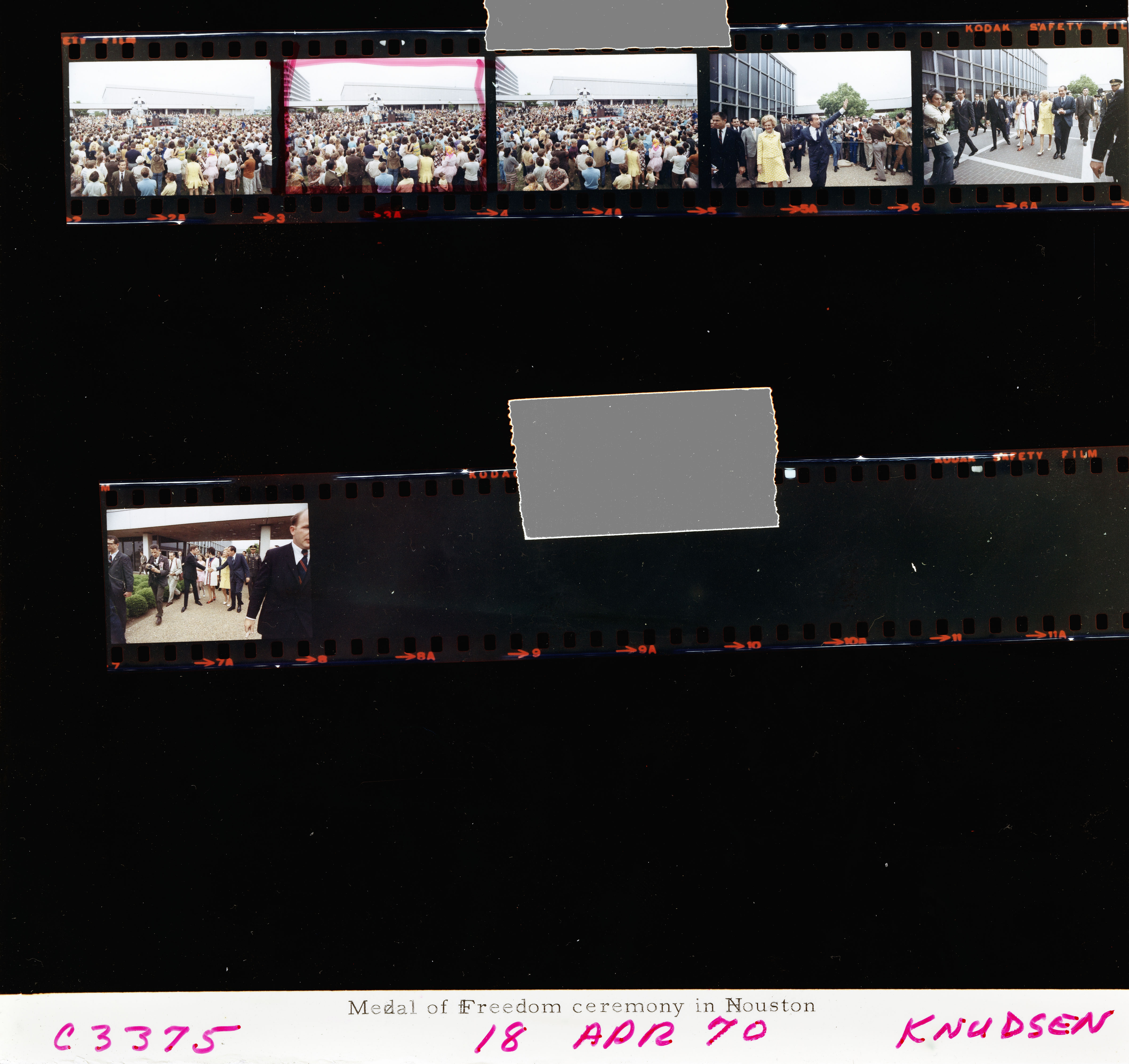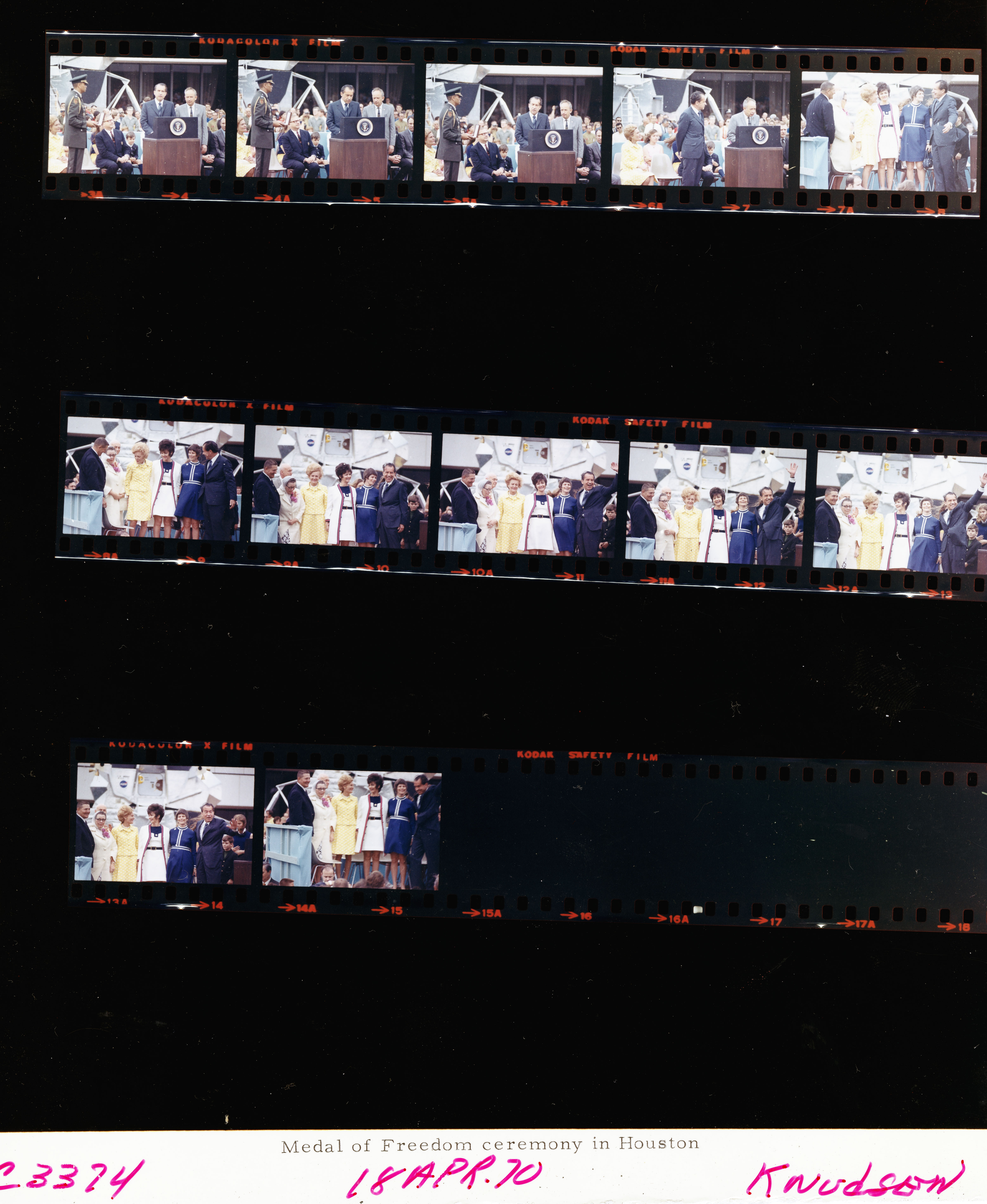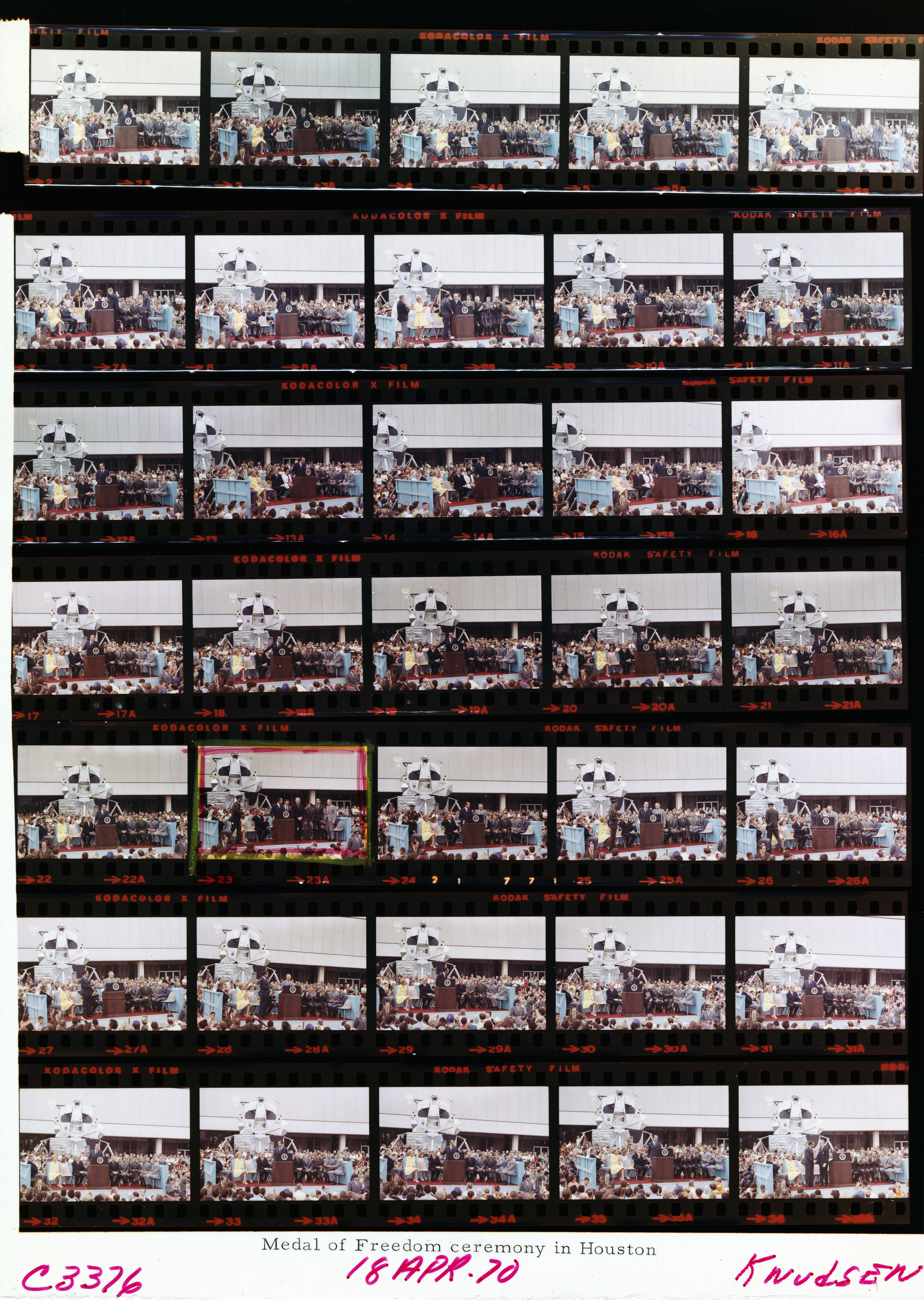 - Frame(s): WHPO-3375-02A-07A, President Nixon awarding the "Medal of Freedom" to the Apollo 13 ground crew represented by Dr. Sigurd Sjoberg. 4/18/1970, Houston, TX Ellington AFB. President Nixon, Dr. Sigurd Sjoberg, Mrs. Lovell, Mrs. Haise, Dr. and Mrs. John Swigert, Thomas Paine, NASA Administrator.