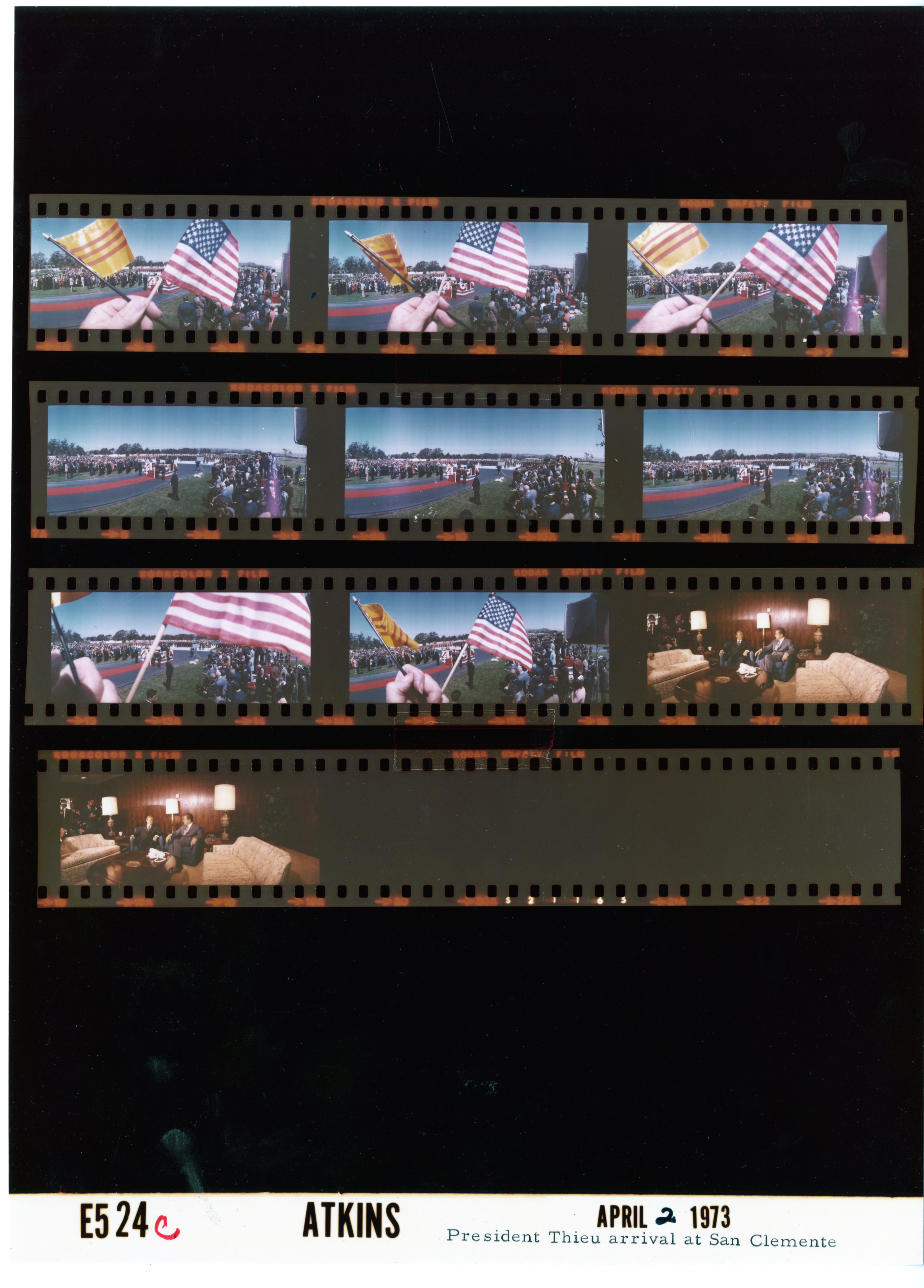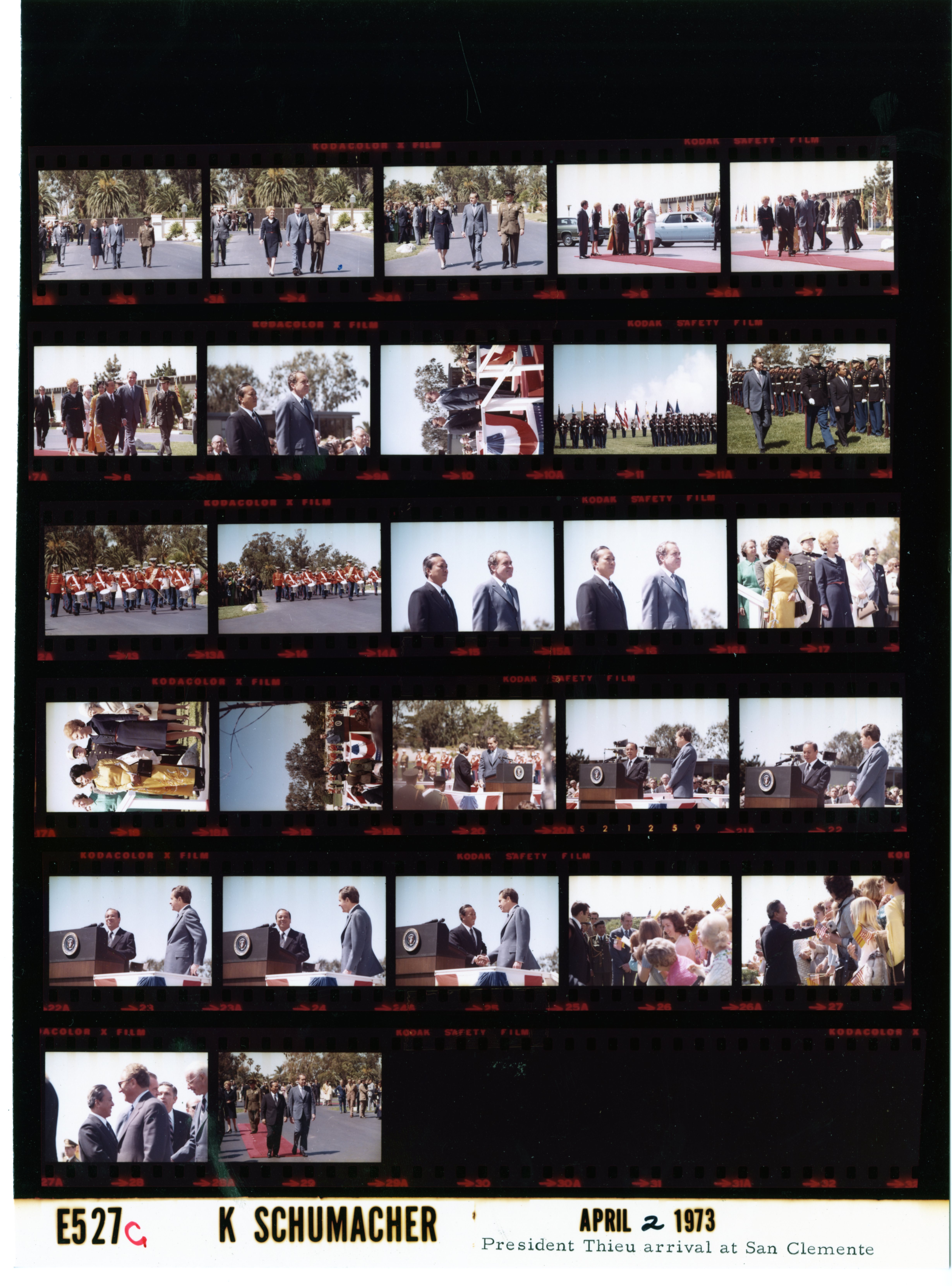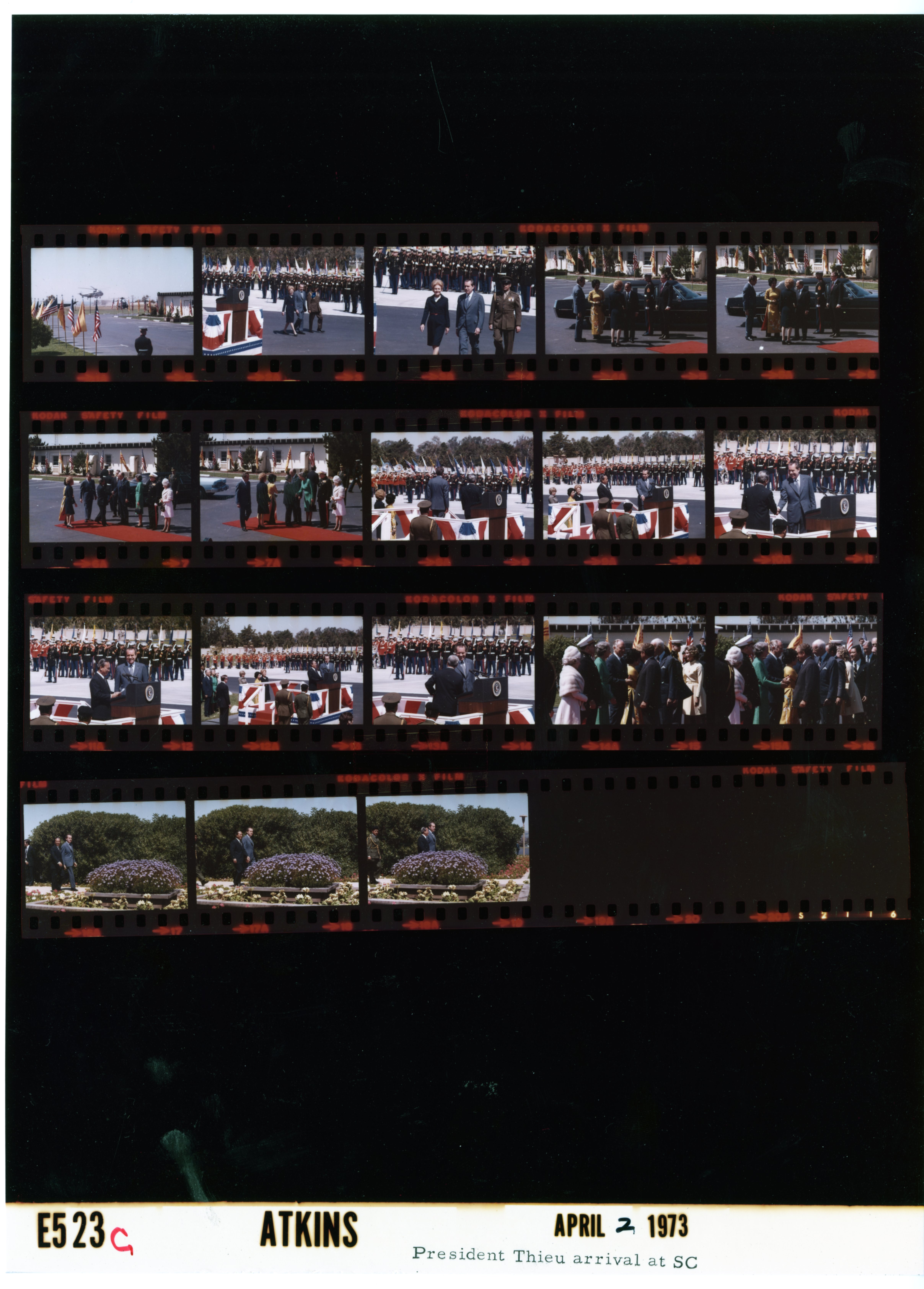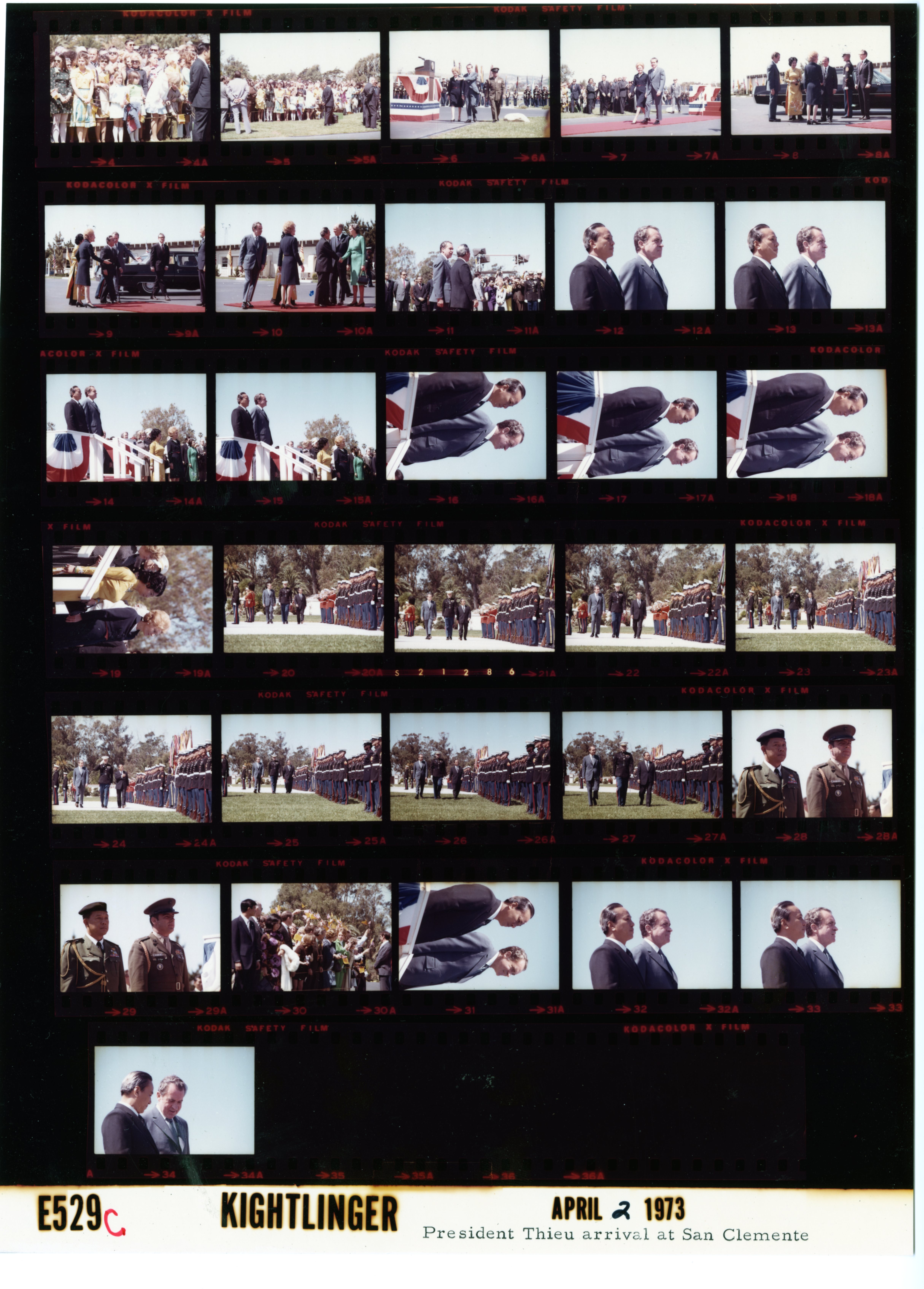 - Frame(s): WHPO-E0524-, Arrival ceremony for President of the Republic of Vietnam Nguyen Van Thieu. 4/2/1972, San Clemente, CA Western White House helipad; office. President Nixon, Nguyen Van Thieu, military honor guard, attendees.