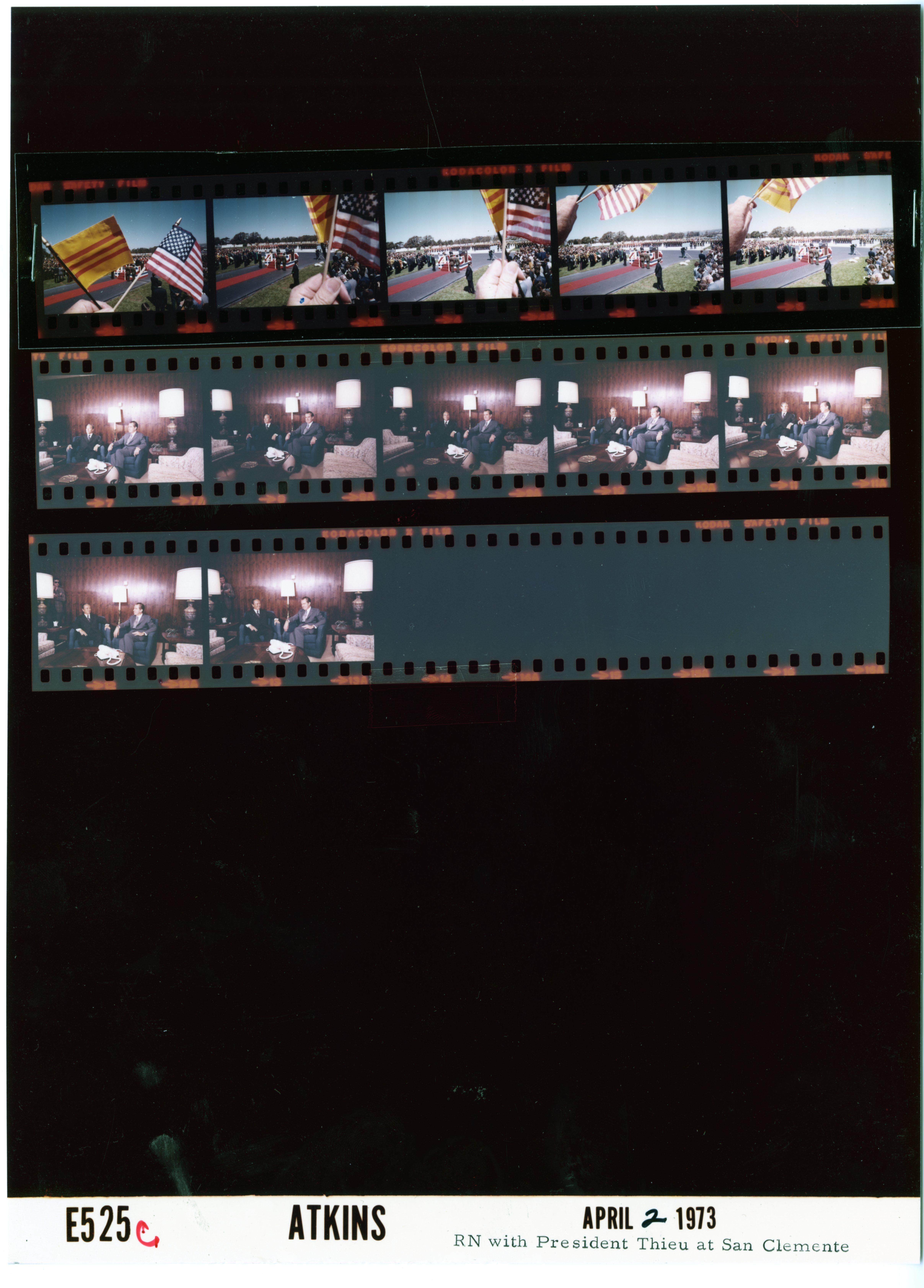 - Frame(s): WHPO-E0525-, Arrival ceremony for President of the Republic of Vietnam Nguyen Van Thieu. 4/2/1972, San Clemente, CA Western White House helipad; office. President Nixon, Nguyen Van Thieu, military honor guard, attendees.