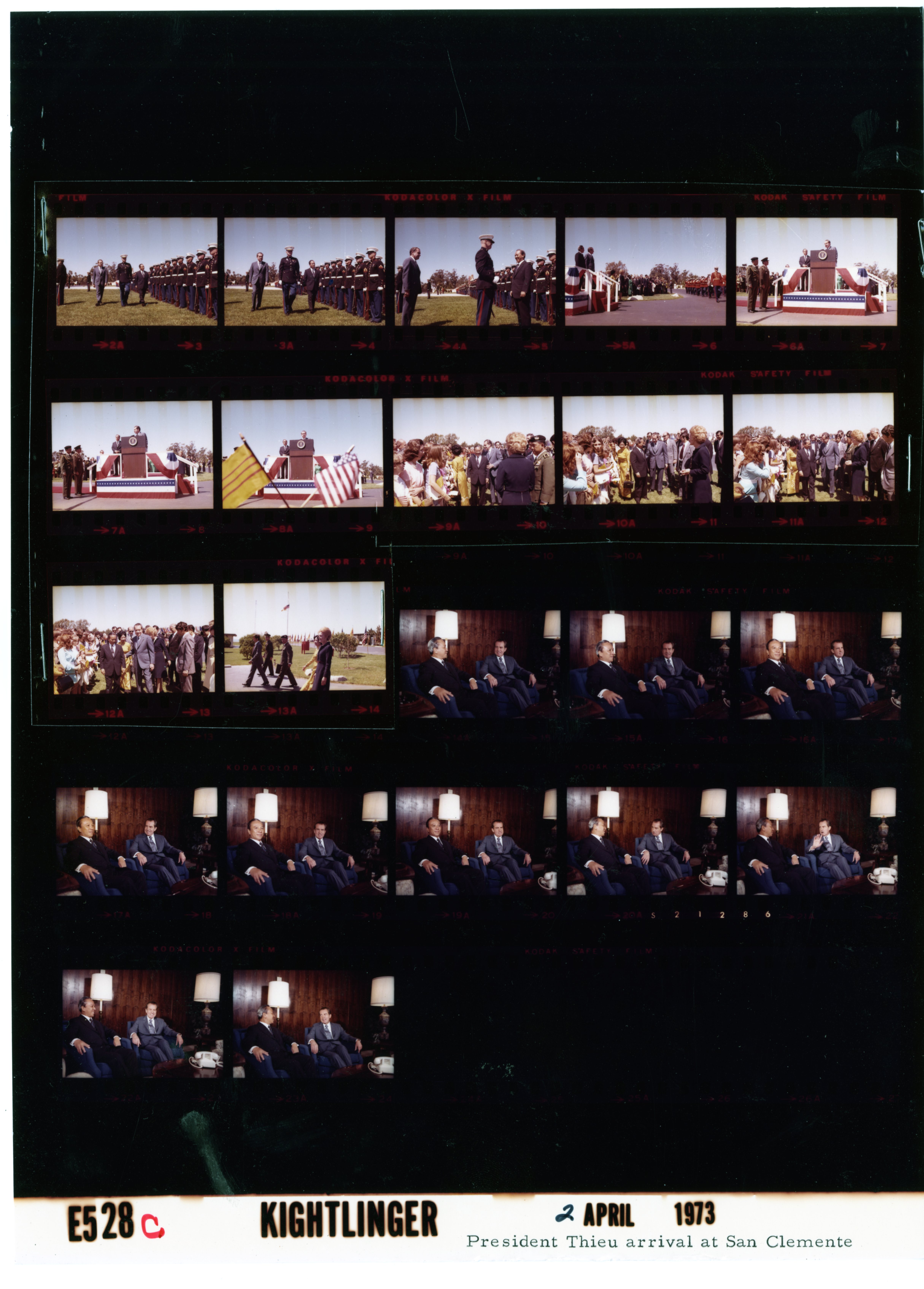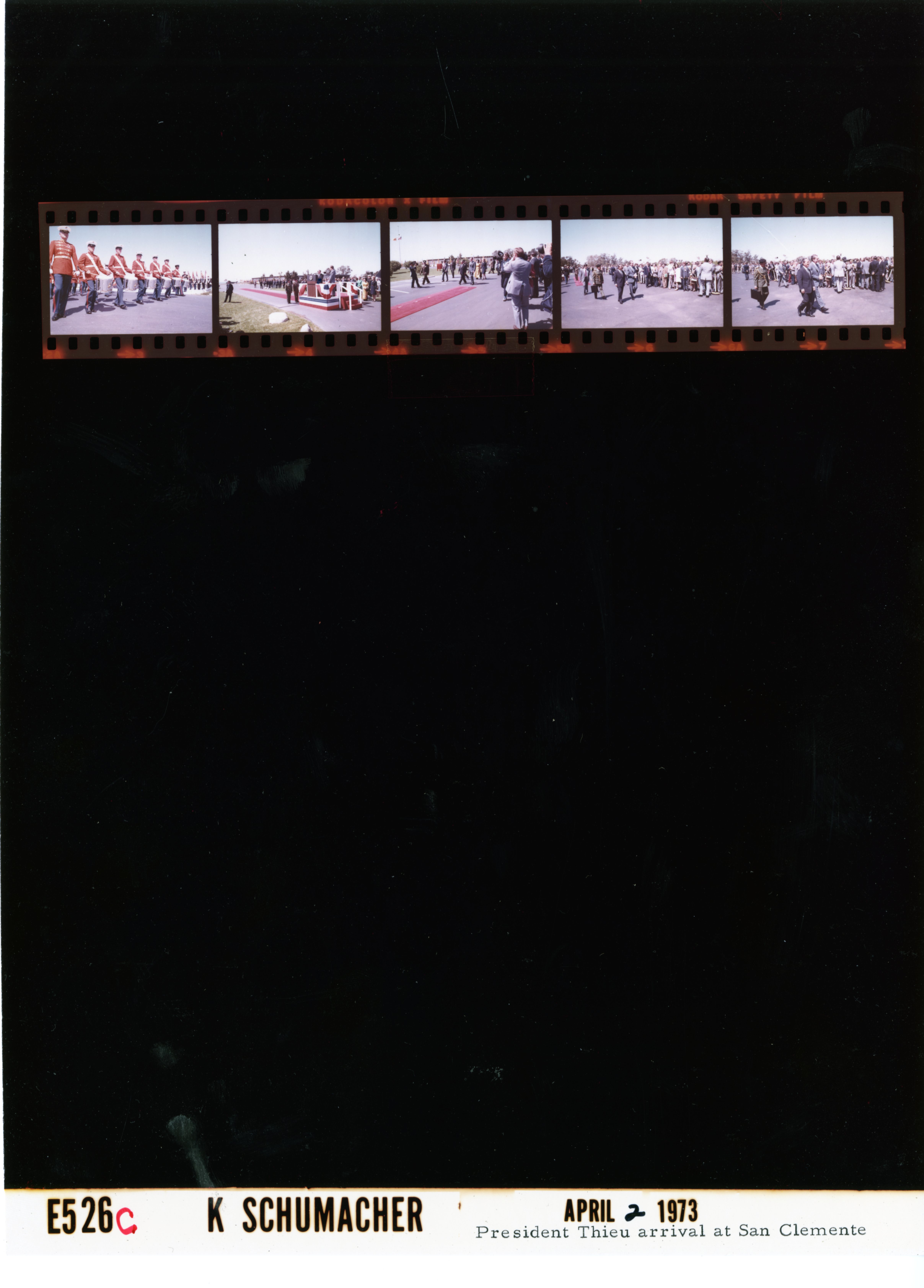 - Frame(s): WHPO-E0526-, Arrival ceremony for President of the Republic of Vietnam Nguyen Van Thieu. 4/2/1972, San Clemente, CA Western White House helipad. President Nixon, Nguyen Van Thieu, military honor guard, attendees.