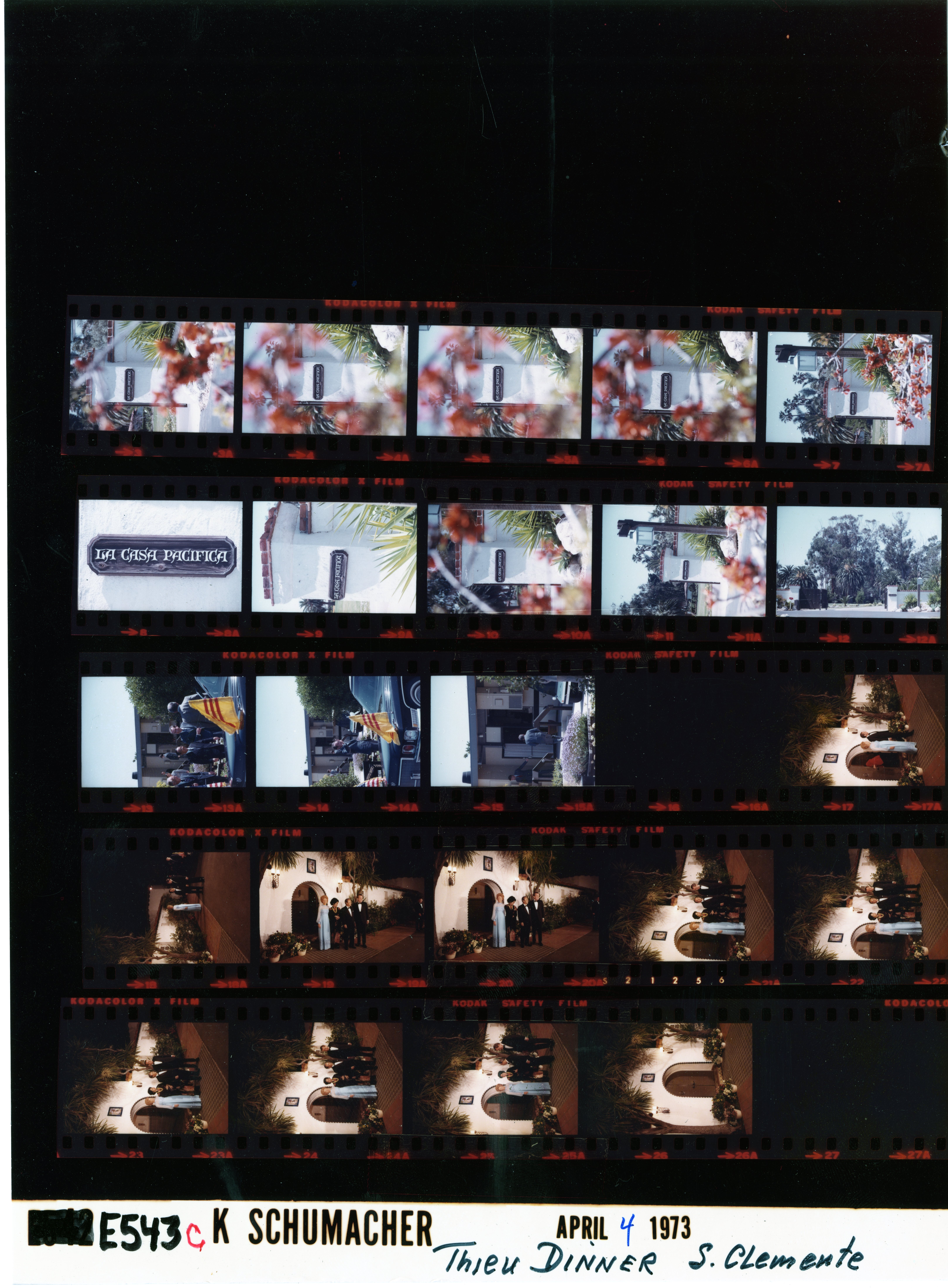 - Frame(s): WHPO-E0546-02-04, The Nixons and President of the Republic of Vietnam Nguyen Van Thieu and Mrs. Van Thieu before attending a dinner at La Casa Pacifica honoring Thieu. 4/2/1973, San Clemente, California Western White House exterior, La Casa Pacifica. President Nixon, President of the Republic of Vietnam Nguyen Van Thieu, Mrs. Thieu, Pat Nixon.