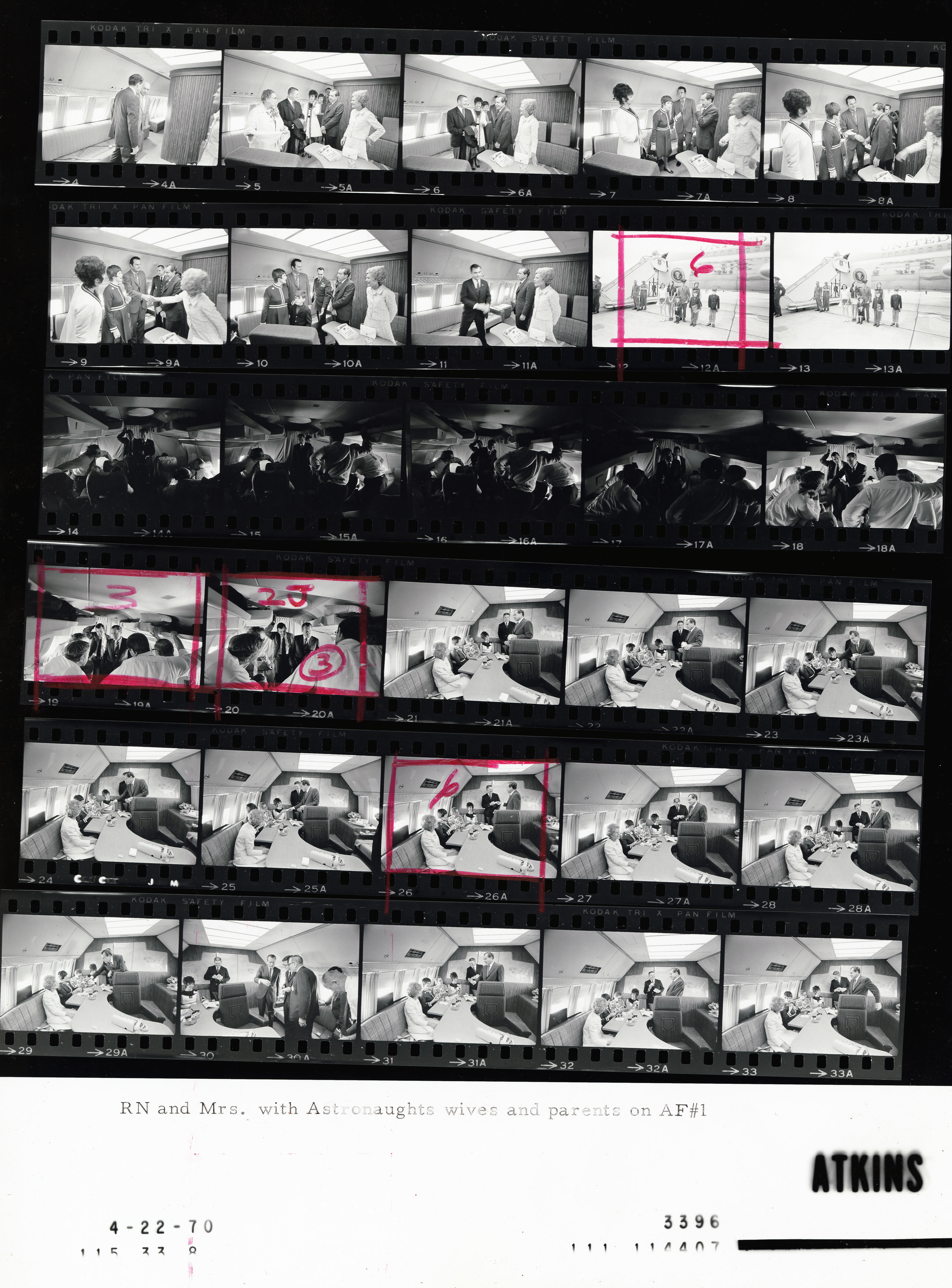 - Frame(s): WHPO-3396-04A-33A, President Nixon and Pat Nixon with the wives and parents of astronauts aboard Air Force One. 4/22/1970, in air Air Force One (AF1). President Nixon, Pat Nixon.