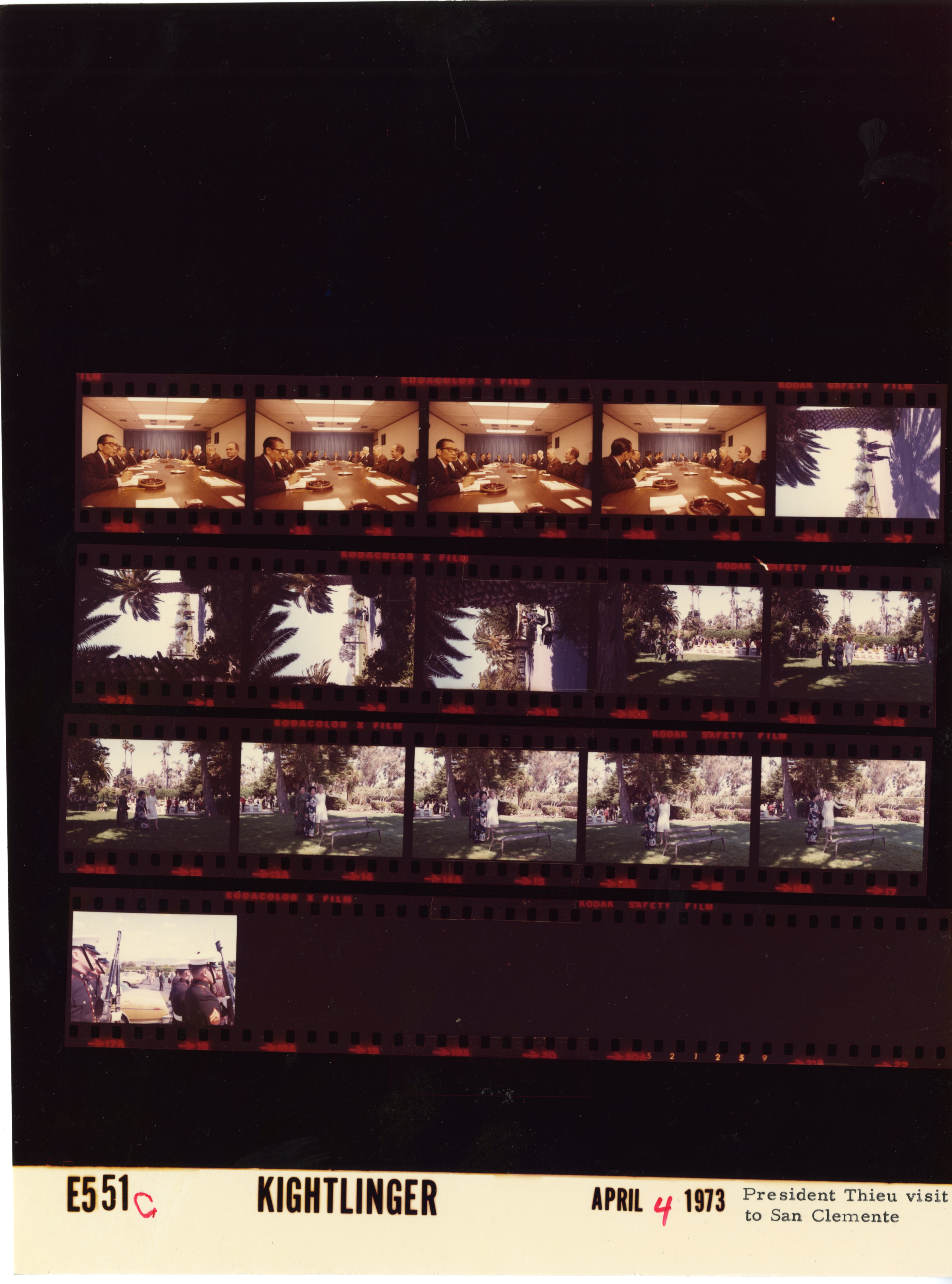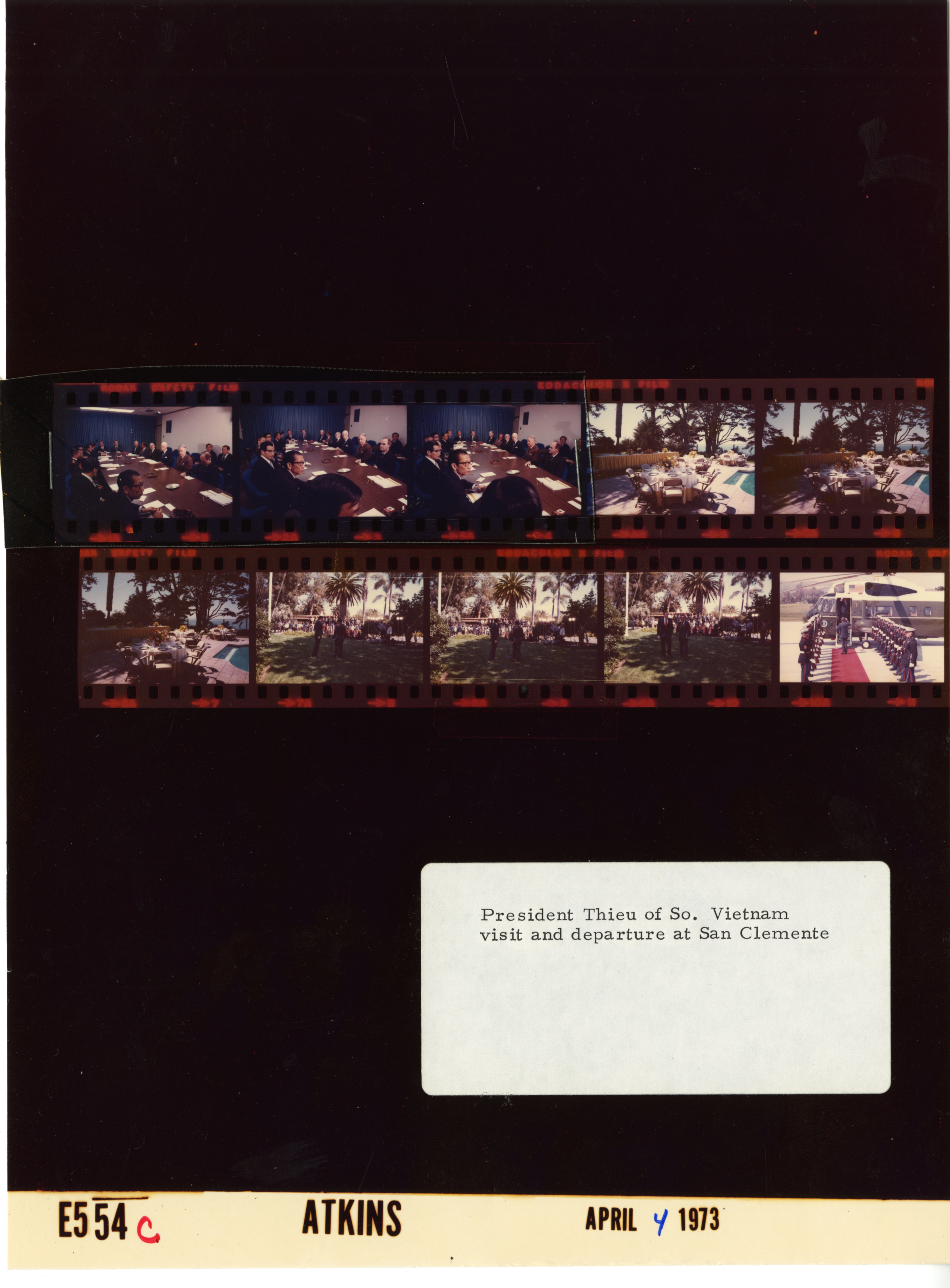 - Frame(s): WHPO-E0550-25-36A, President Nixon escorts departing President of the Republic of Vietnam Nguyen Van Thieu. 4/3/1973, San Clemente, California helipad, Western White House, La Casa Pacifica. President Nixon, President of the Republic of Vietnam Nguyen Van Thieu, Marine honor guard.