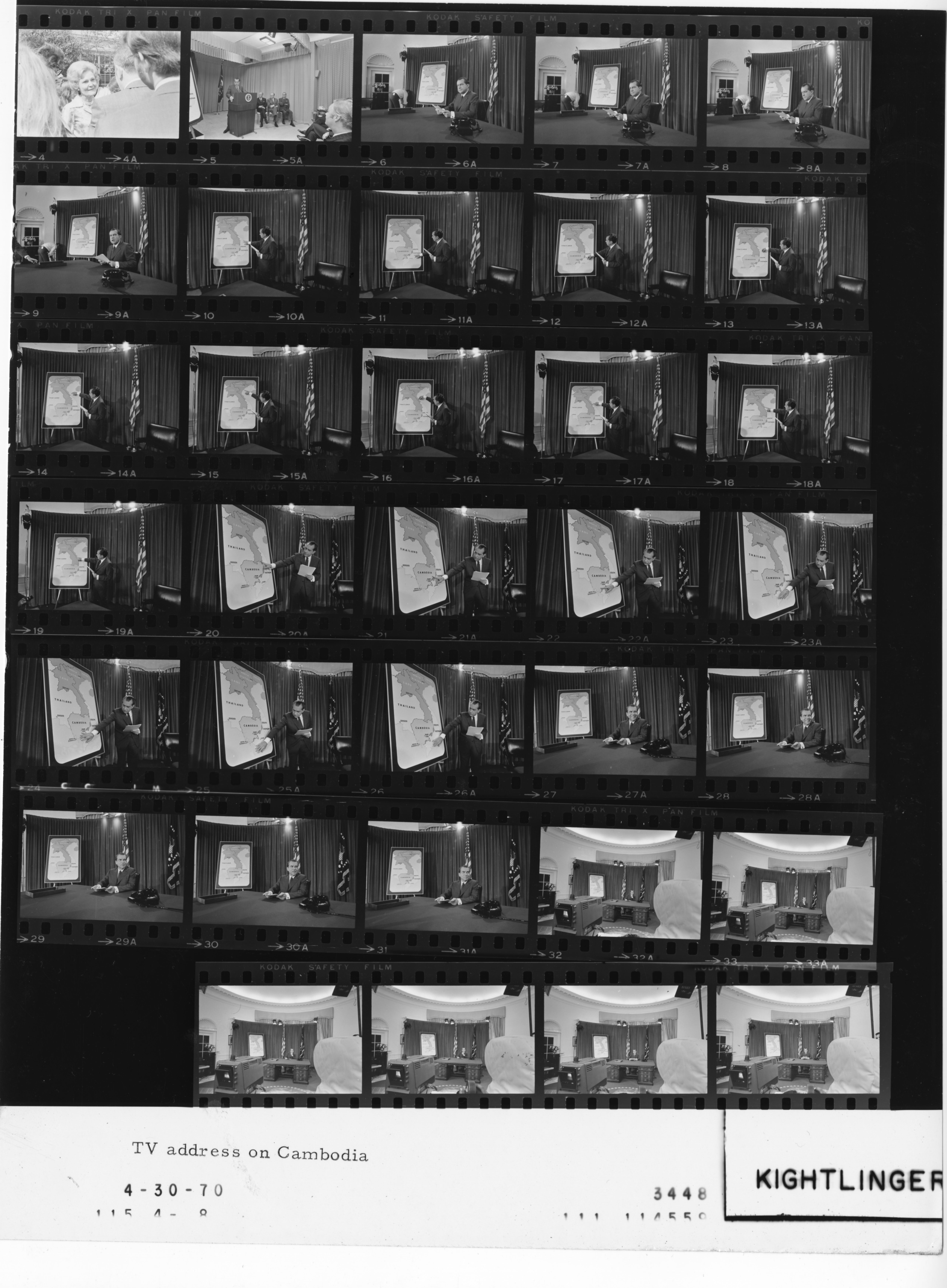 - Frame(s): WHPO-3447-21A, President Nixon seated near a map of Cambodia while delivering a televised address to the Nation on American involvement in Cambodia. 4/30/1970, Washington, D.C. White House, Oval Office. President Nixon.