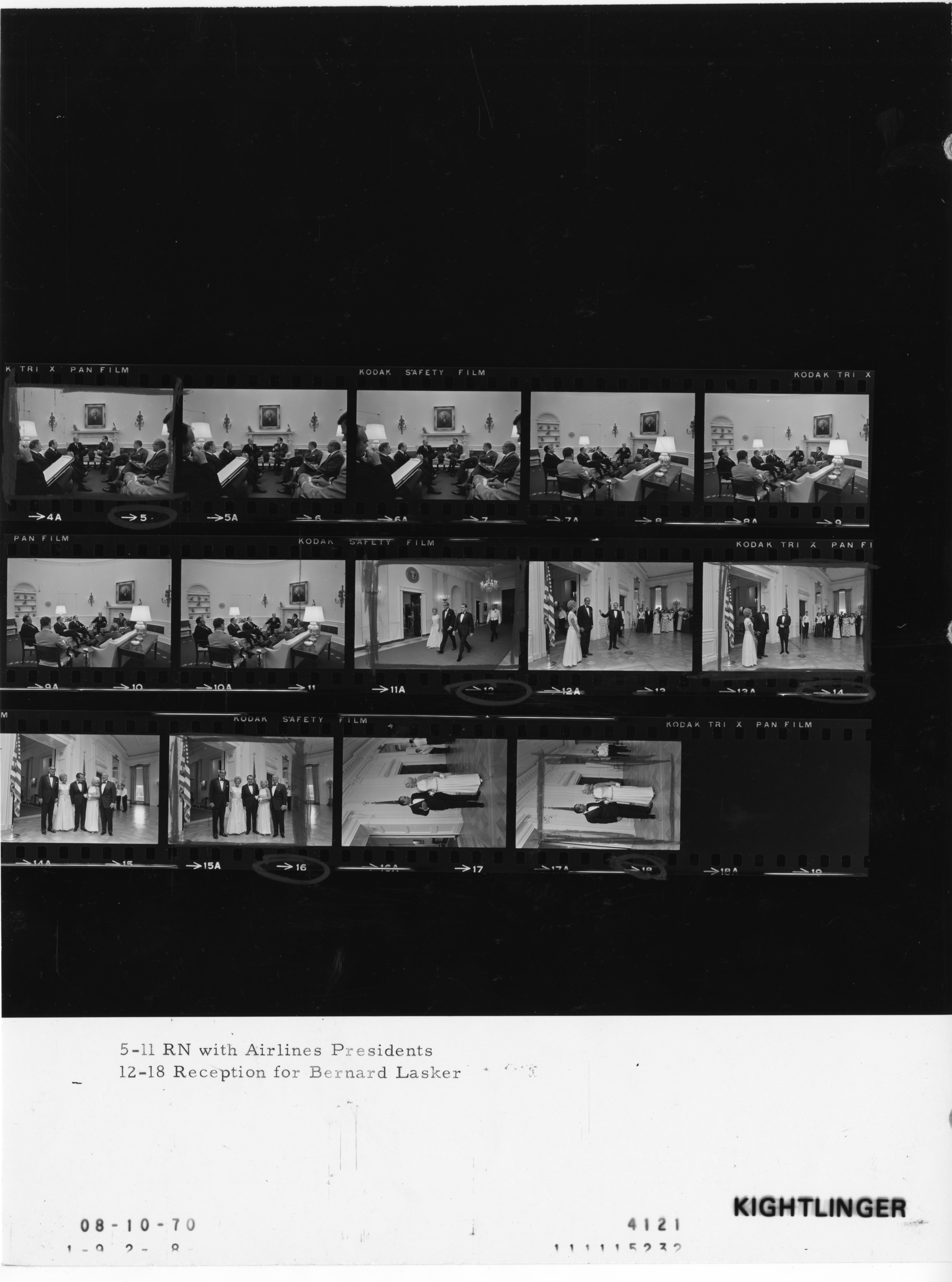 - Frame(s): WHPO-4121-11A-17A, President Nixon hosting a birthday reception for Bernard J. Lasker. 8/10/1970, Washington, D.C. White House, East Room. President Nixon, Pat Nixon, Bernard J. Lasker, Chairman, Board of Governors, New York Stock Exchange and others.