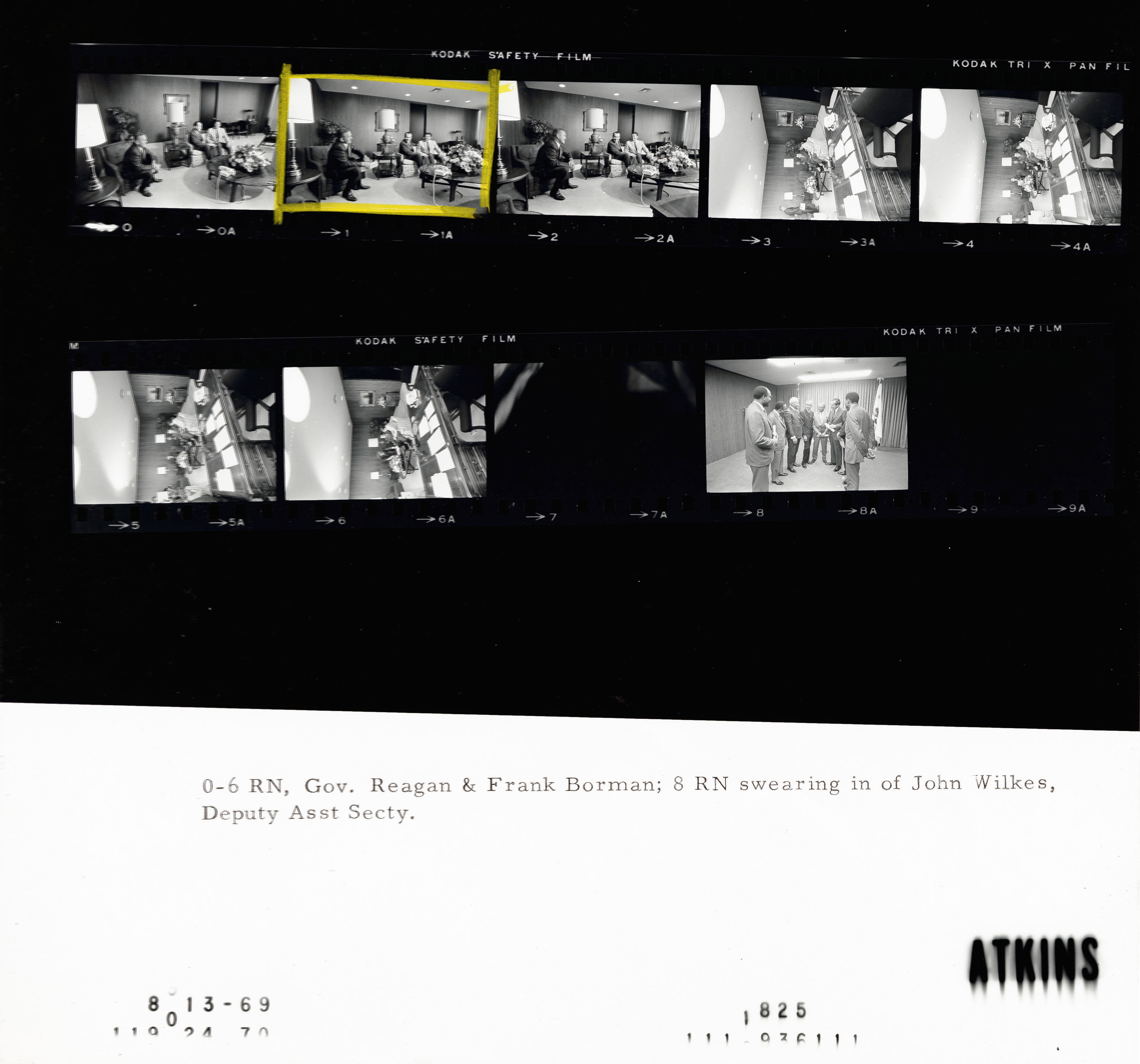 - Frame(s): WHPO-1825-00-06, President Nixon seated during a meeting with California Governor Ronald Reagan and astronaut Frank Borman at Western White House, La Casa Pacifica.San Clemente. 8/13/1969, San Clemente, California Nixon's office, Western White House. President Nixon, Ronald Reagan, Frank Borman.