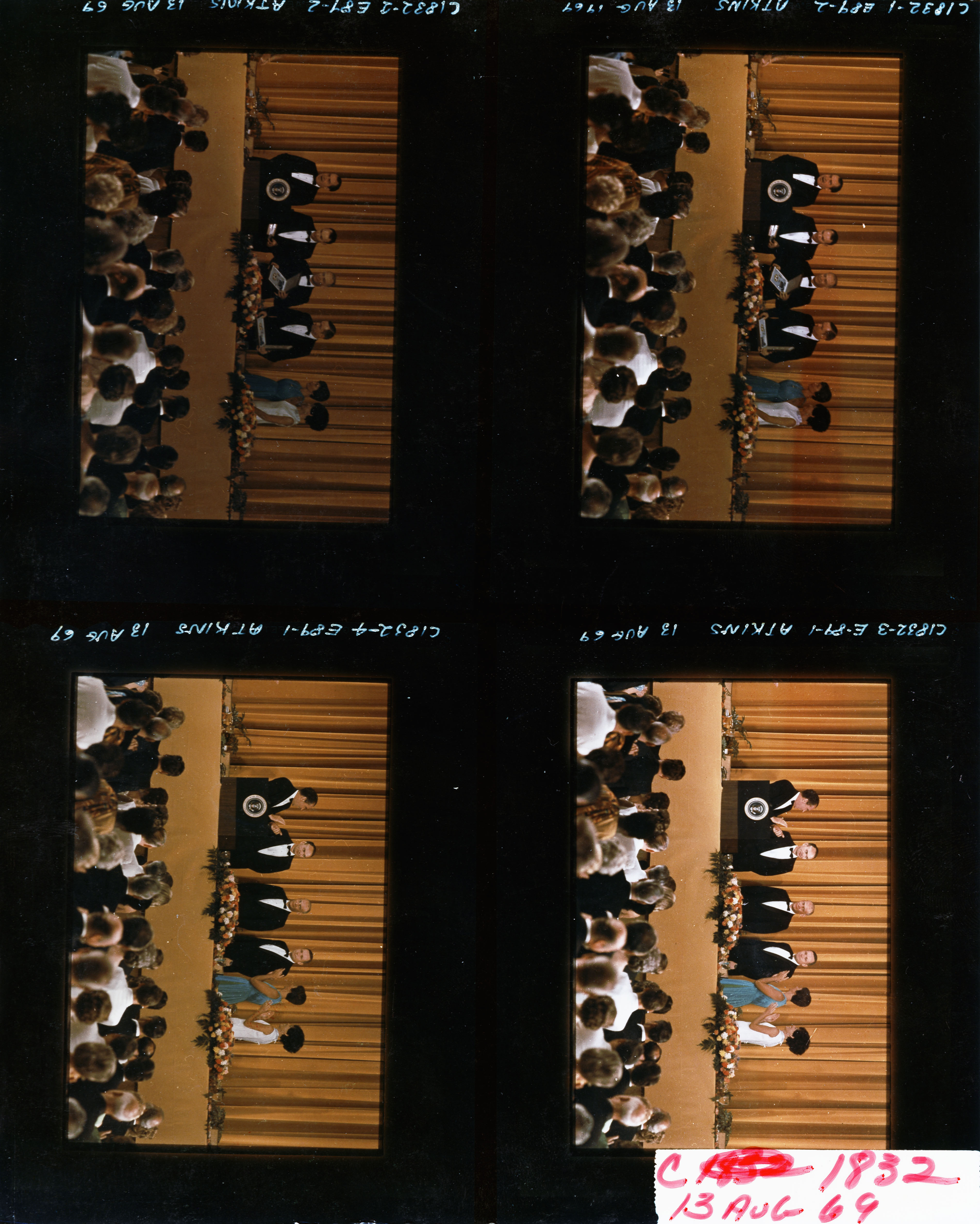 - Frame(s): WHPO-1829-01-13, President Nixon, Pat Nixon, Vice President Agnew and Mrs. Judy Agnew at State Dinner honoring the Apollo 11 astronauts to award Presidential Medals of Freedom. 8/13/1969, Los Angeles, California Century Plaza Hotel. President Nixon, Pat Nixon, Spiro Agnew, Judy Agnew, Edwin "Buzz" Aldrin, Mrs. Aldrin, Michael Collins, Mrs. Collins, Neil Armstrong, Mrs. Armstrong, unidentified guests.