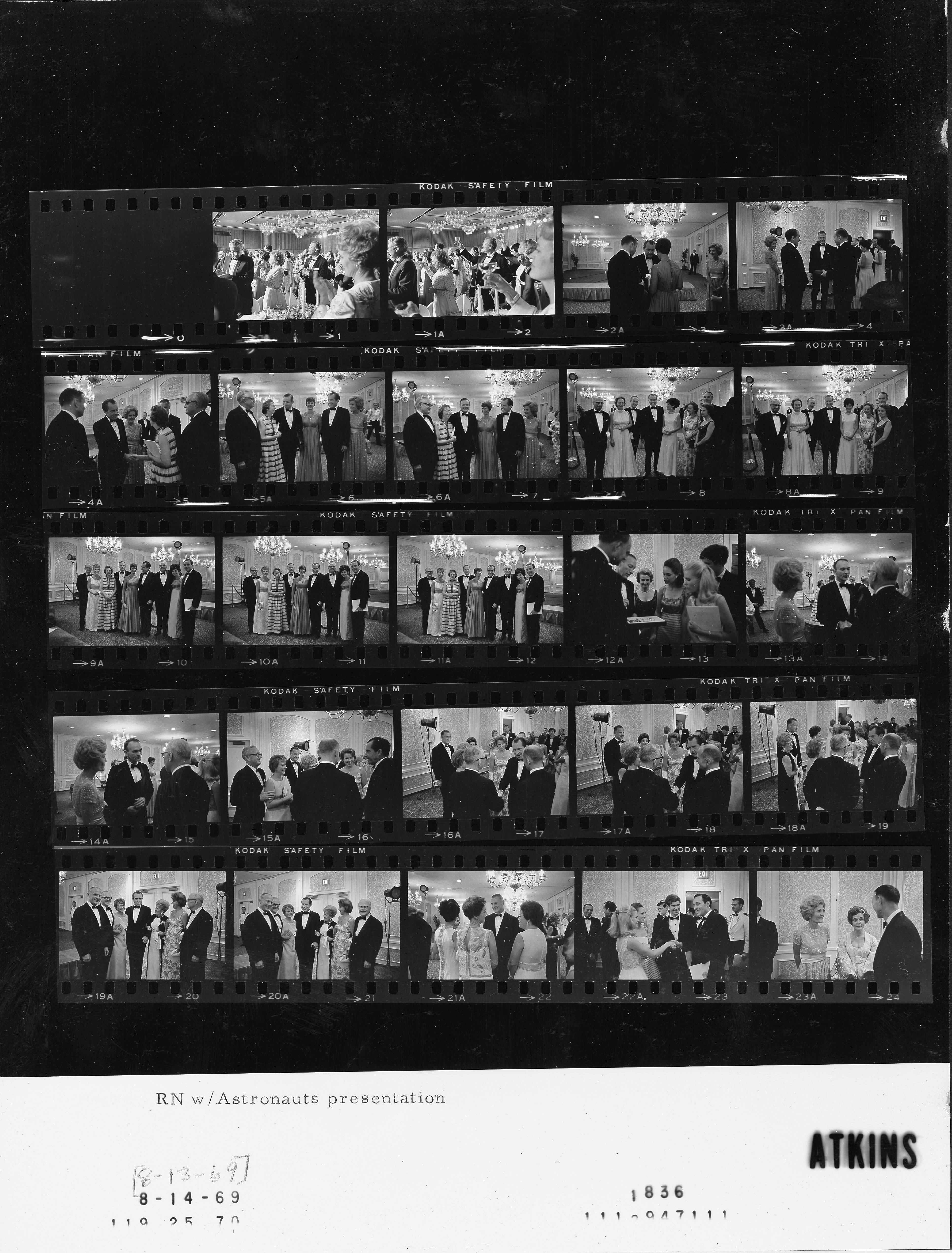 - Frame(s): WHPO-1829-28-30, Pat Nixon and Judy Agnew with the wives of the Apollo 11 astronauts, at State Dinner honoring the astronauts with Presidential Medals of Freedom. 8/13/1969, Los Angeles, California Century Plaza Hotel. President Nixon, Pat Nixon, Spiro Agnew, Judy Agnew, Edwin "Buzz" Aldrin, Mrs. Aldrin, Michael Collins, Mrs. Collins, Neil Armstrong, Mrs. Armstrong, unidentified guests.