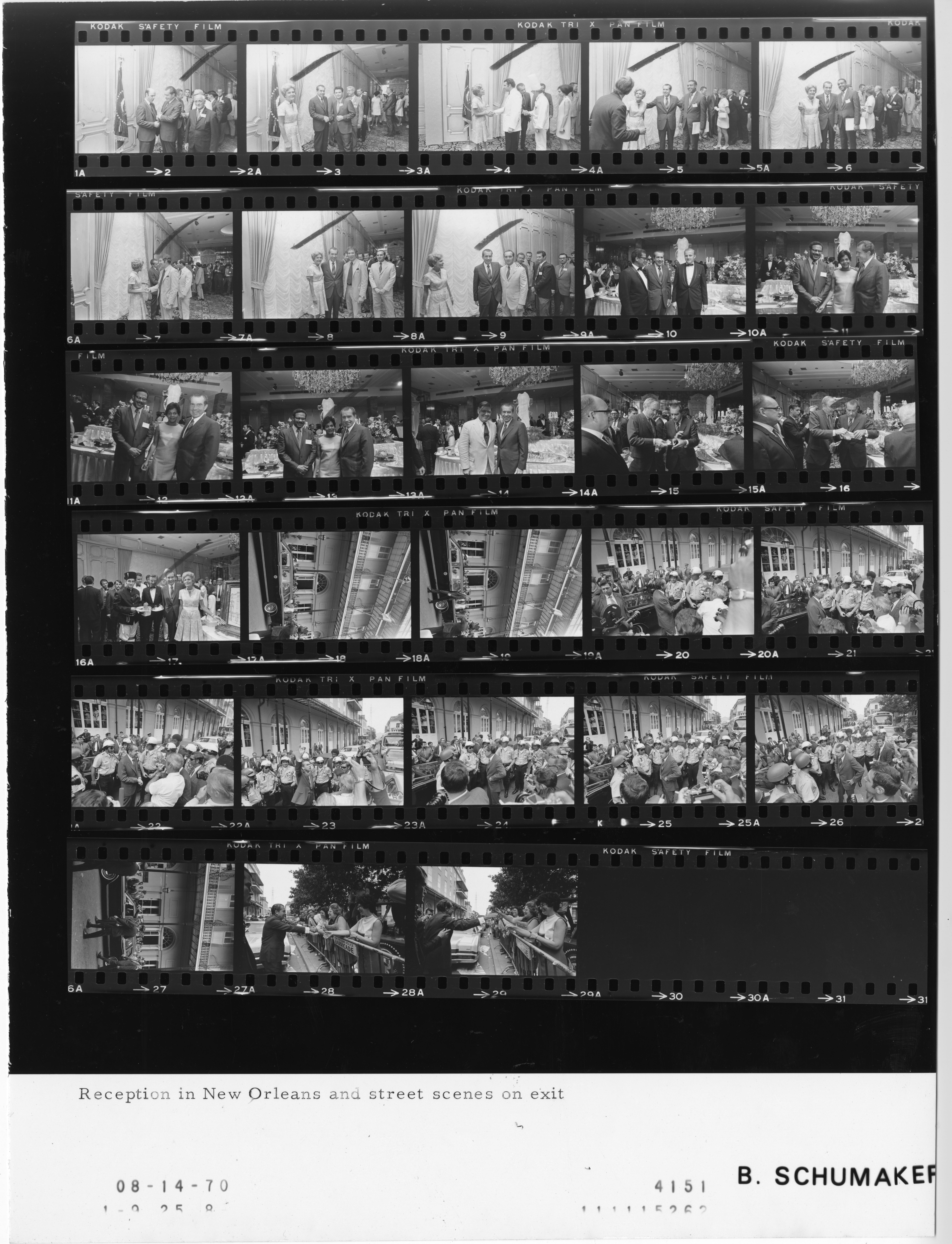 - Frame(s): WHPO-4151-02-29, President Nixon hosting a reception for Louisiana and Southern Regional members of the Press. 8/14/1970, New Orleans, Louisiana Royal Orleans Hotel, East Salon. President Nixon, Pat Nixon, members of the Louisiana and Southern Regional Press.