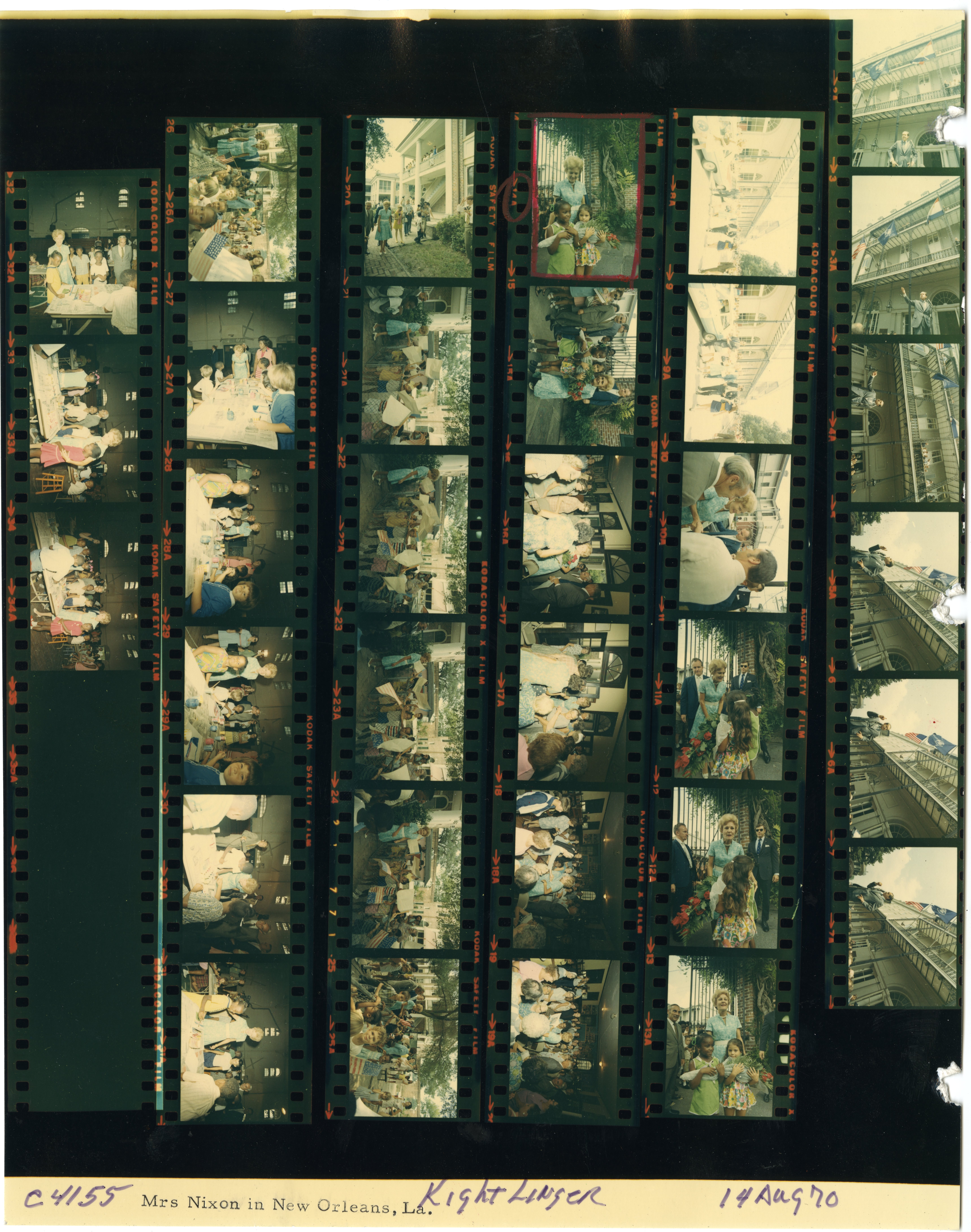 - Frame(s): WHPO-4157-06A-17A, Pat Nixon visiting an unidentified church. 8/14/1970, New Orleans, Louisiana church. Pat Nixon and others.