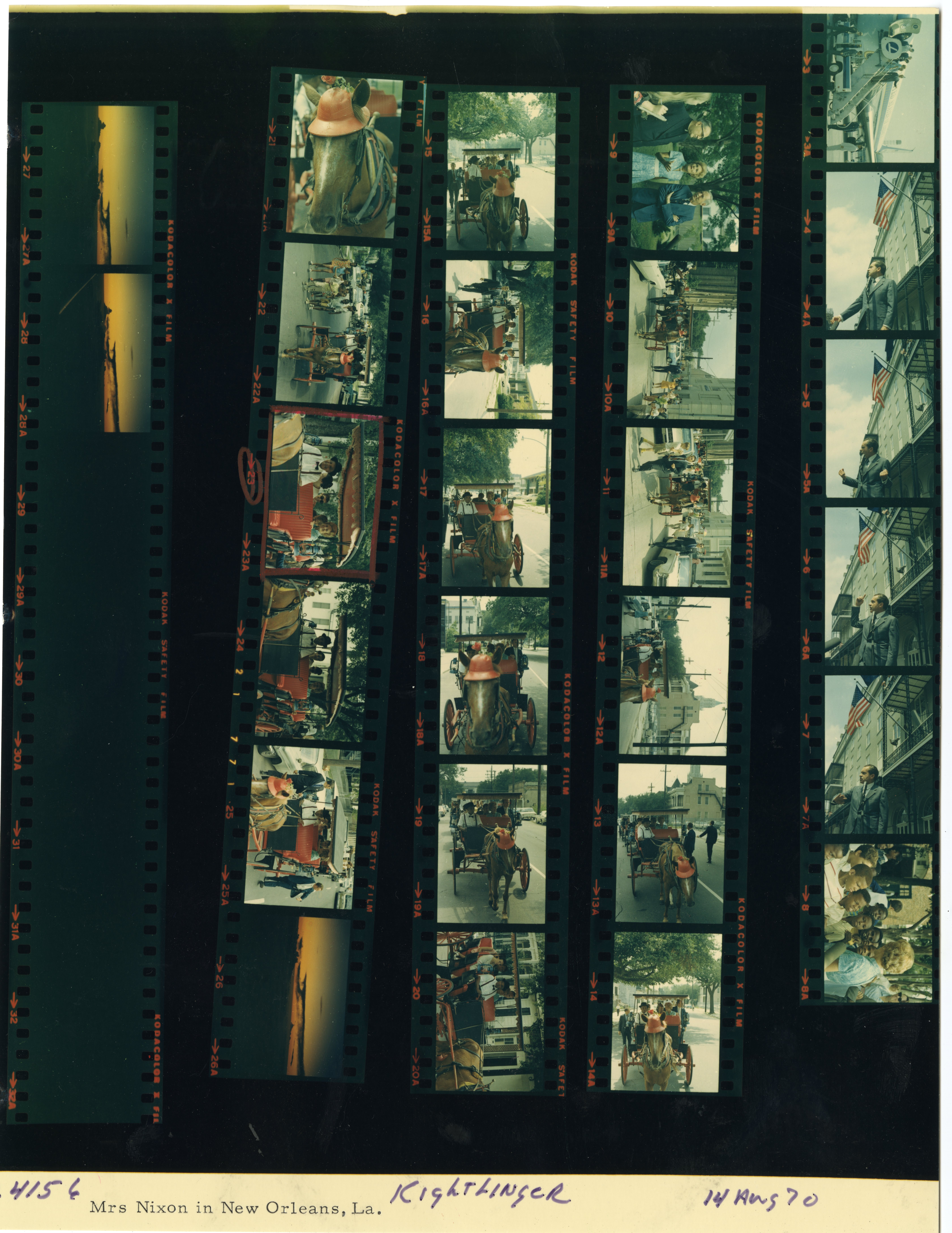 - Frame(s): WHPO-4156-10-25, Pat Nixon riding in a horse-drawn carriage. 8/14/1970, New Orleans, Louisiana streets. Pat Nixon, others.