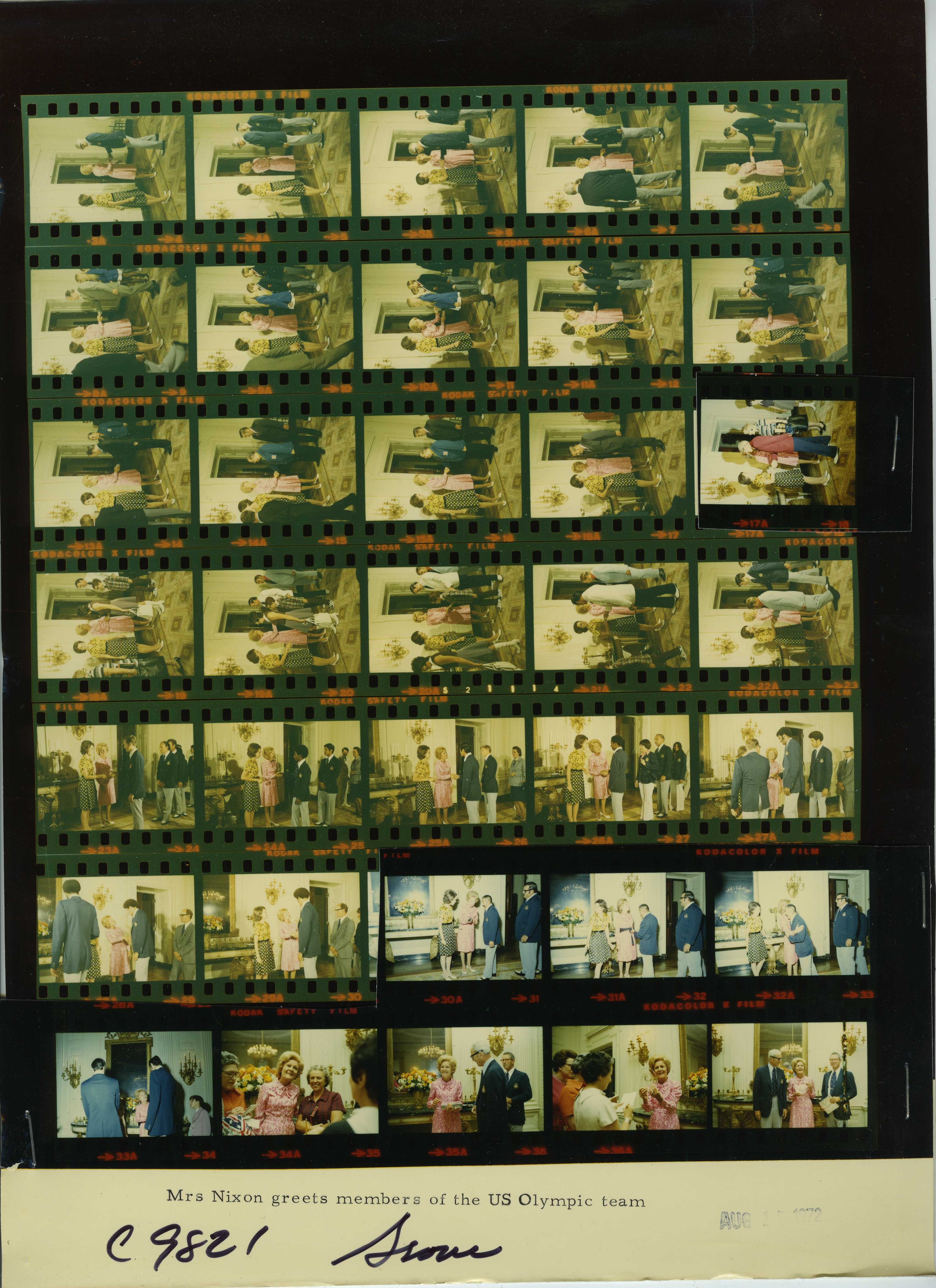 - Frame(s): WHPO-9821-, Pat Nixon and Julie Eisenhower greeting members of the U.S. Olympic teams, and their families. Basketball team members greeting Pat Nixon. 8/17/1972, Washington, D.C. White House, State Dining Room. Pat Nixon, Julie Eisenhower, Olympic team members, family members.