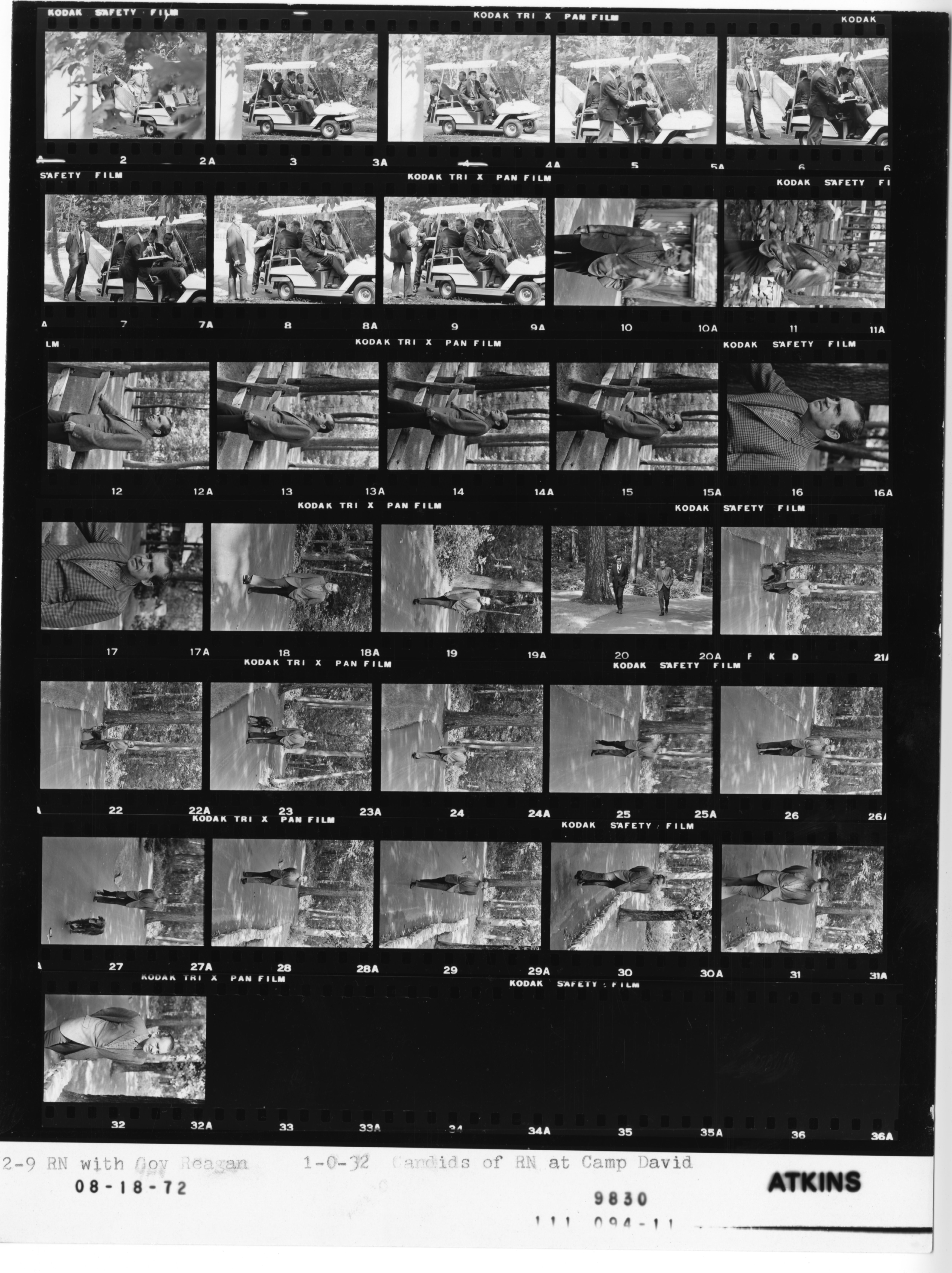 - Frame(s): WHPO-9830-02-09, President Nixon and Reagan on a golf cart with Haig and Meese. 8/18/1972, Camp David, Maryland grounds. President Nixon, Reagan, Edwin Meese, Haig, Ziegler, aides.