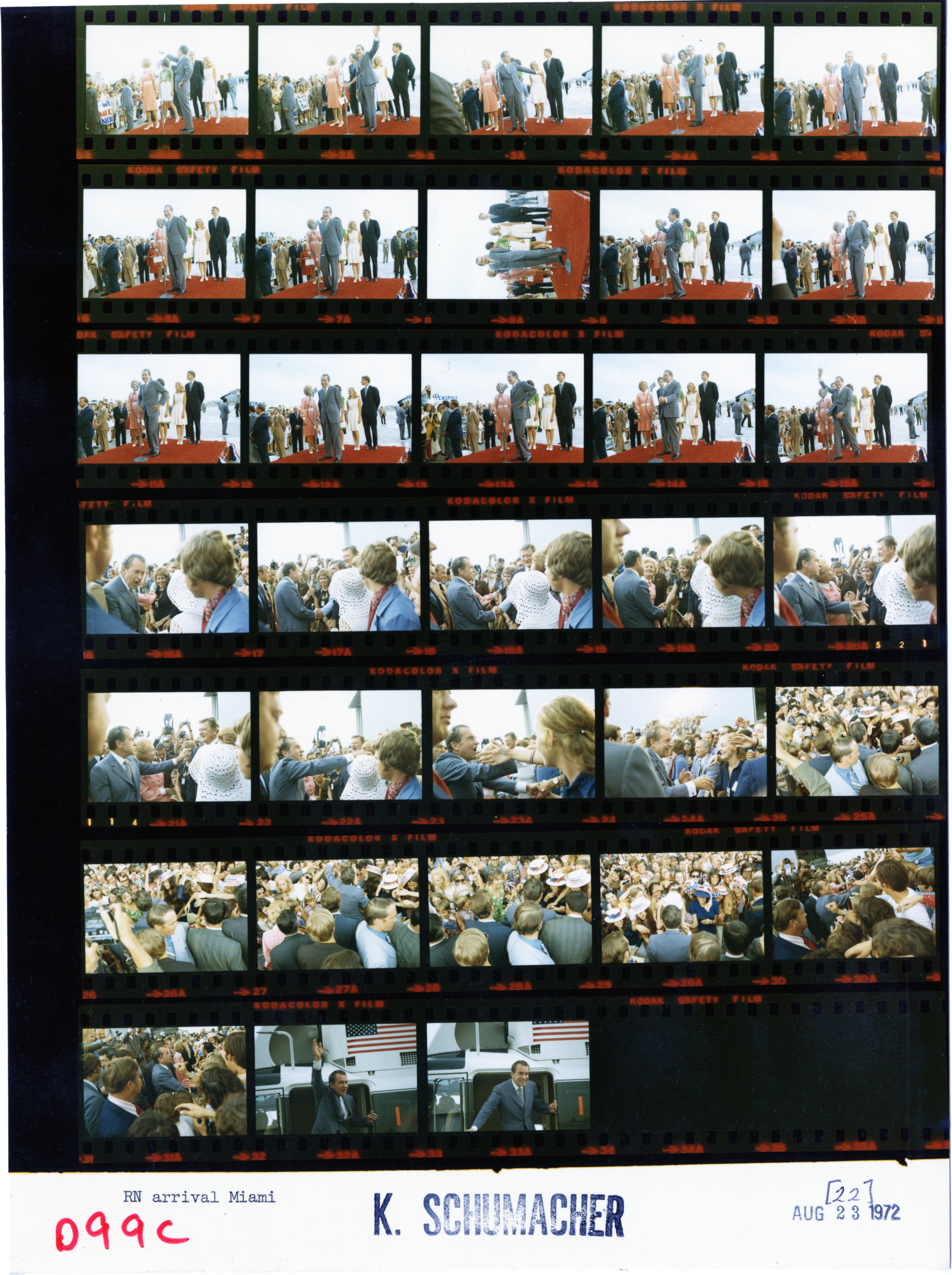 - Frame(s): WHPO-D0064-, President Nixon greeting supporters, speaking to and greeting people in the waiting crowd, upon his arrival. 8/22/1972, Miami, Florida airport. President Nixon, crowd.