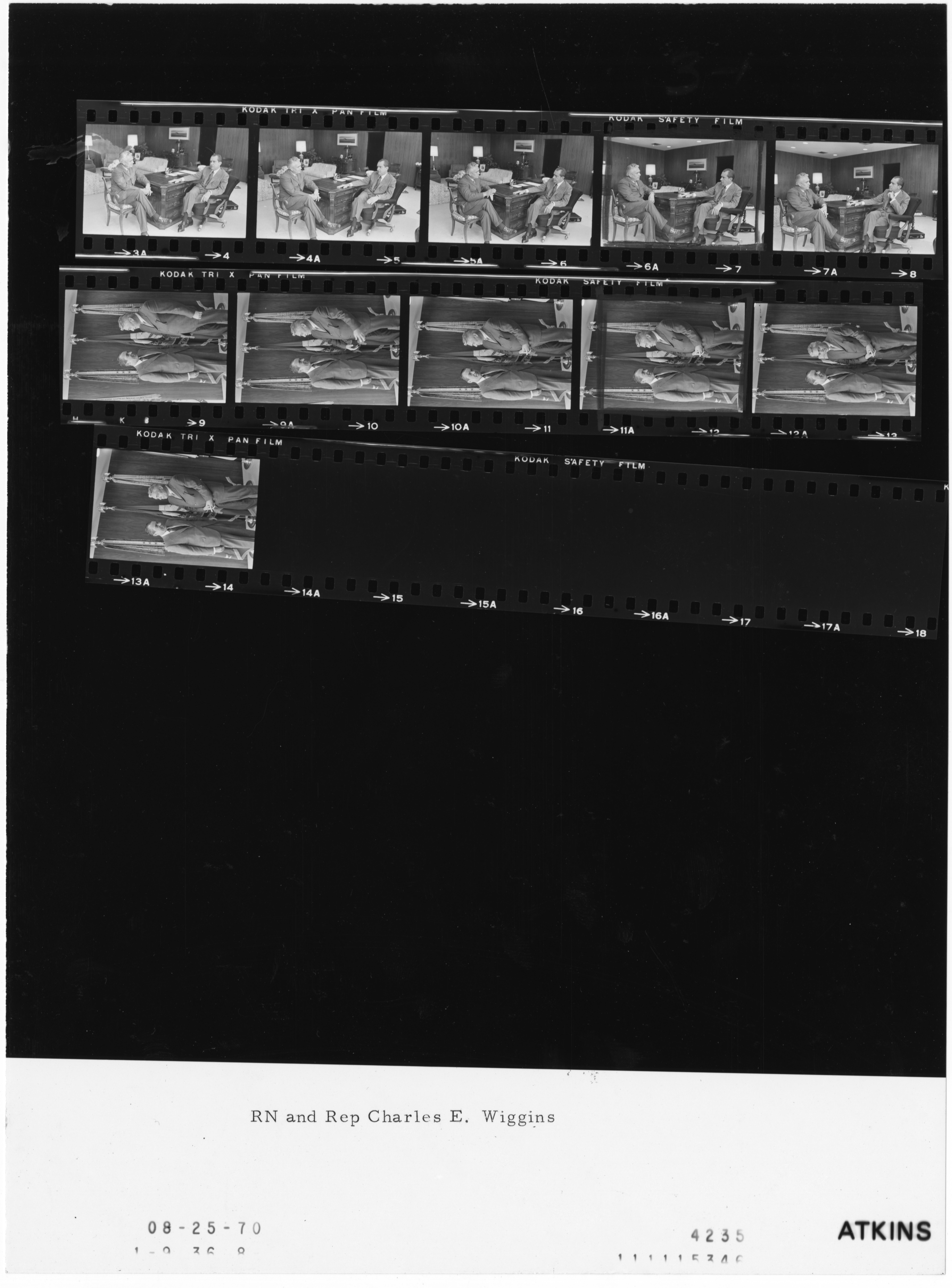 - Frame(s): WHPO-4235-03A-13A, President Nixon meeting with Representative Charles Wiggins, Republican, California. 8/25/1970, San Clemente, California La Casa Pacifica, Western White House. President Nixon, congressman Charles E. Wiggins.