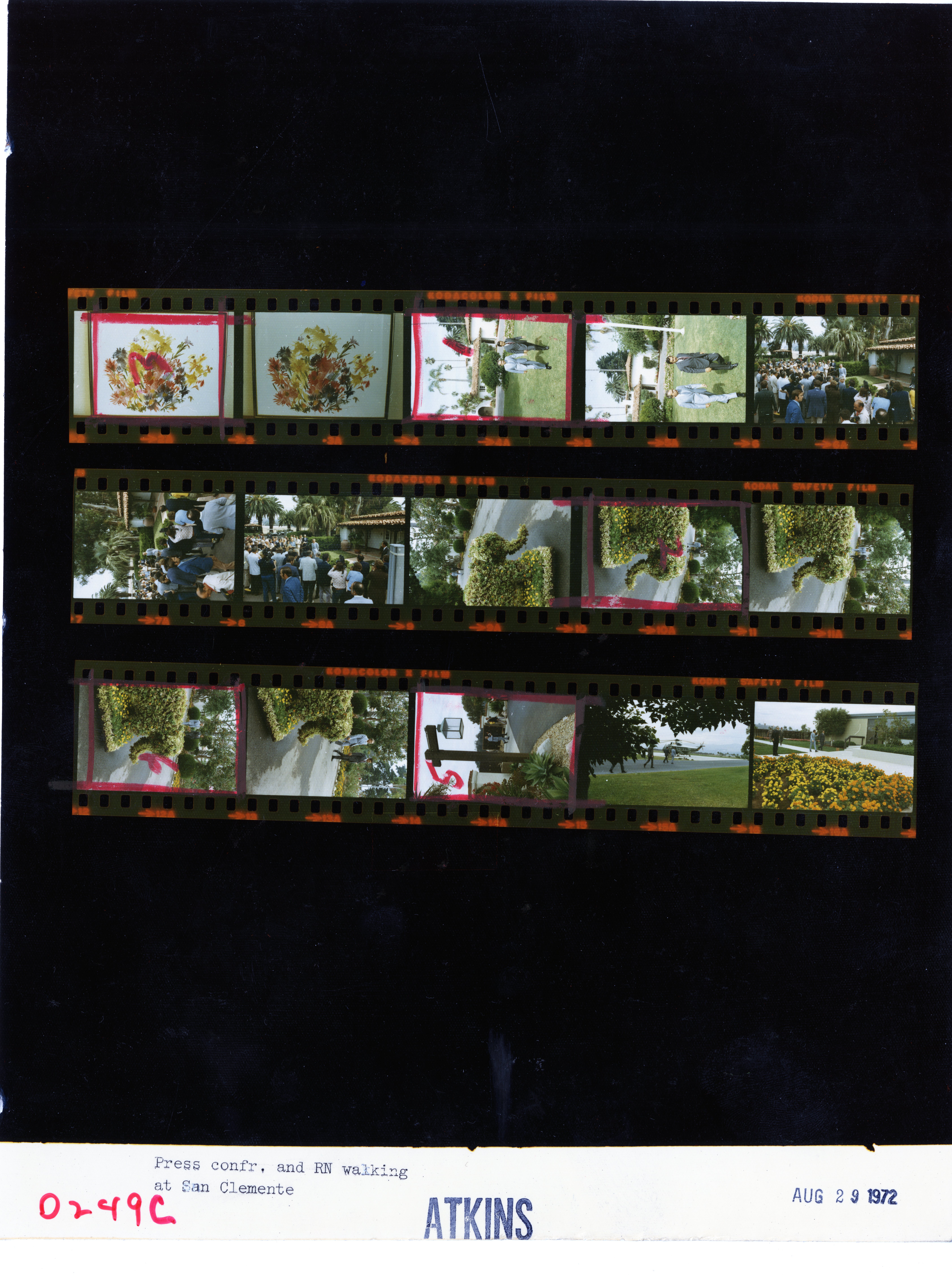 - Frame(s): WHPO-D0255-, President Nixon holding an outdoor press conference and walking the grounds with Ziegler. 8/29/1972, San Clemente, California grounds, San Clemente Compound. President Nixon, Ziegler, press crops members.