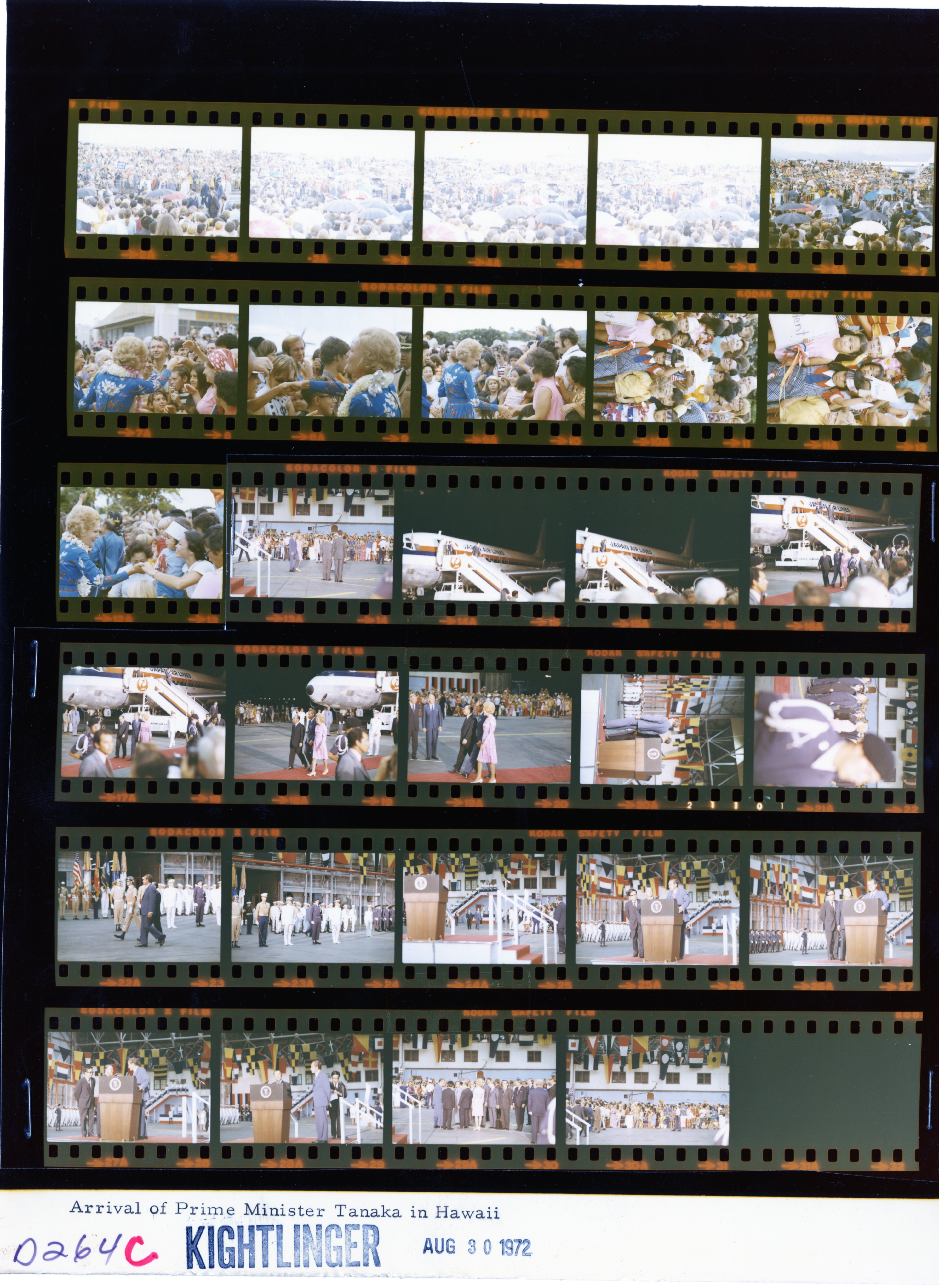 - Frame(s): WHPO-D0271-02A-03A, President Nixon participating in the arrival ceremony for Prime Minister Tanaka. 8/30/1972, Hickam AFB, Hawaii hangar. President Nixon, Kakuei Tanaka, military personnel, band.
