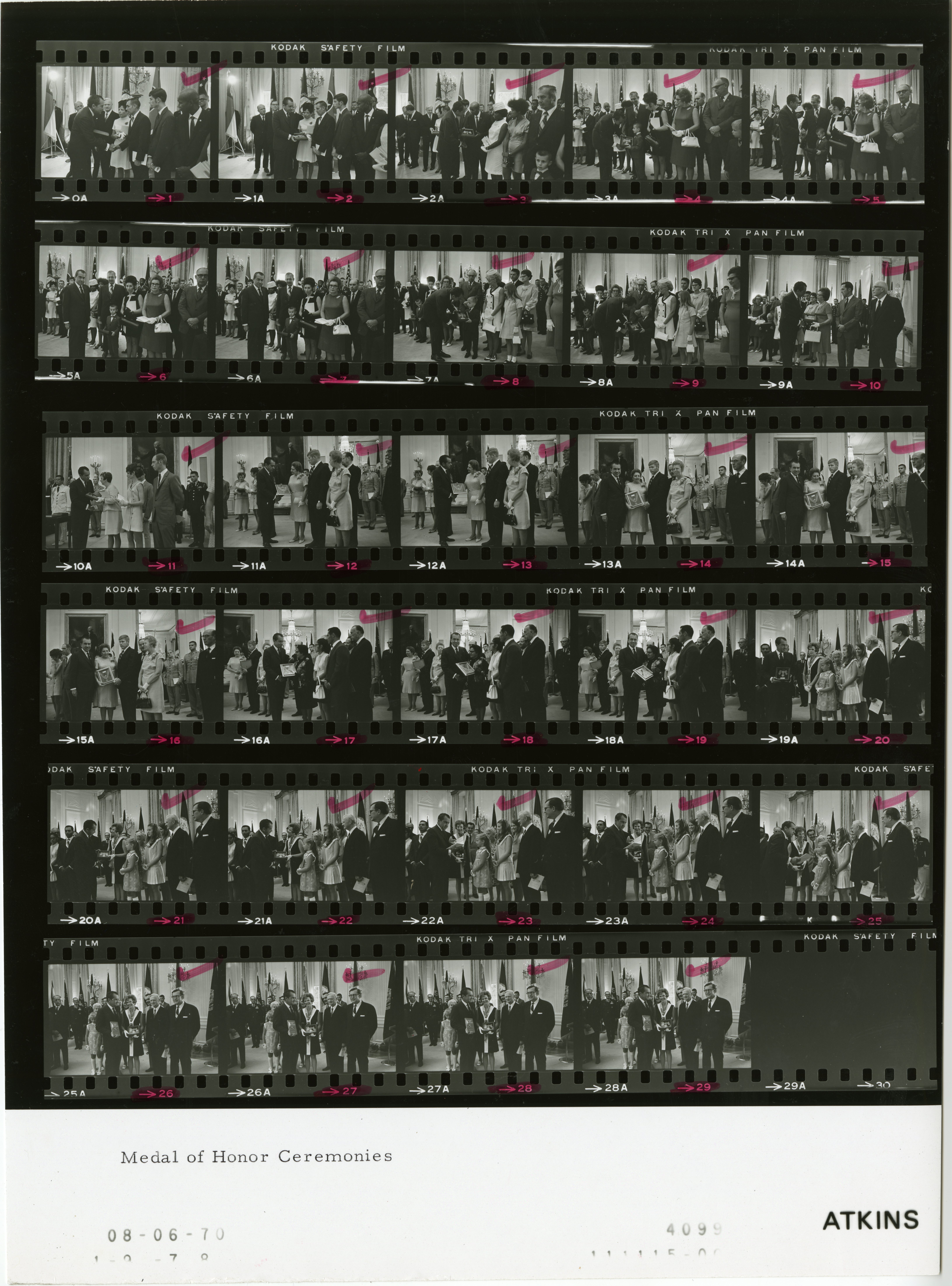 - Frame(s): WHPO-4099-00A-28A, President Nixon participating in the East Room for the posthumous Medal of Honor presentation ceremony. 8/6/1970, Washington, D.C. White House, East Room. President Nixon, family members of Medal of Honor.