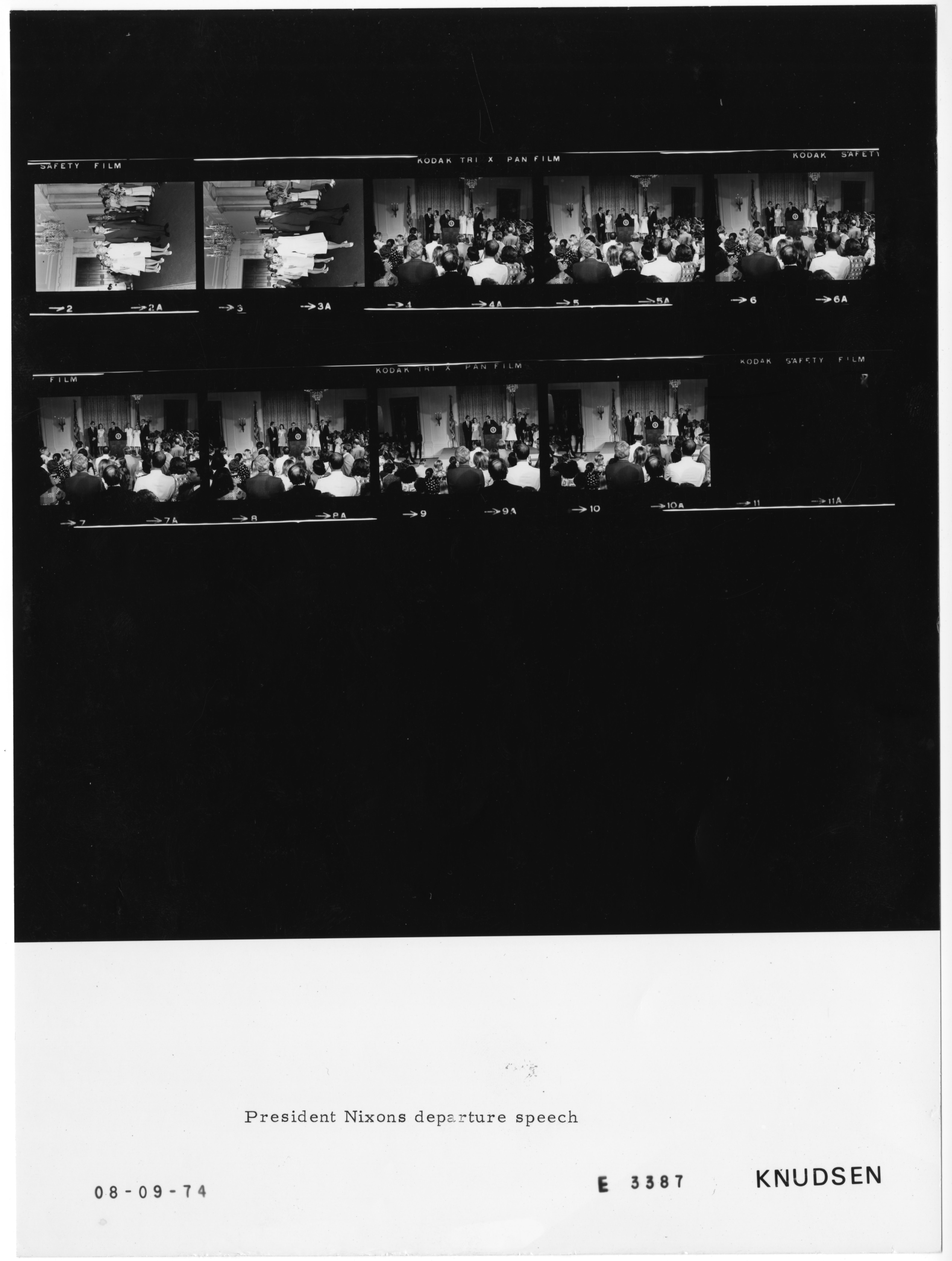 - Frame(s): WHPO-E3388-04-18, President Nixon's farewell speech to staff in the East Room, family members present. 8/9/1974, Washington, D.C. White House, East Room. President Nixon, Pat, Julie, Tricia, Ed Cox, David Eisenhower.