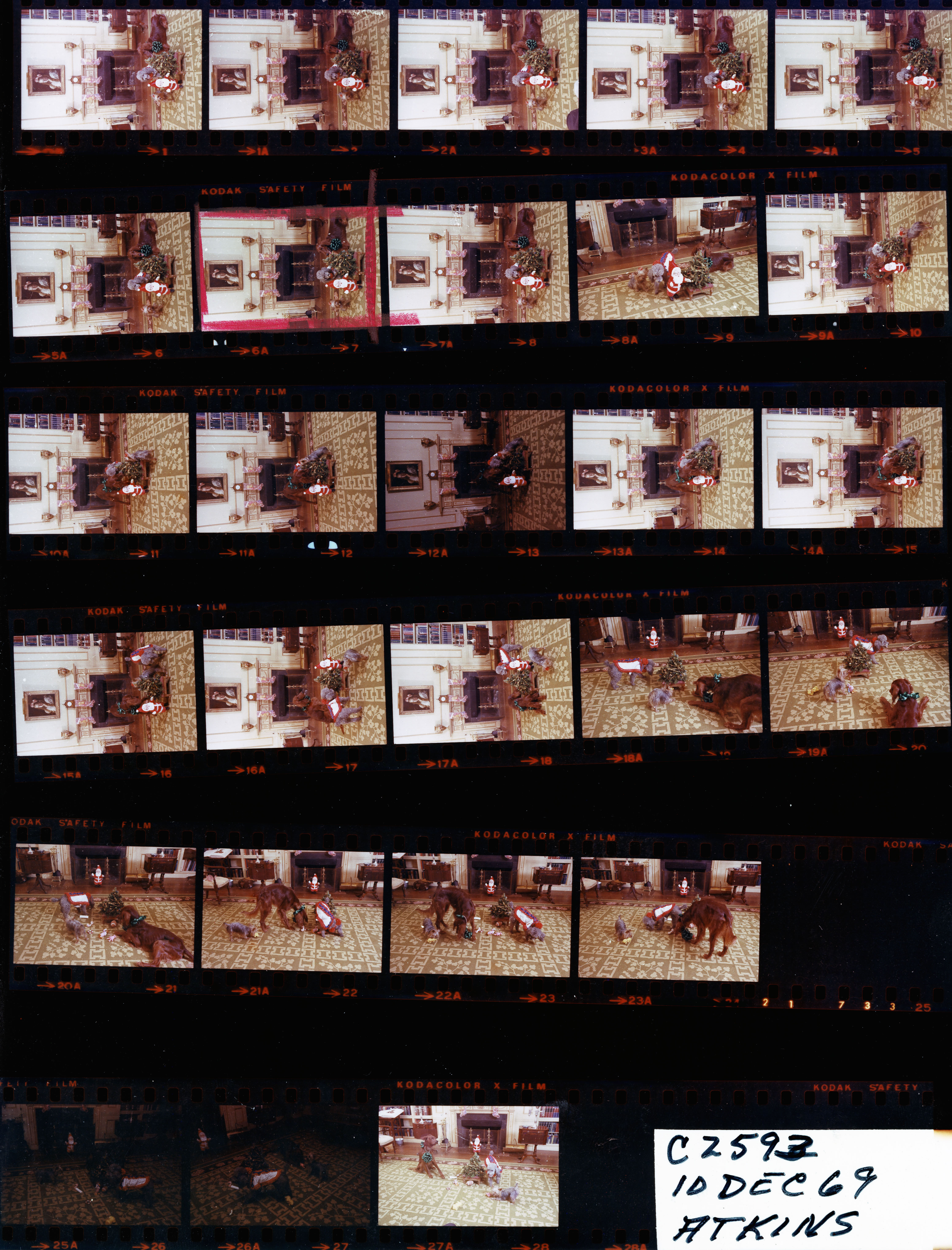 - Frame(s): WHPO-2593-00A-27A, White House dogs Vicki, Pasha and King Timahoe,dressed for Christmas, around a miniature Christmas tree. 12/10/1969, Washington, D.C. White House, Library. Vicki, Pasha and King Timahoe.