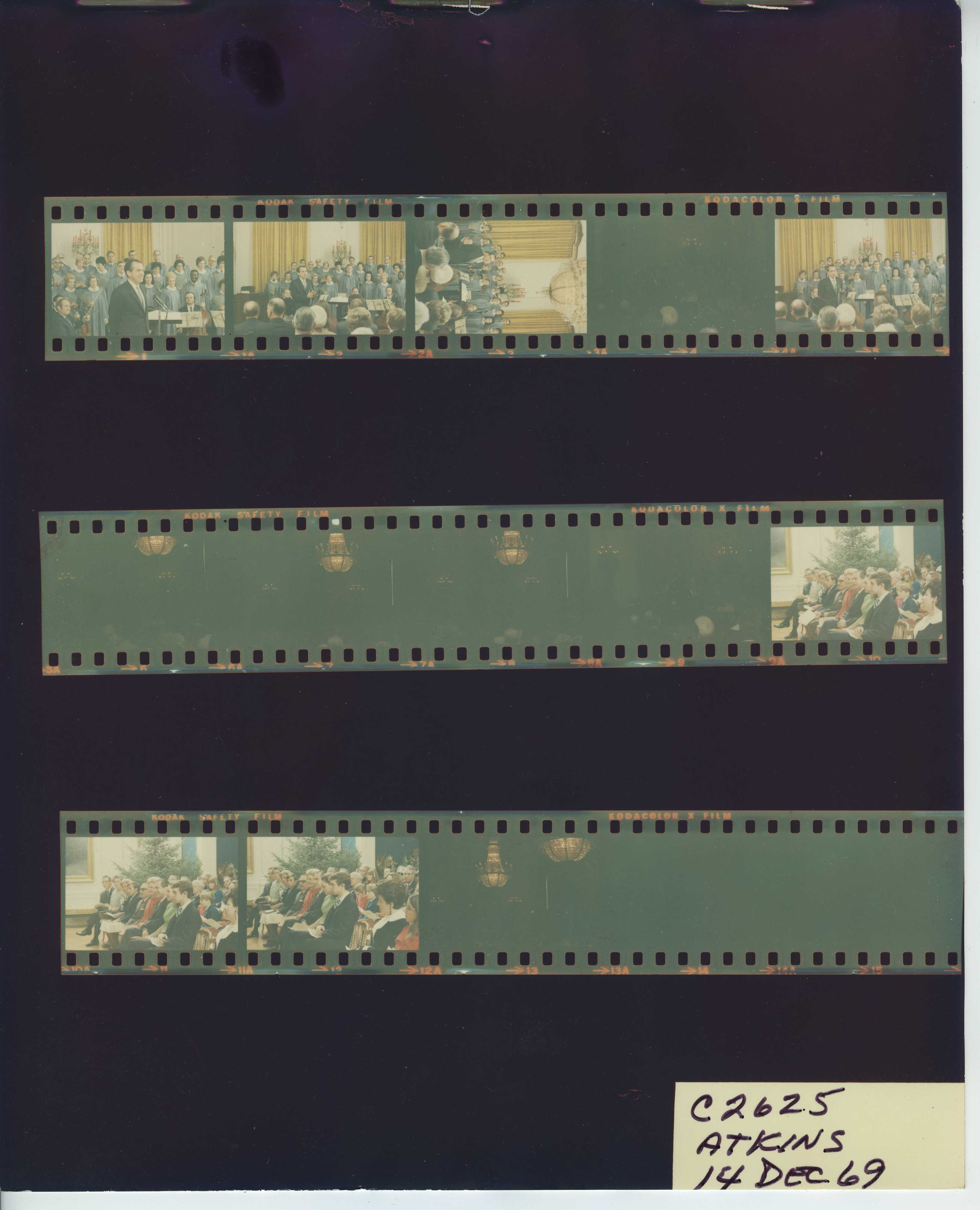- Frame(s): WHPO-2628-12A-13A, After the worship service, guests and choir members standing in front of the Christmas tree. 12/14/1969, Washington, D.C. Grand Hall, White House. President Nixon, Pat Nixon, Choir members, unidentified guests, staff.