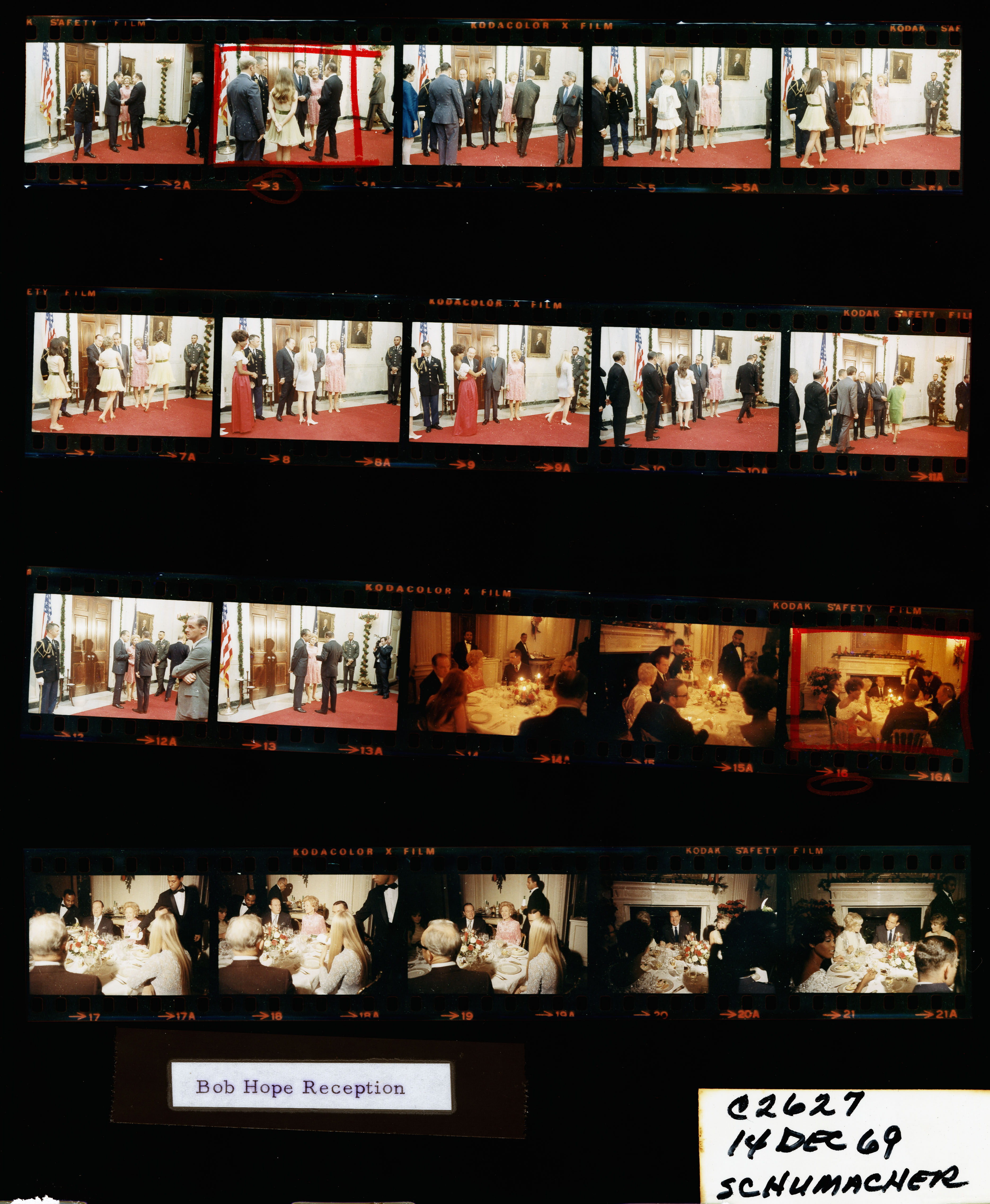 - Frame(s): WHPO-2629-06A-08A, President Nixon, Pat Nixon, and Bob Hope greet guests in a receiving line. 12/14/1969, Washington, D.C. Center Hall, Grand Hall, White House, East Room. President Nixon, Pat Nixon, Bob Hope, Spiro Agnew, Judy Agnew, guests.