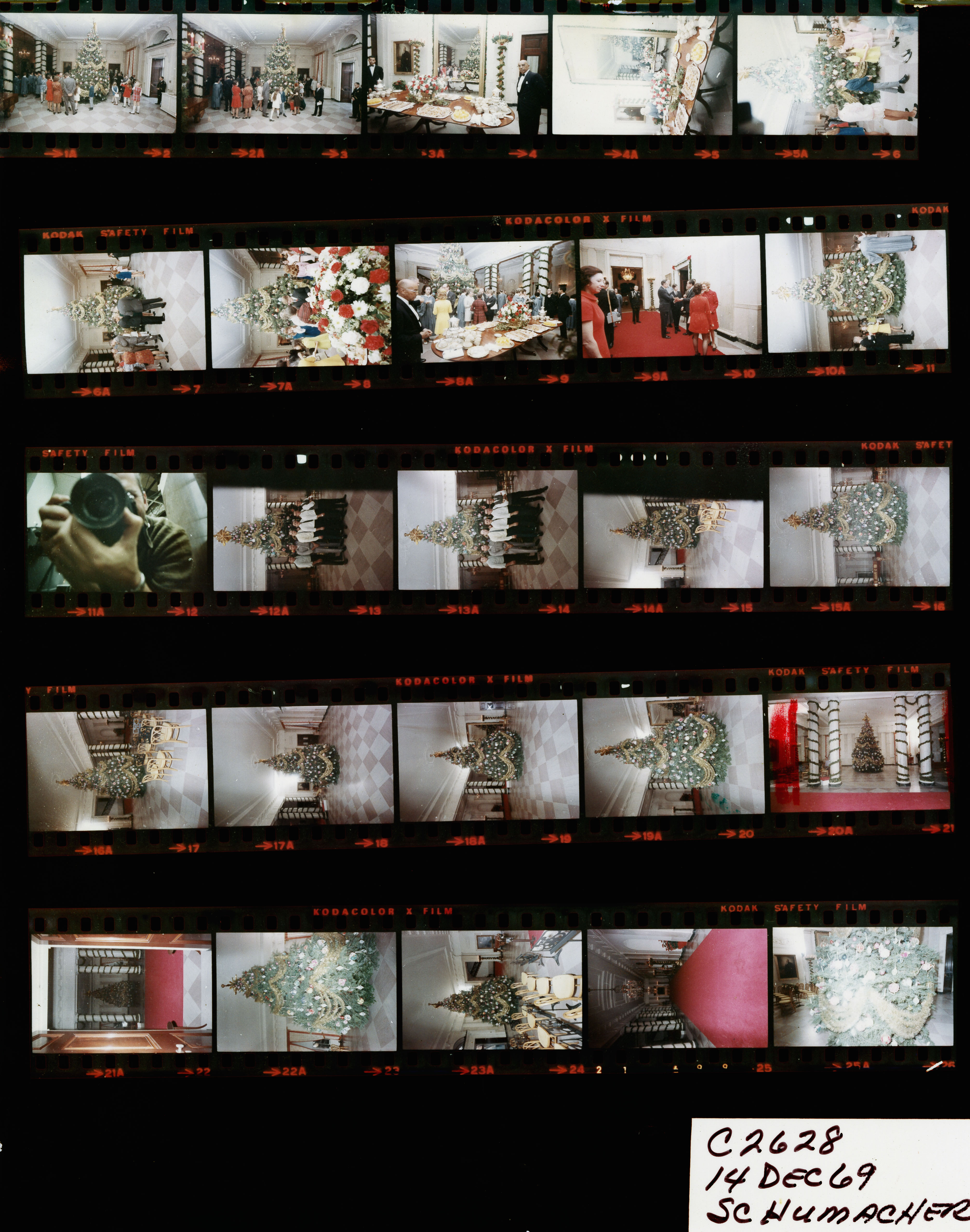 - Frame(s): WHPO-2628-01A-02A, After the White House East Room religious worship service, guests and choir members admire the Christmas tree. 12/14/1969, Washington, D.C. Grand Hall, White House. President Nixon, Pat Nixon, Choir members, unidentified guests, staff.
