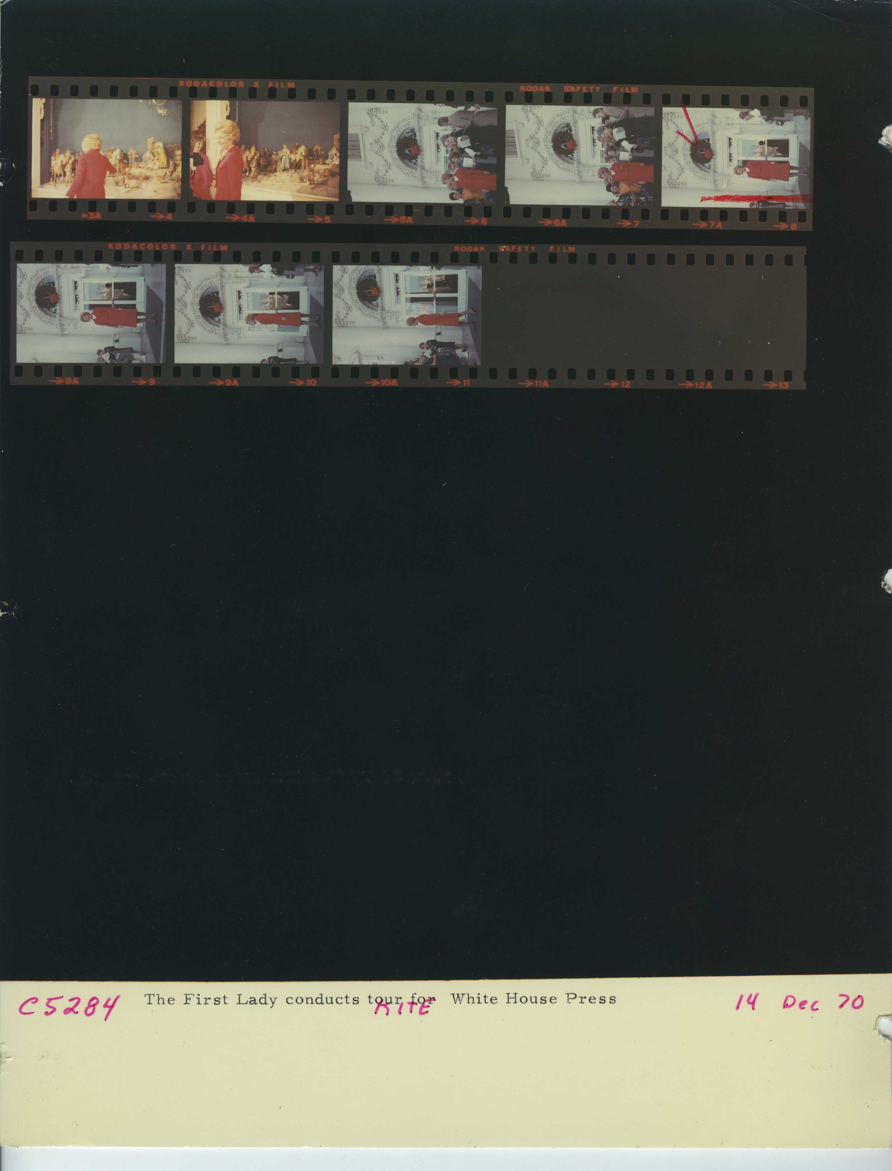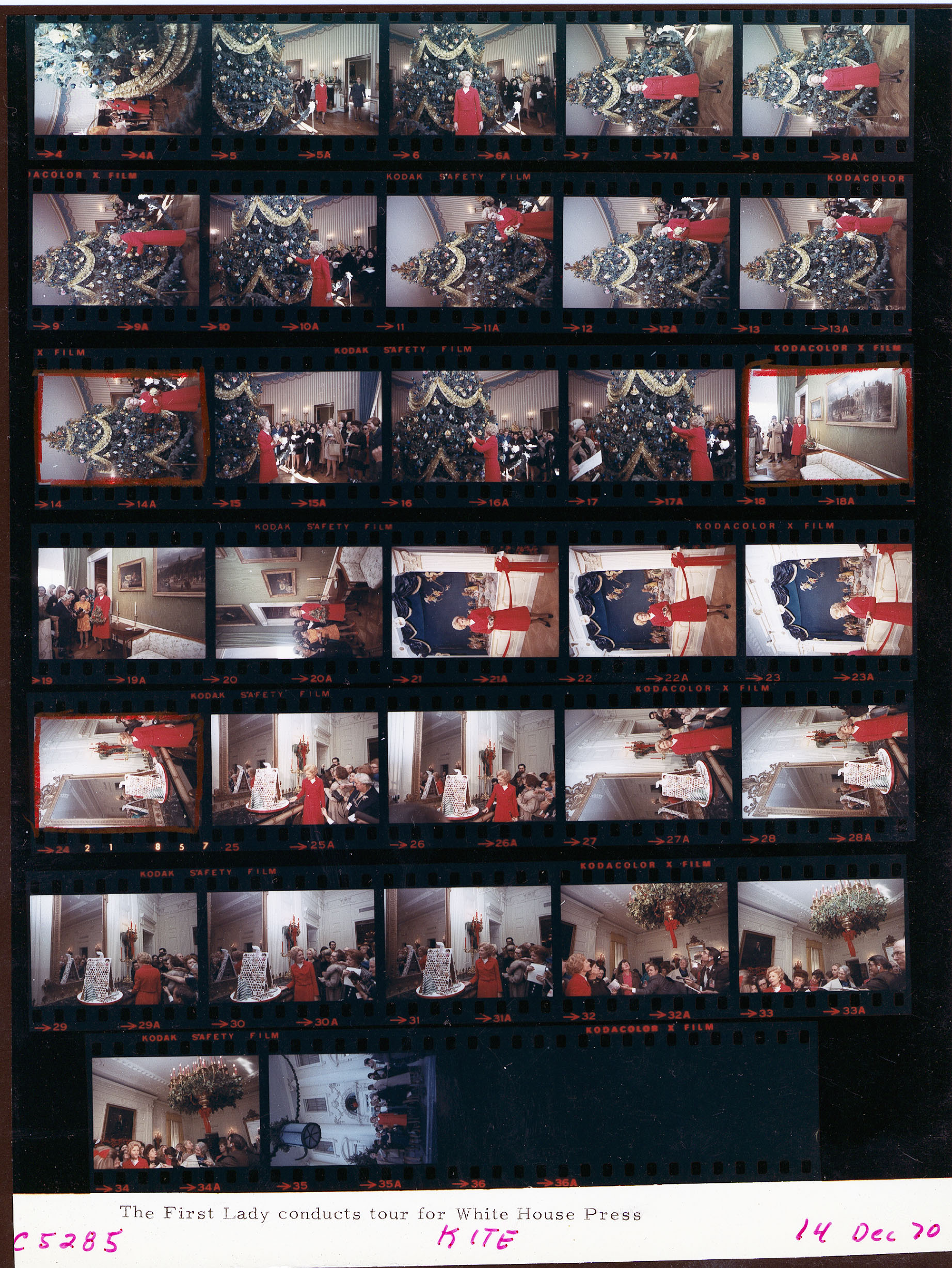 - Frame(s): WHPO-5285-, Pat Nixon conducts a tour of the White House decorated for Christmas, for White House Press. 12/14/1970, Washington, D.C. White House. Pat Nixon, White House Press Corps reporters and photographers.